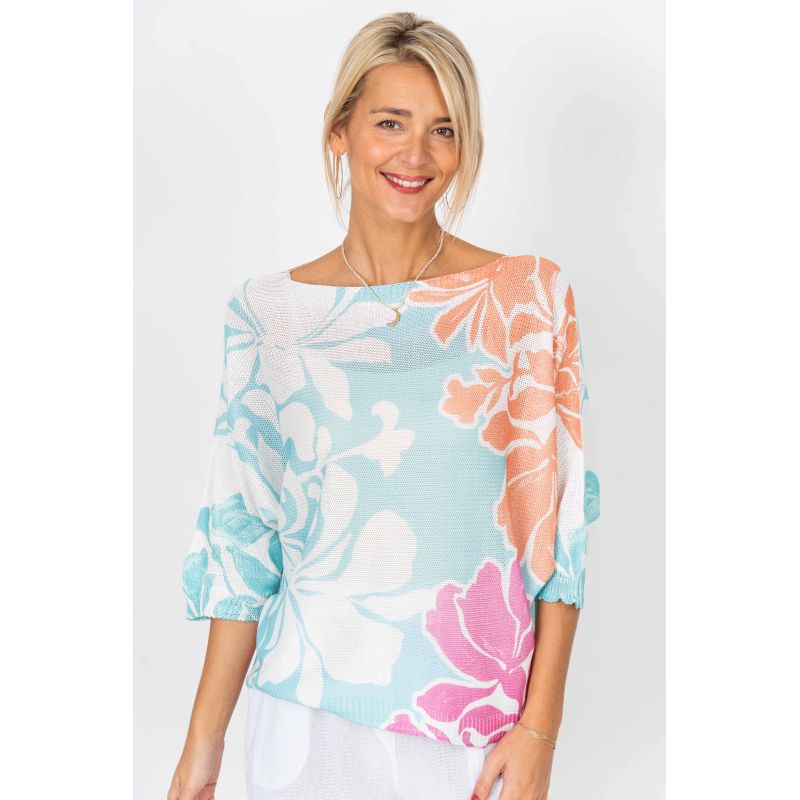 Immerse yourself in the vibrant beauty of this stunning coral reef-inspired top, expertly crafted in Italy with a sophisticated batwing silhouette that brings effortless elegance to your wardrobe.