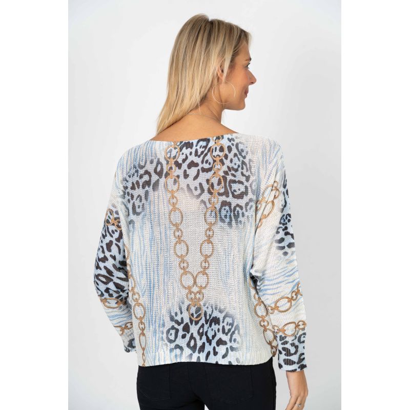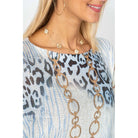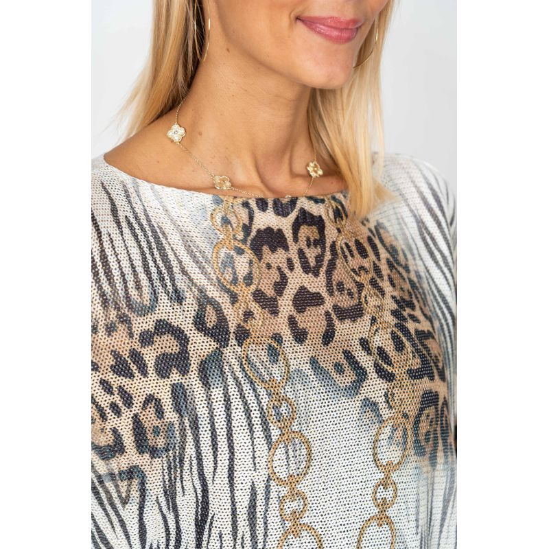 One Size Italian Leopard Print Top with Gold Chain Detail