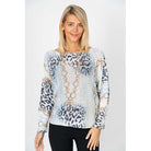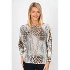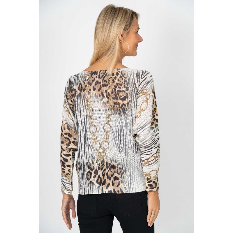 This stunning Italian top features a subtle leopard print beautifully accented with a gold chain detail print. The lightweight fabric drapes elegantly, while the flattering batwing style complements all body types with ease.