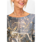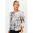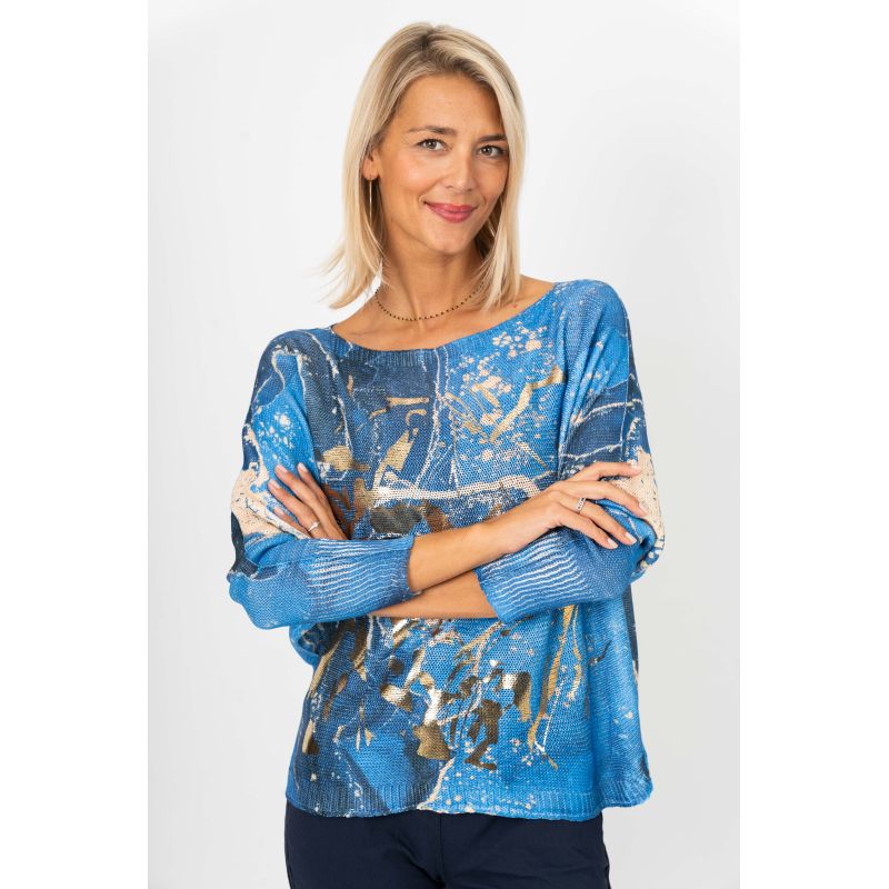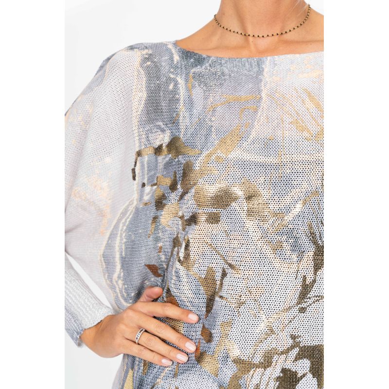 Elevate your style with this stunning Italian-crafted top featuring luxurious gold details and an eye-catching print. The sophisticated batwing silhouette brings effortless elegance to your wardrobe.