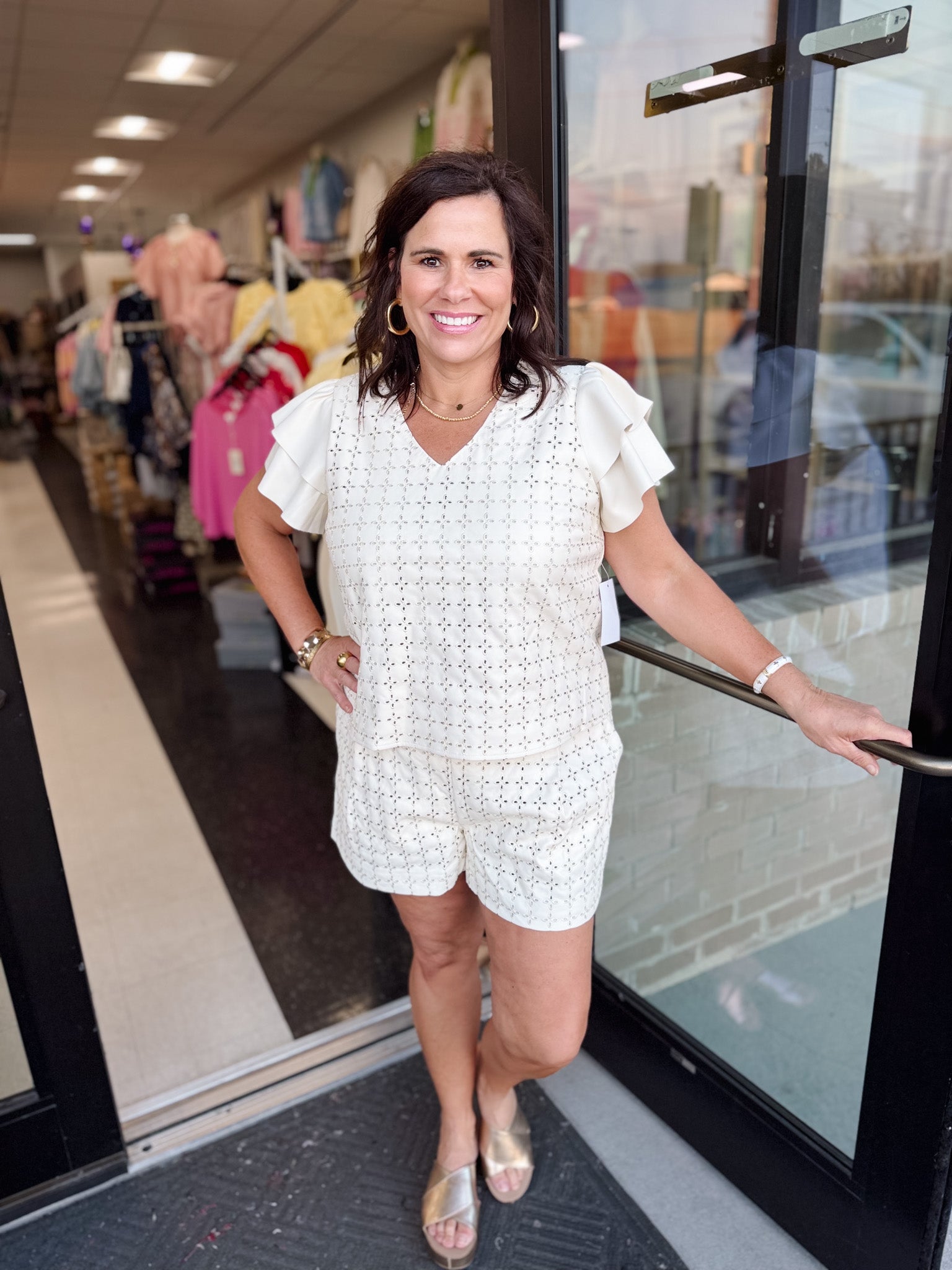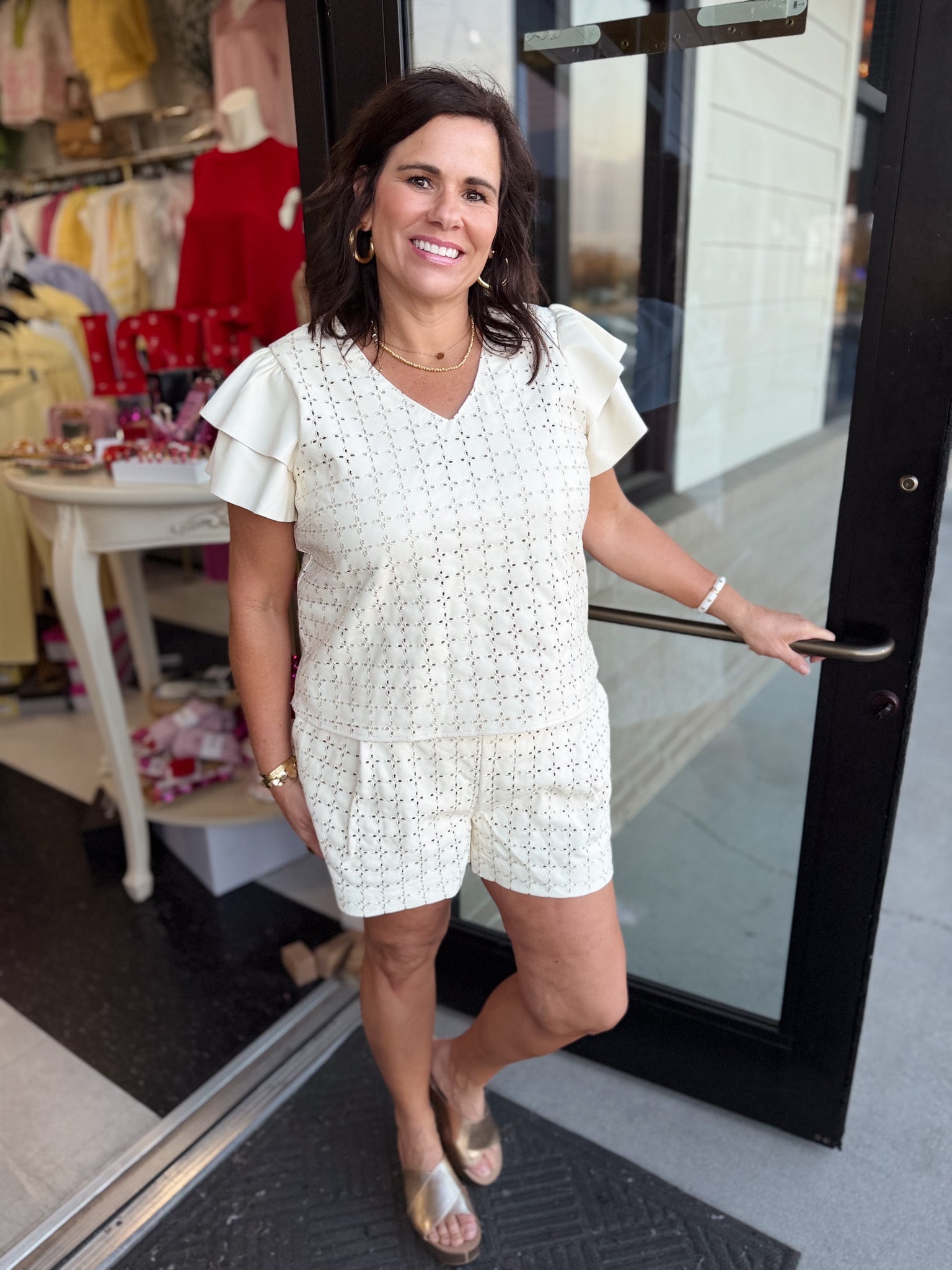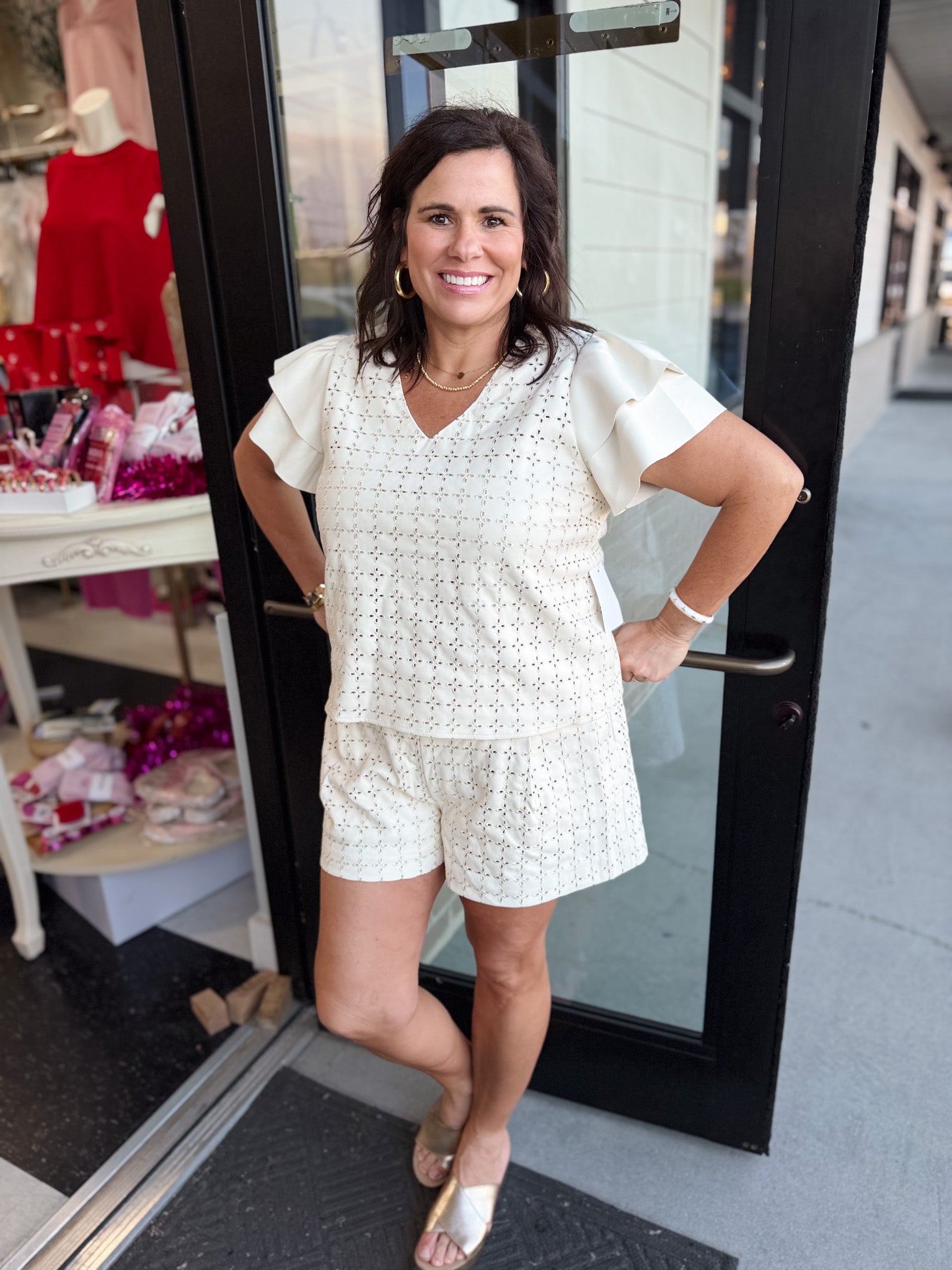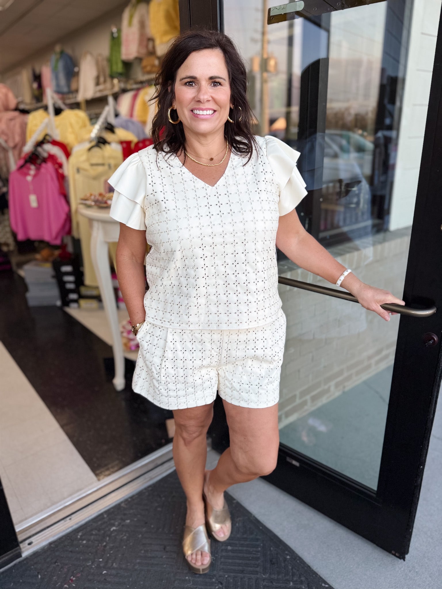 • Delicate eyelet detailing for feminine charm