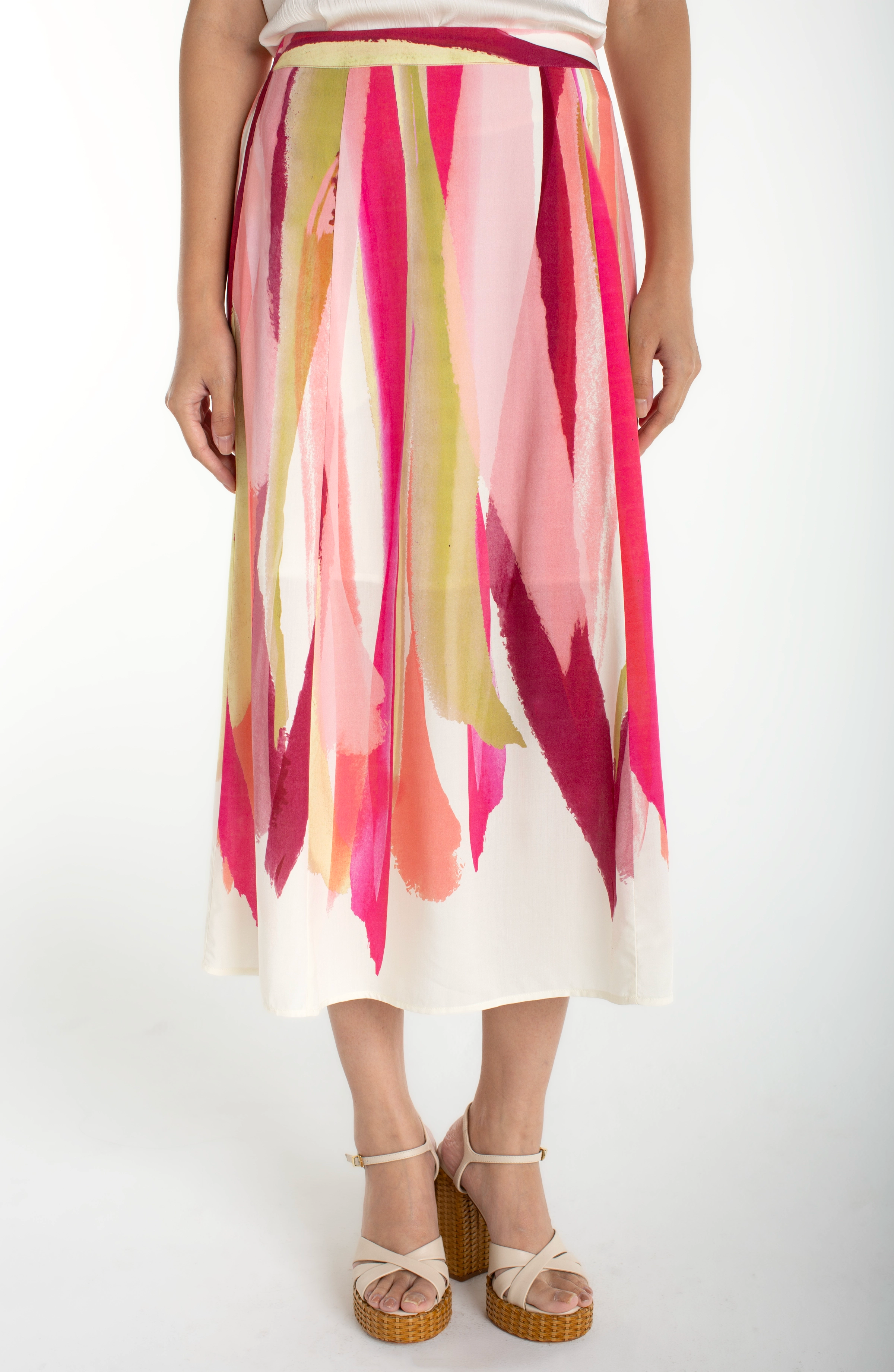 Effortless ease meets everyday elegance in this pull-on woven maxi skirt. Rendered in a soft pink multi-stripe, its fluid silhouette and subtle side slit create graceful movement while keeping a polished, refined feel. The encased elastic waistband ensures comfort, making it an easy piece to transition seamlessly from day to evening.