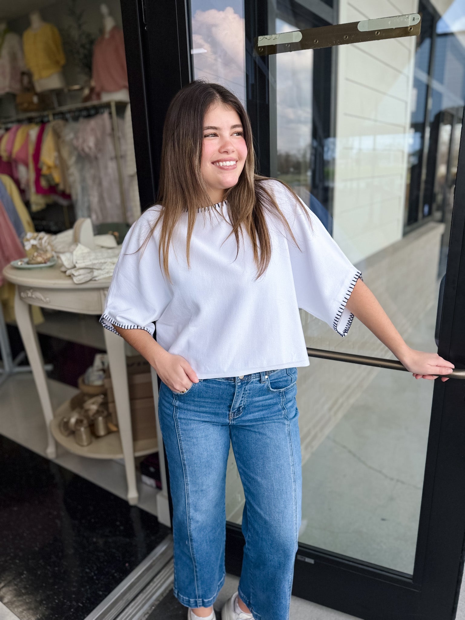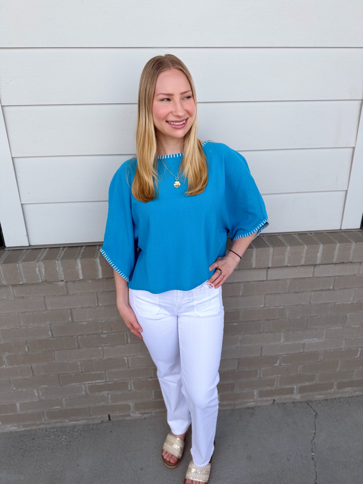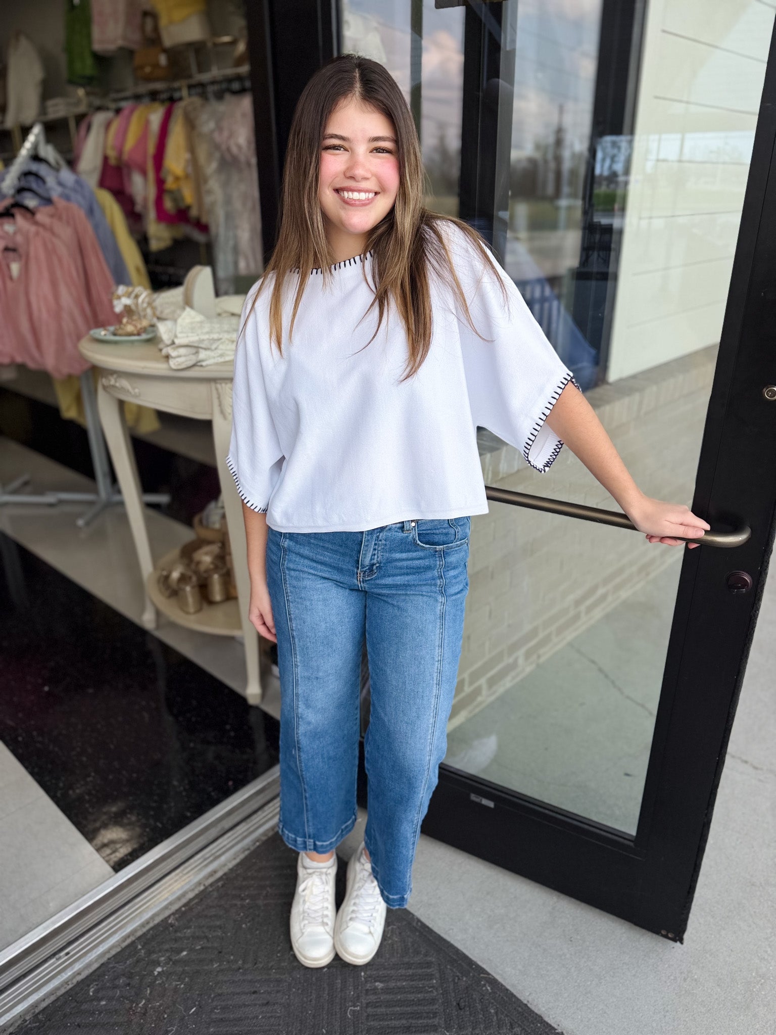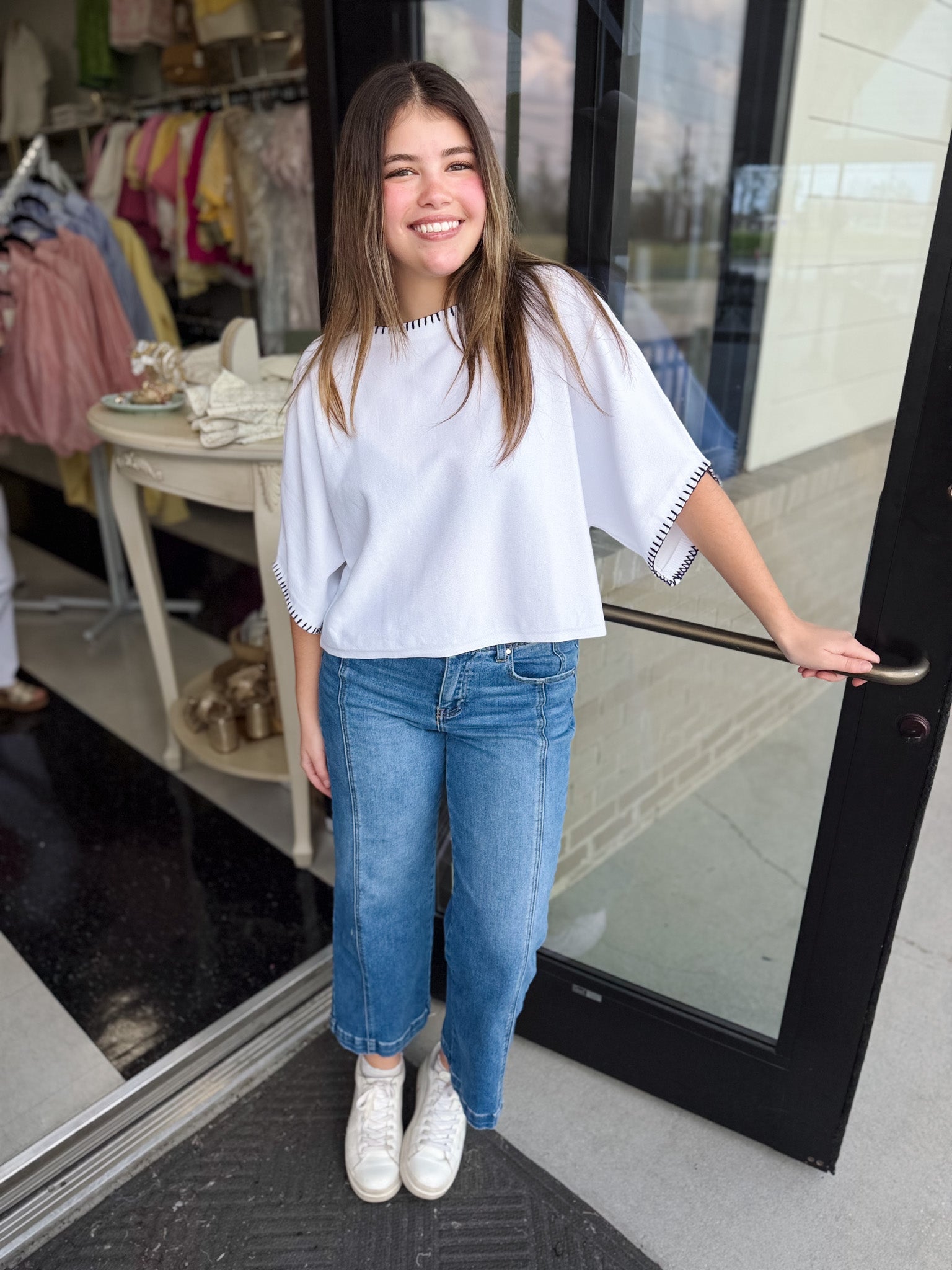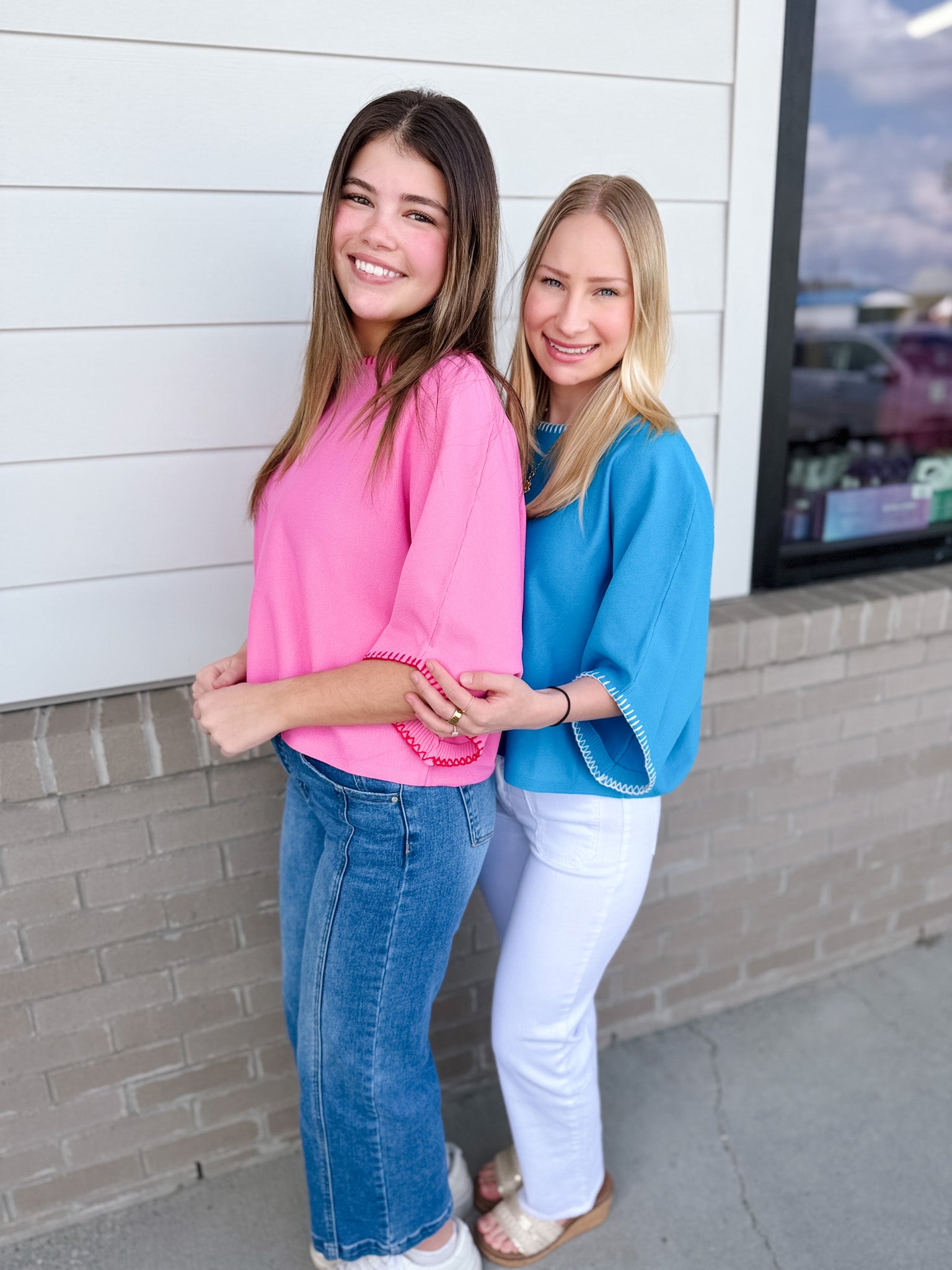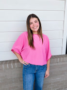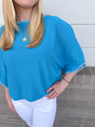 This dolman fit knit top offers a relaxed, contemporary silhouette that's both comfortable and stylish. The waist-length cut creates a flattering proportion, while fun stitch detailing along the neckline and sleeves adds an artisan touch to this versatile piece.