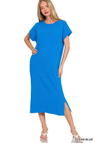 Round Neck Short Sleeve Midi Dress