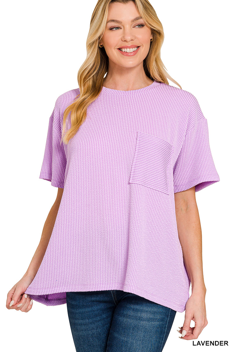 Raised Rib Short Sleeve Front Pocket Top