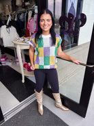 Sequin Mardi Gras Checker Top