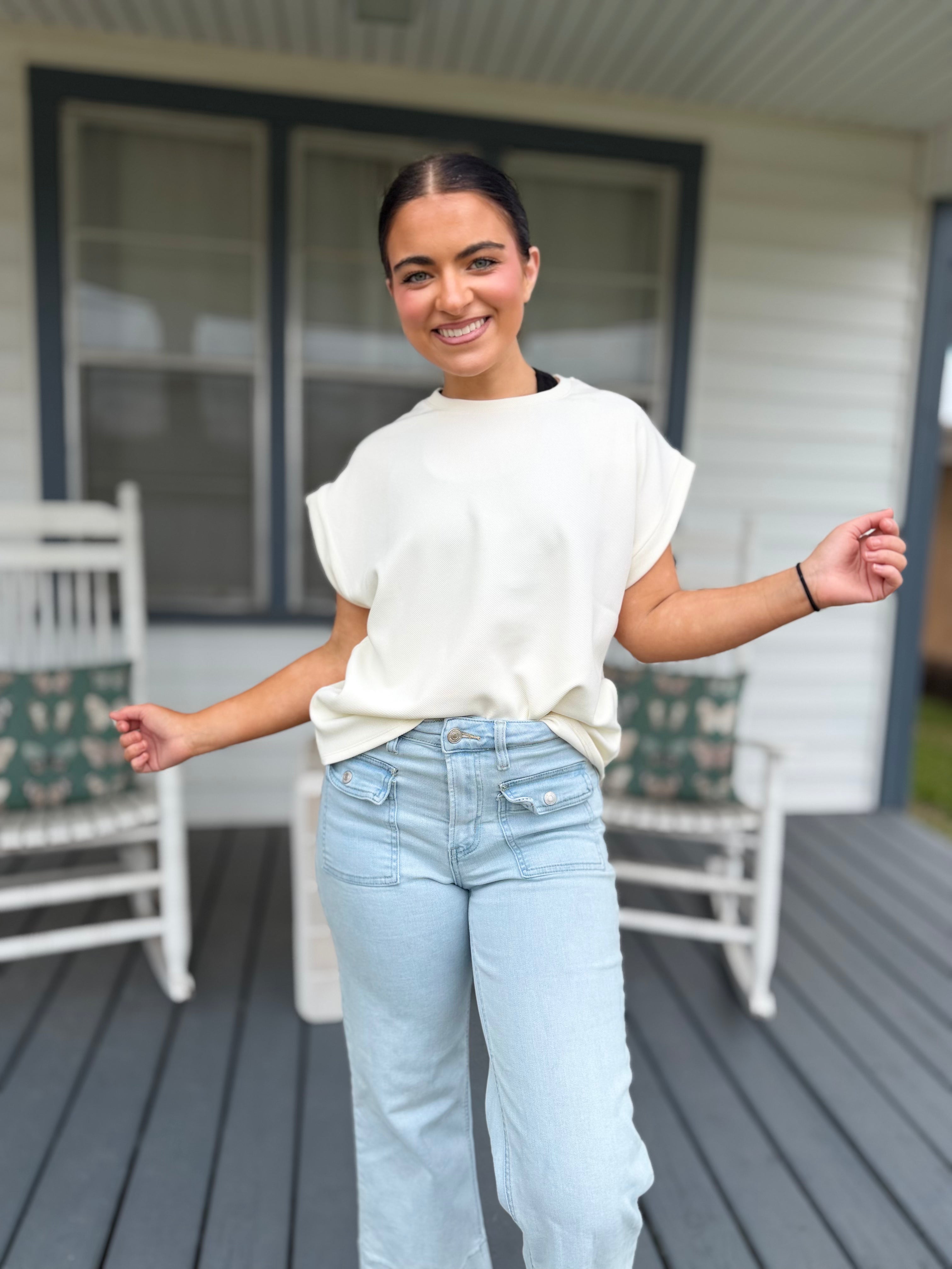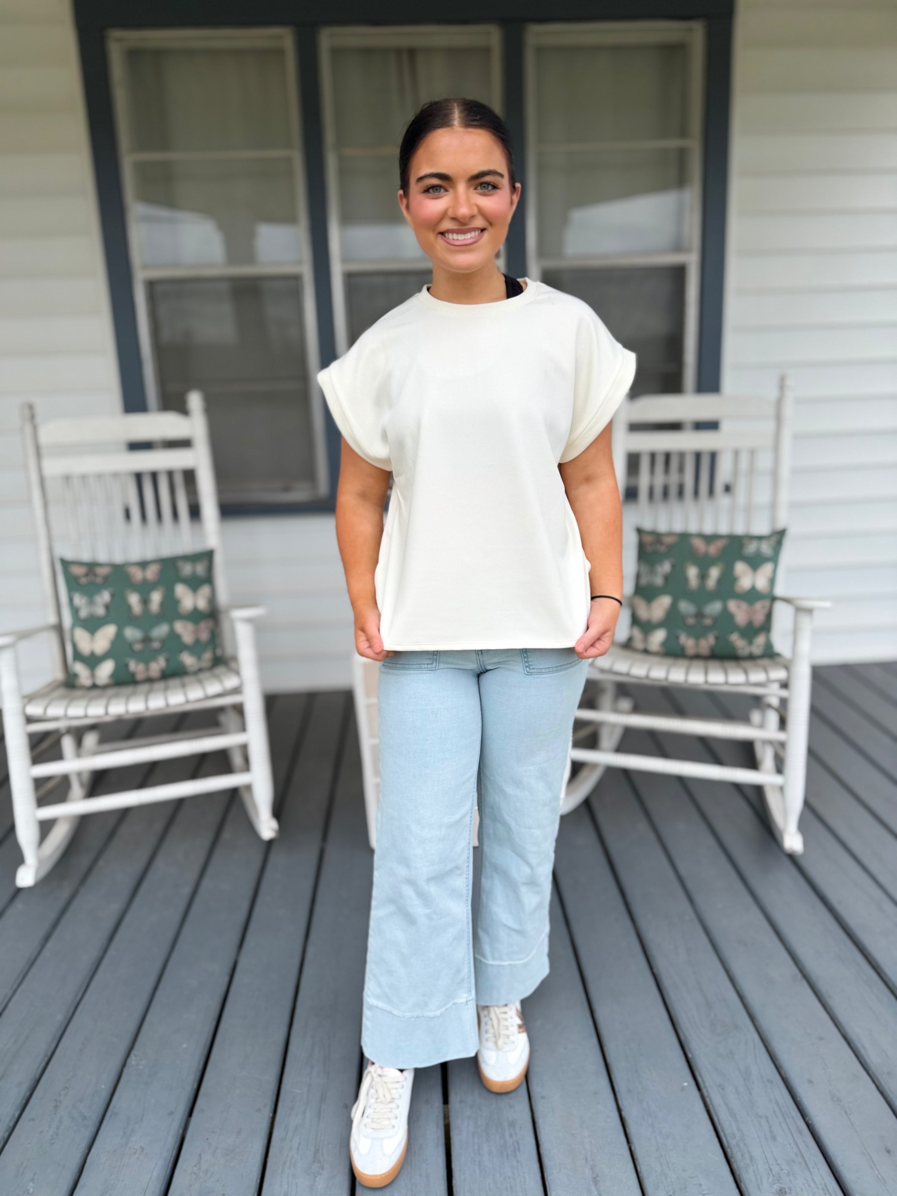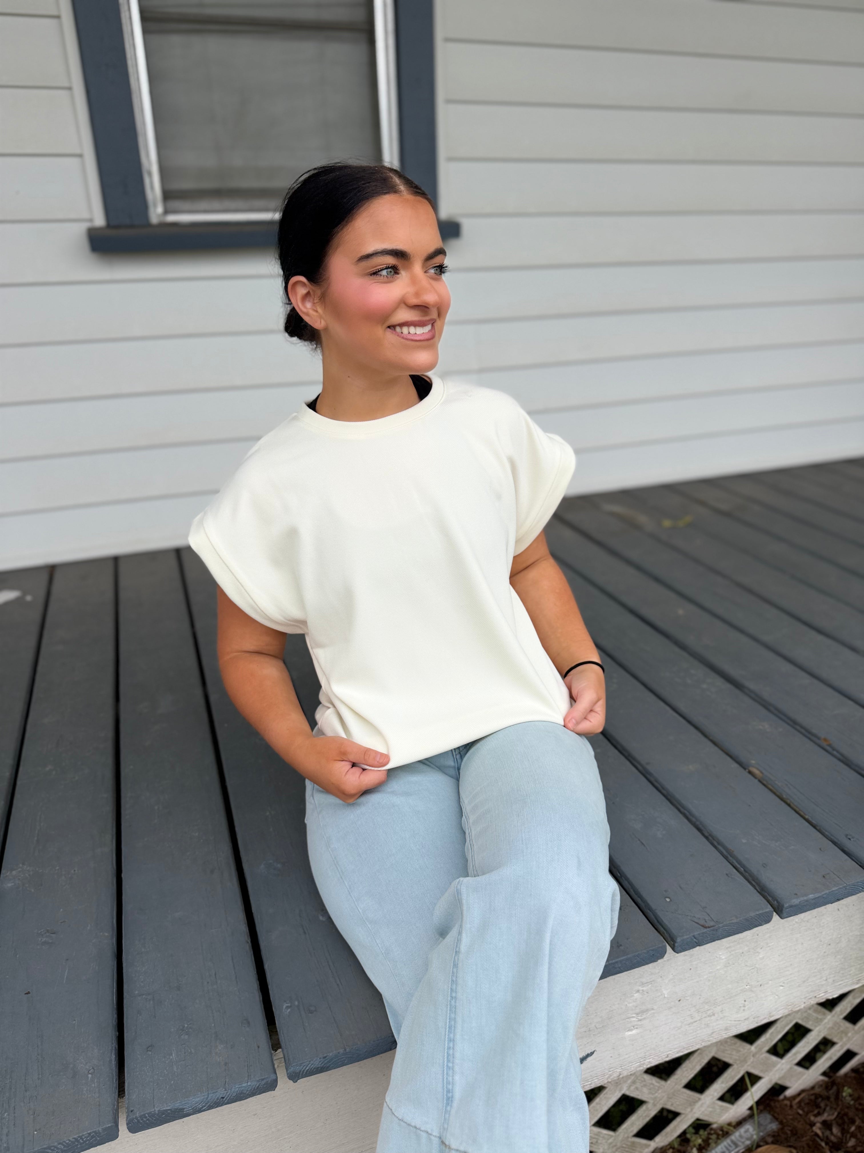 Simple, polished, and endlessly wearable 🤍 This crew neckline top features cuffed short sleeves and a clean hemline for a sleek, put-together look. Crafted from a soft, stretchy fabric, it’s designed for all-day comfort while maintaining an elevated, minimal feel.