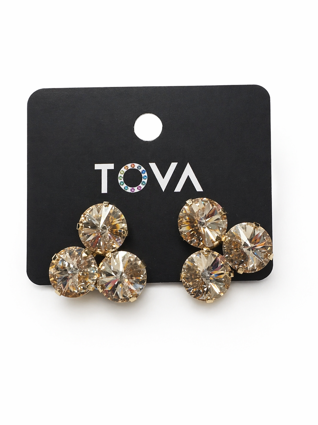 For the sparkle of a lifetime, the Tova Reya Earrings deliver radiant shine from every angle. Designed in Canada, these 1" studs feature high-quality crystals set in a brass base metal and plated in antique gold for a luxurious, light-catching finish.