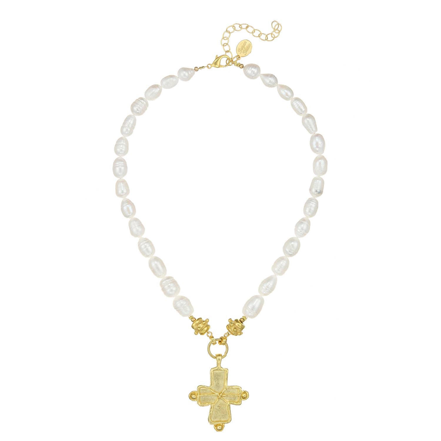 Susan Shaw Gold Cross Pearl Necklace - With Extender Chain