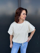 Upgrade your everyday basics with The Willow Drawstring Top, a versatile short sleeve knit featuring a classic round neckline and an adjustable drawstring hem for a customizable, flattering fit. Crafted from 100% soft cotton, it’s breathable, lightweight, and perfect for all-day comfort.