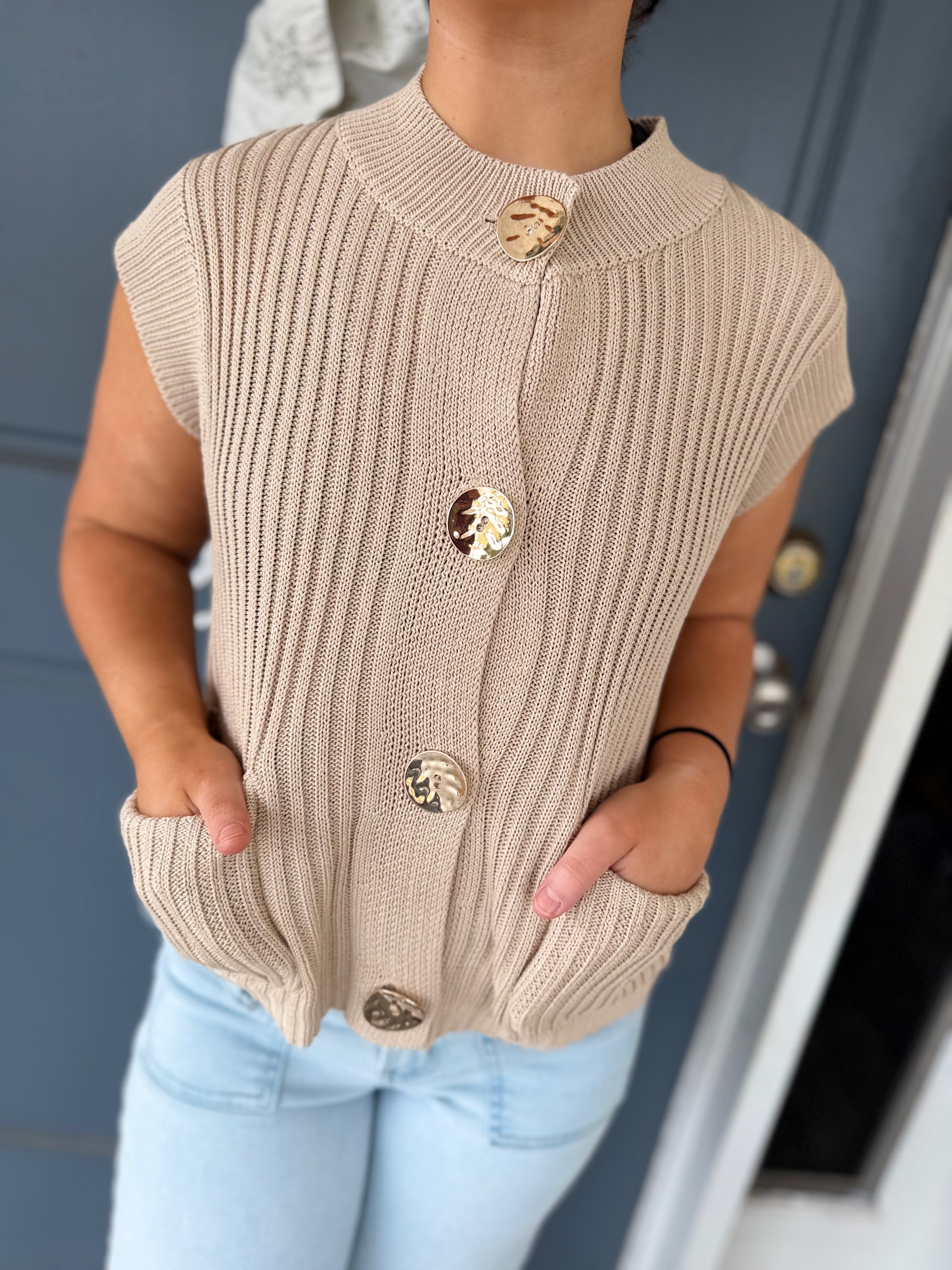 Button Detail Knit Vest