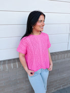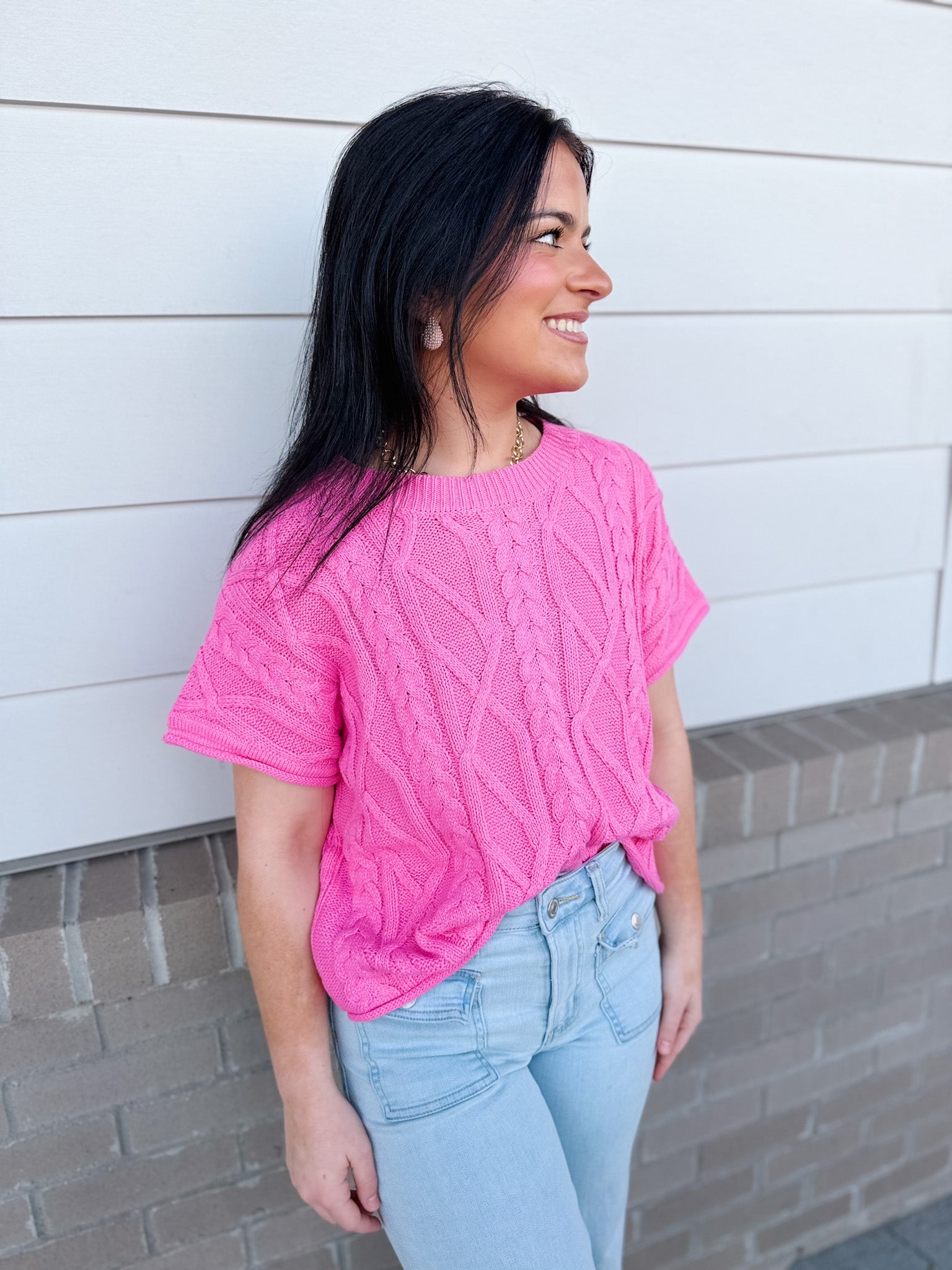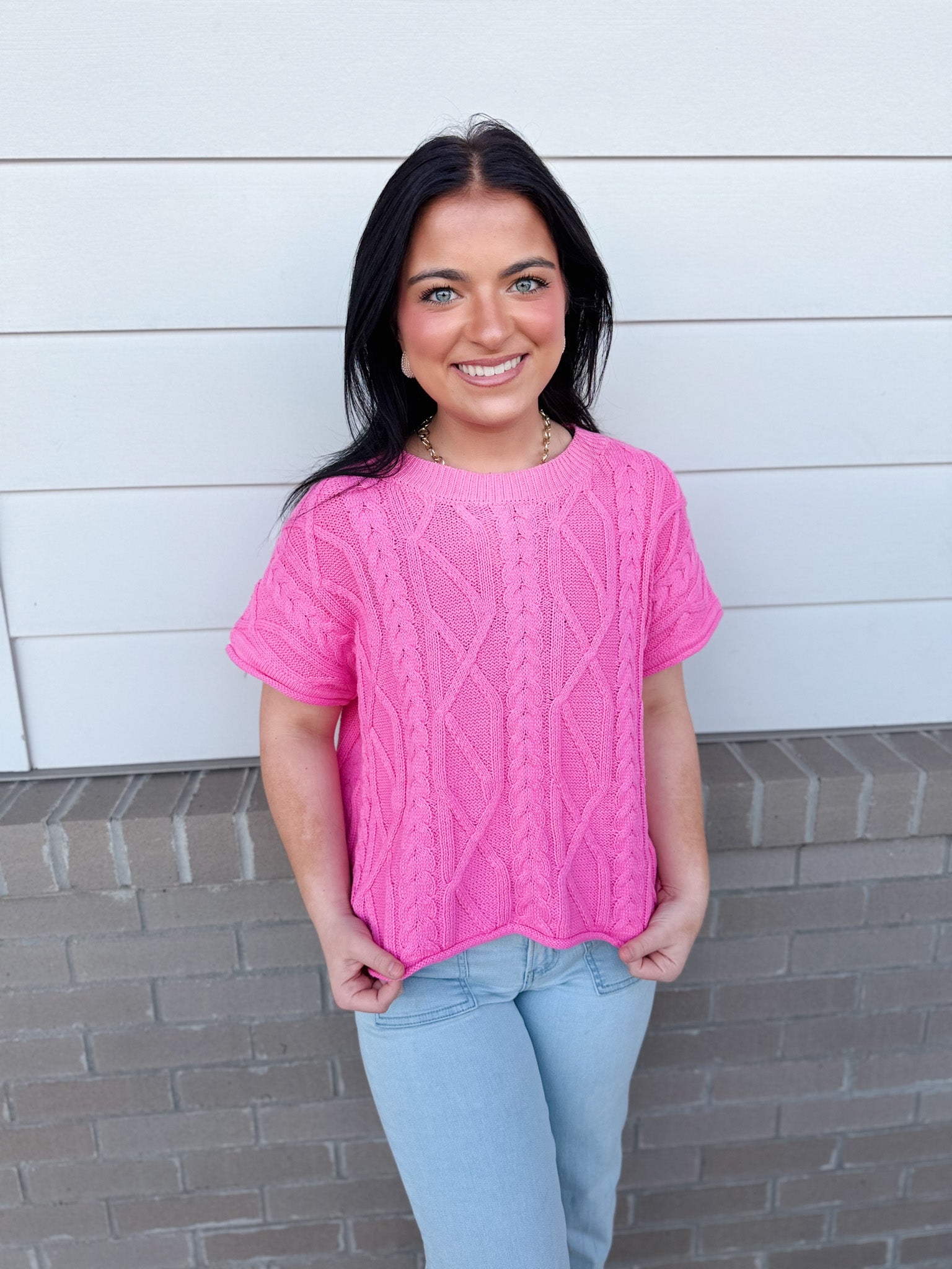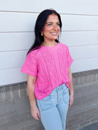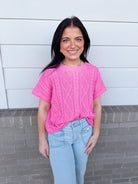 Classic texture with an elevated, everyday feel đ¤ This solid short sleeve knit top features a timeless cable knit design with ribbed detailing at the neckline, sleeves, and hem for a polished finish. Crafted from a medium-weight knit, itâs perfect for year-round stylingâeasy on its own or layered.