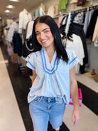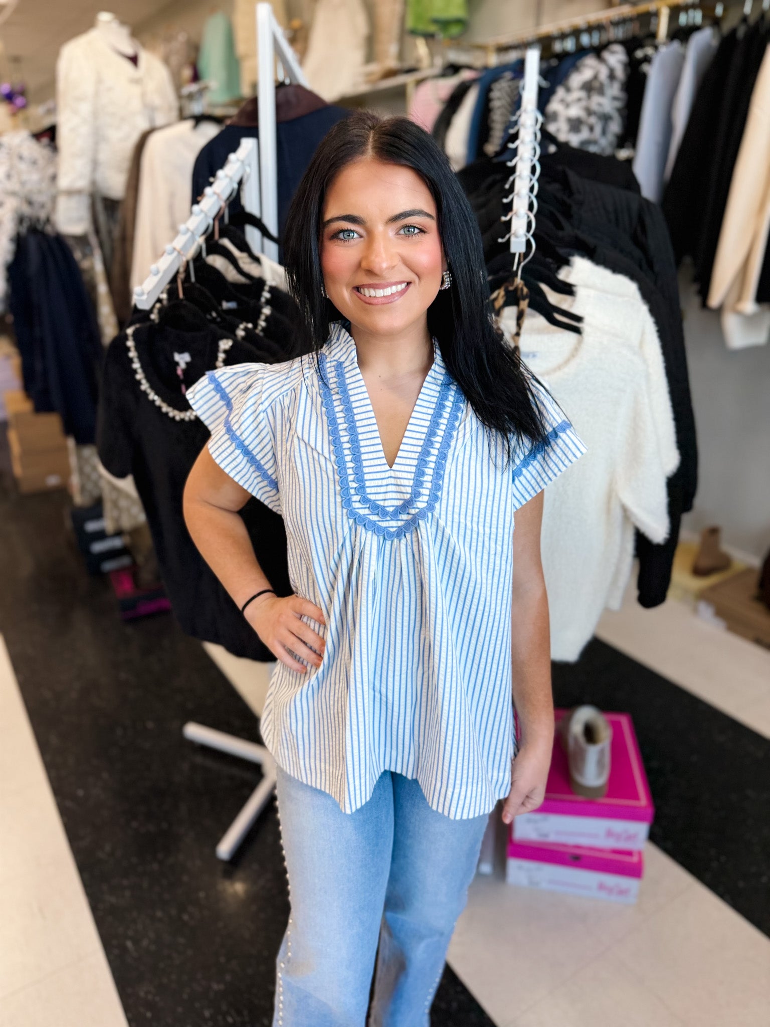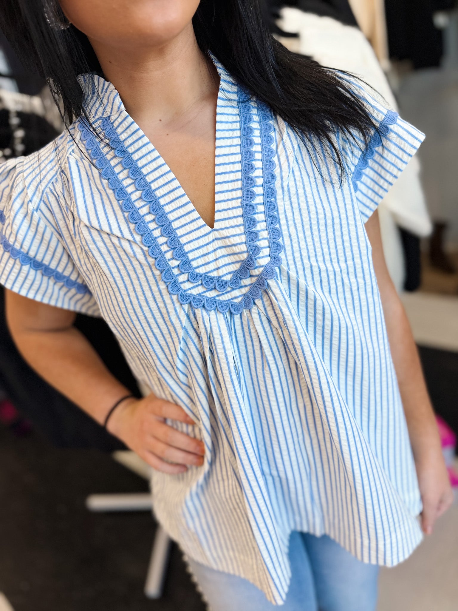 Clara Striped Flutter Sleeve Top!