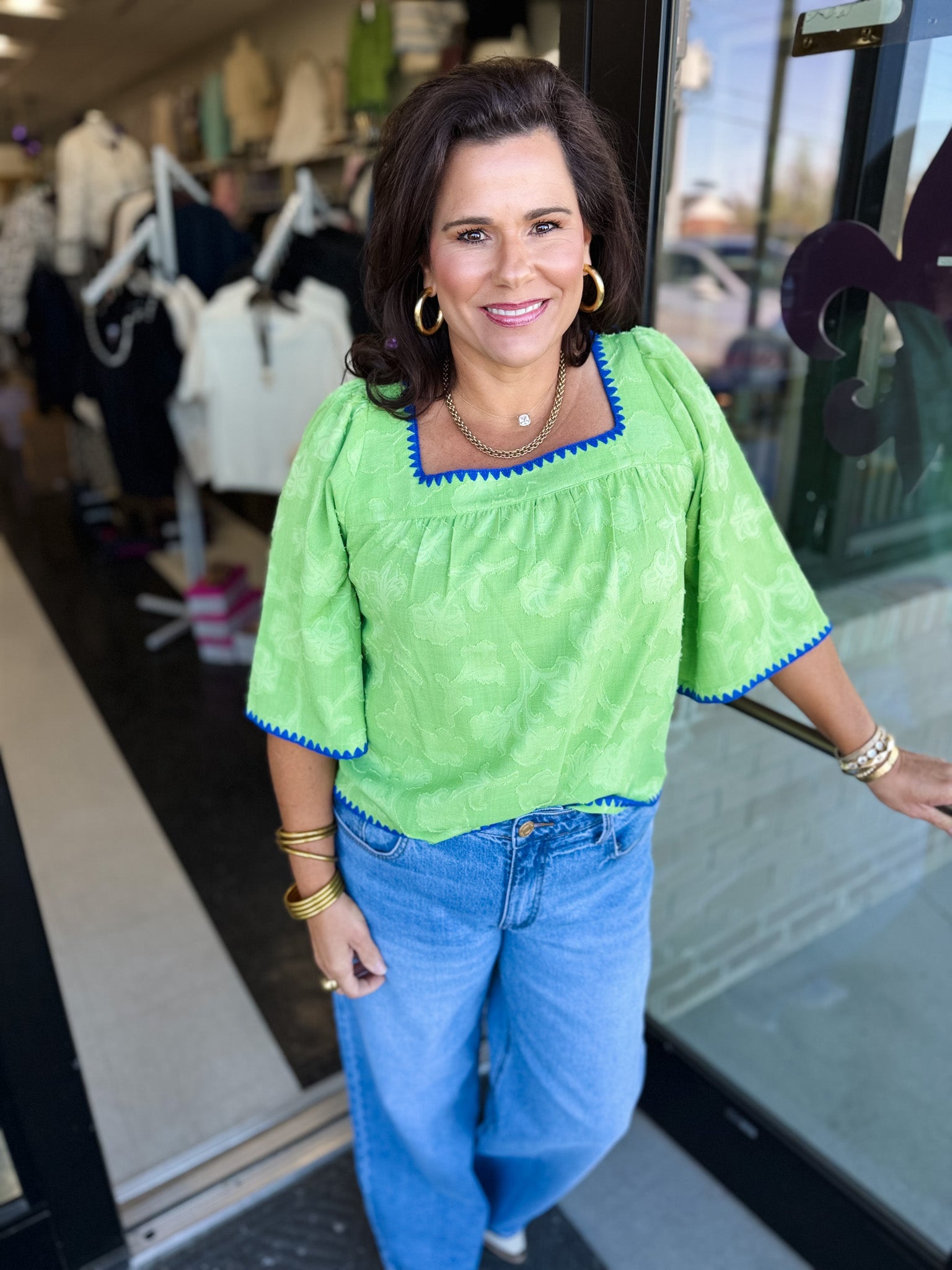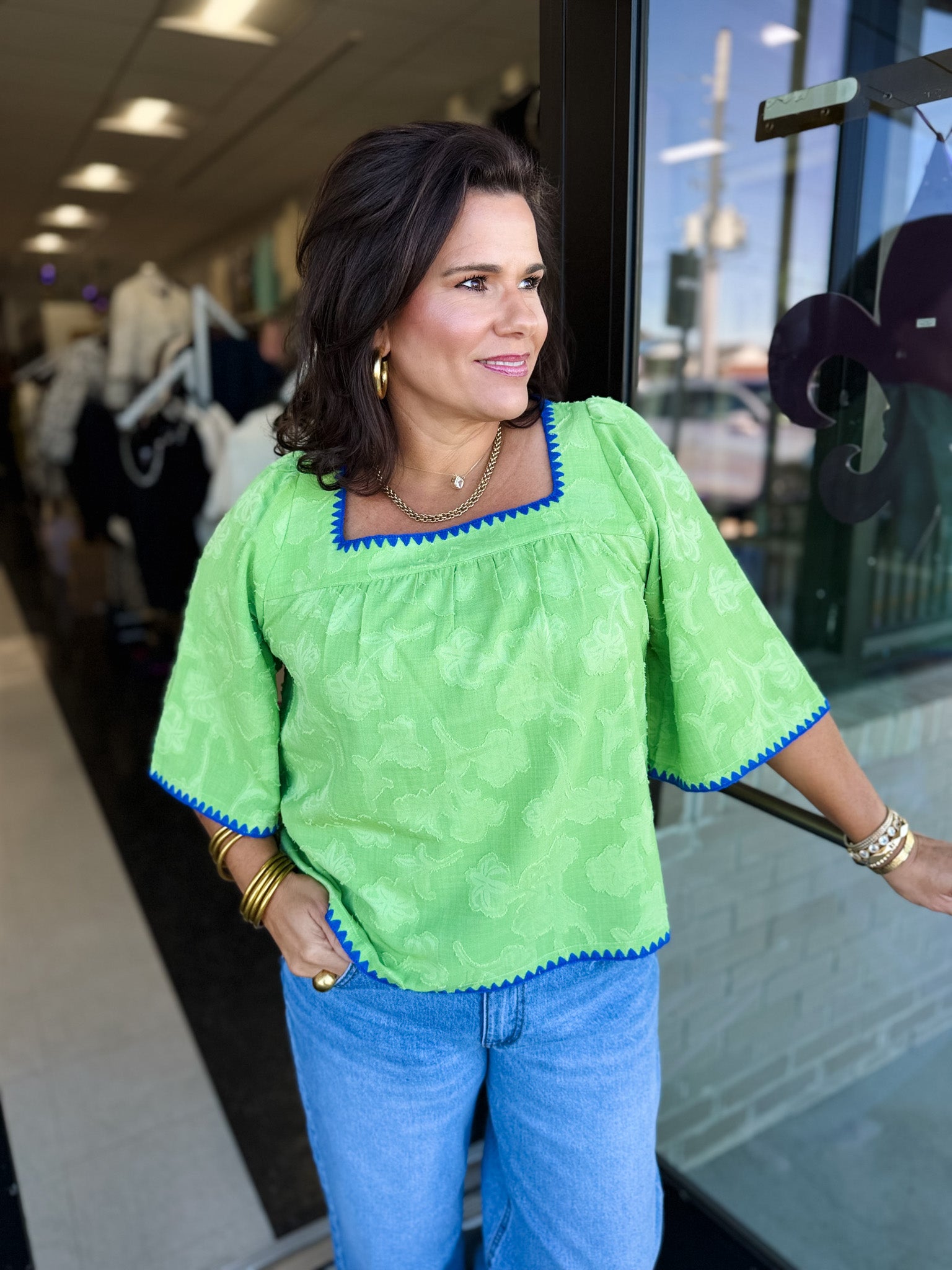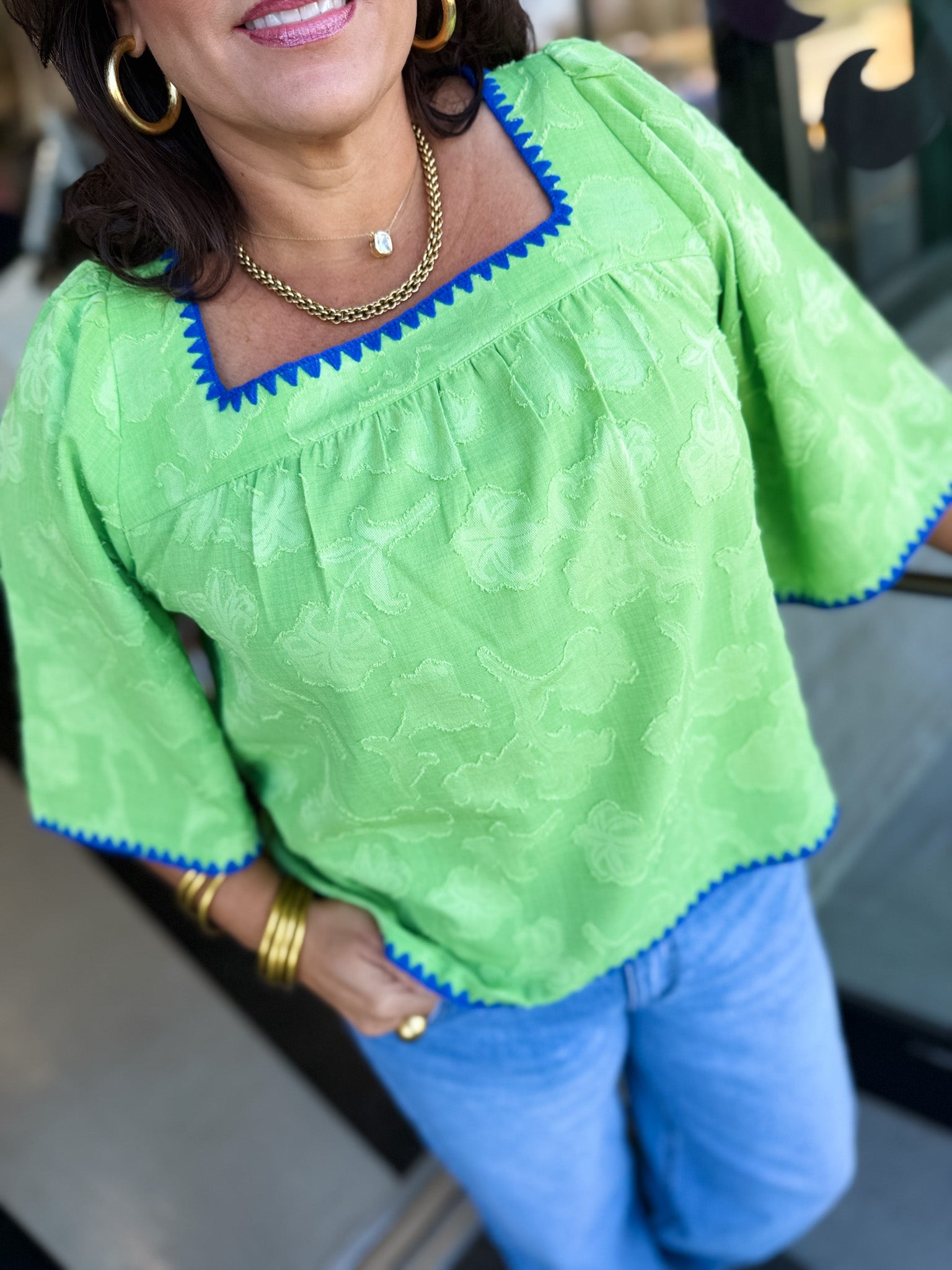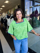 Elevate your wardrobe with this sophisticated bohemian top, thoughtfully designed to blend relaxed charm with refined style. Intricate contrast embroidery and textured floral detailing create a beautifully dimensional look that feels both timeless and unique. The rich green hue adds depth and versatility, making this piece a standout for any season.