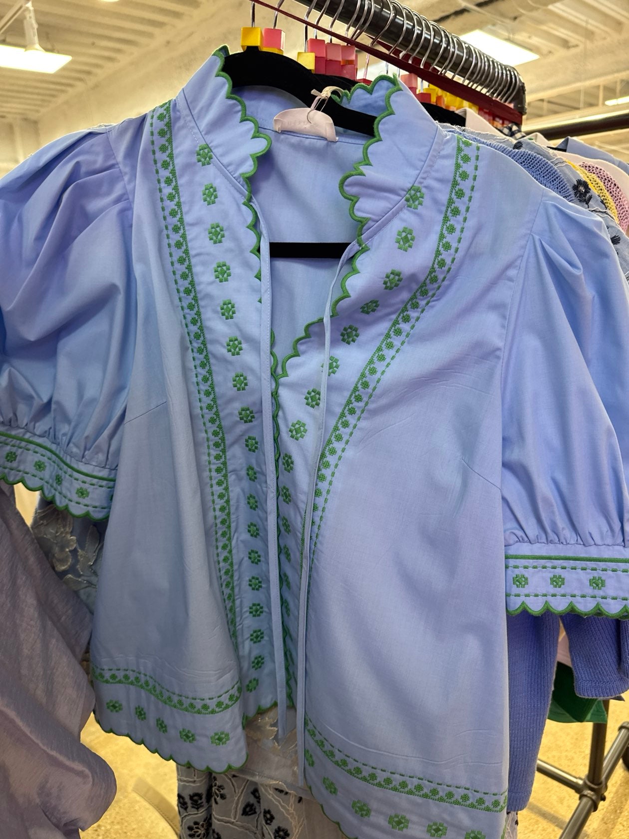 Embroidered Scallop Detail Top
