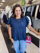This elegant floral lace overlay top is designed to bring soft romance to your wardrobe. Delicate lace detailing paired with flutter sleeves creates a graceful silhouette, while the scalloped hem adds a beautifully finished touch. Perfect for dressier moments or elevated everyday styling, this top feels timeless yet fresh.