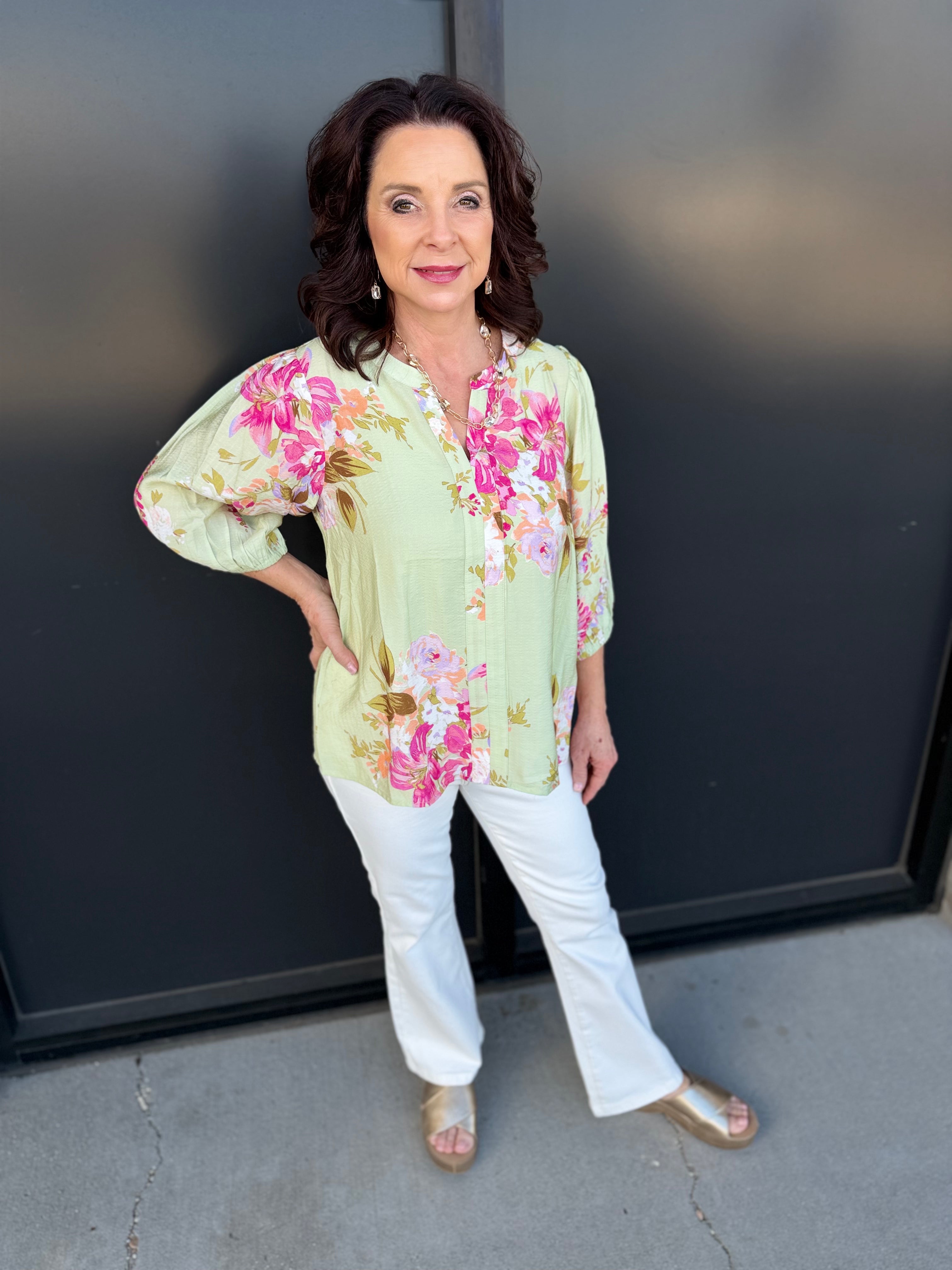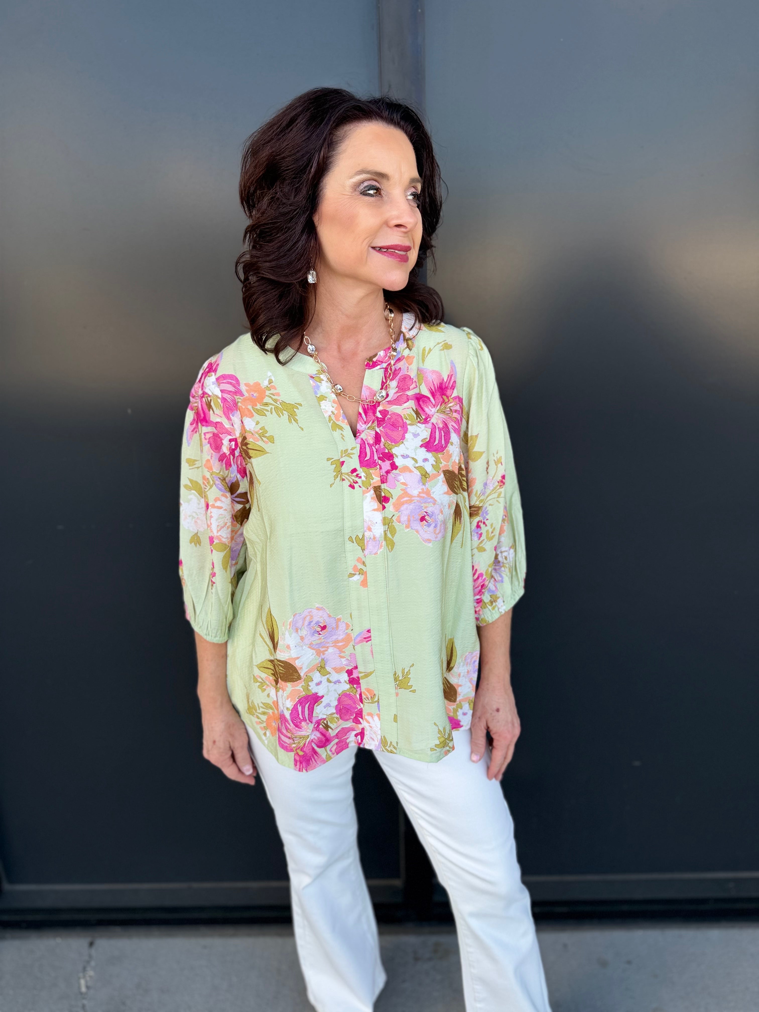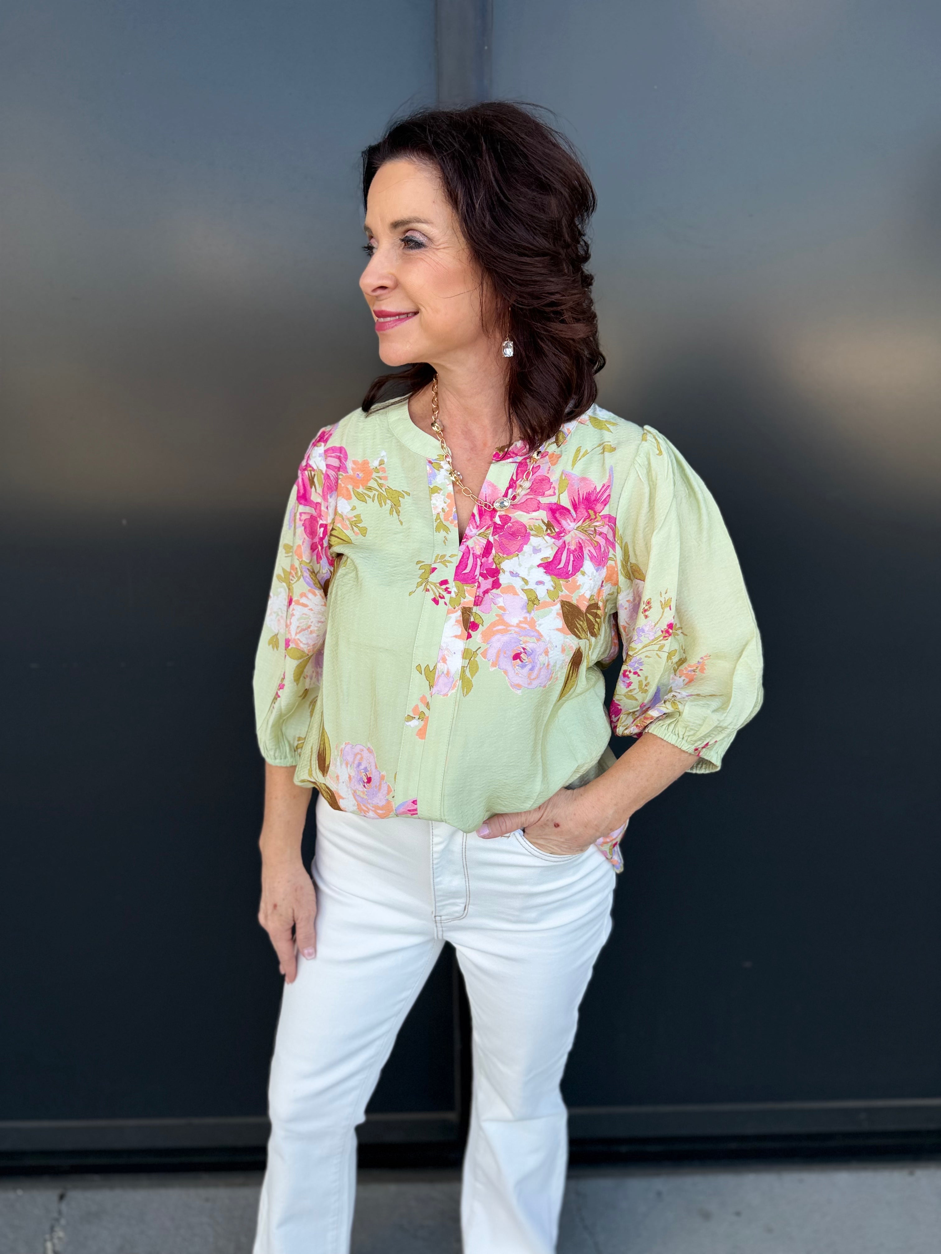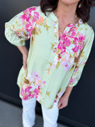 Embrace effortless femininity with this stunning sheer floral printed blouse. Designed for the woman who loves to make a statement, this piece combines delicate transparency with bold voluminous sleeves and a beautifully draped fit that moves with you.