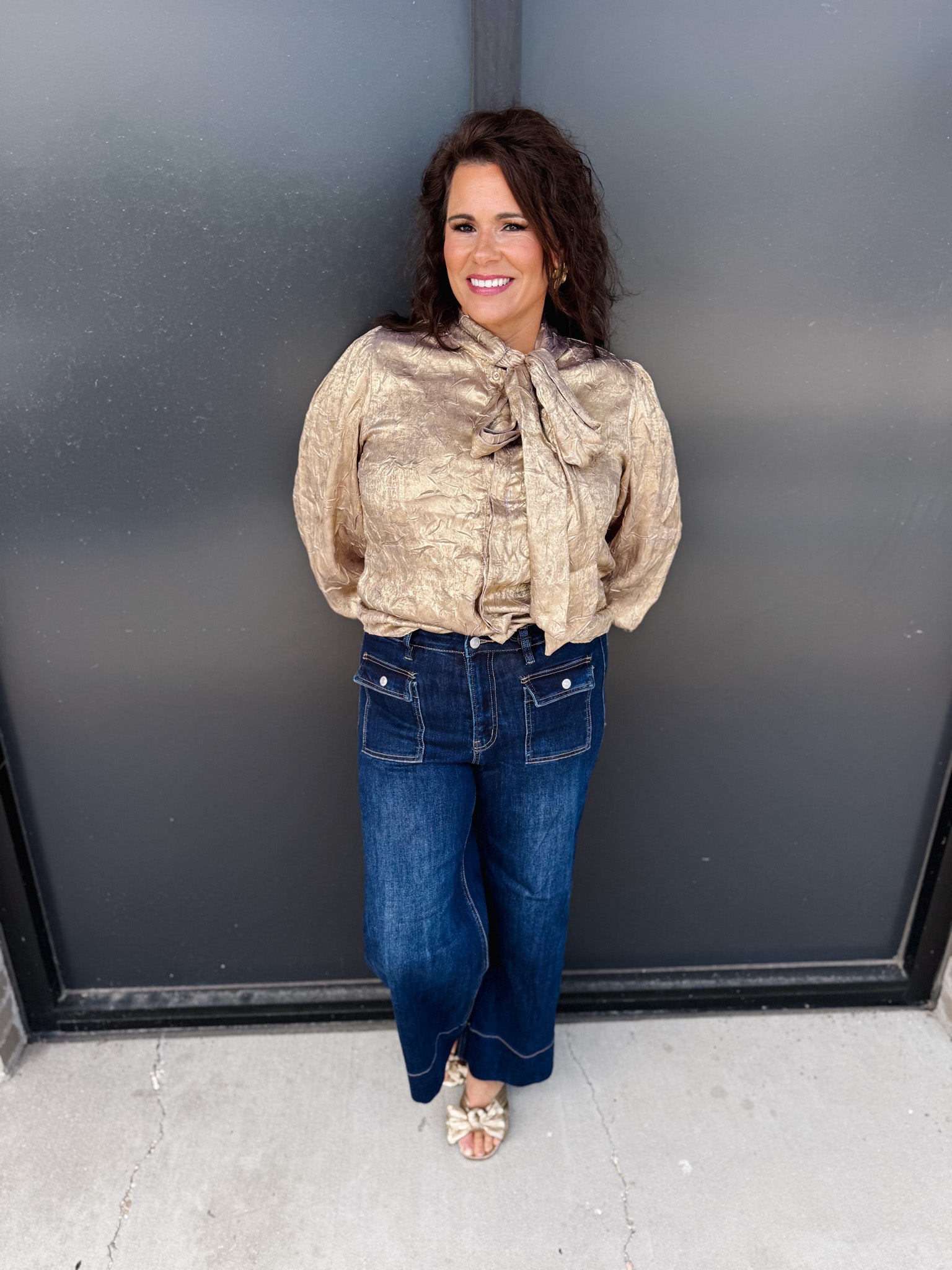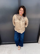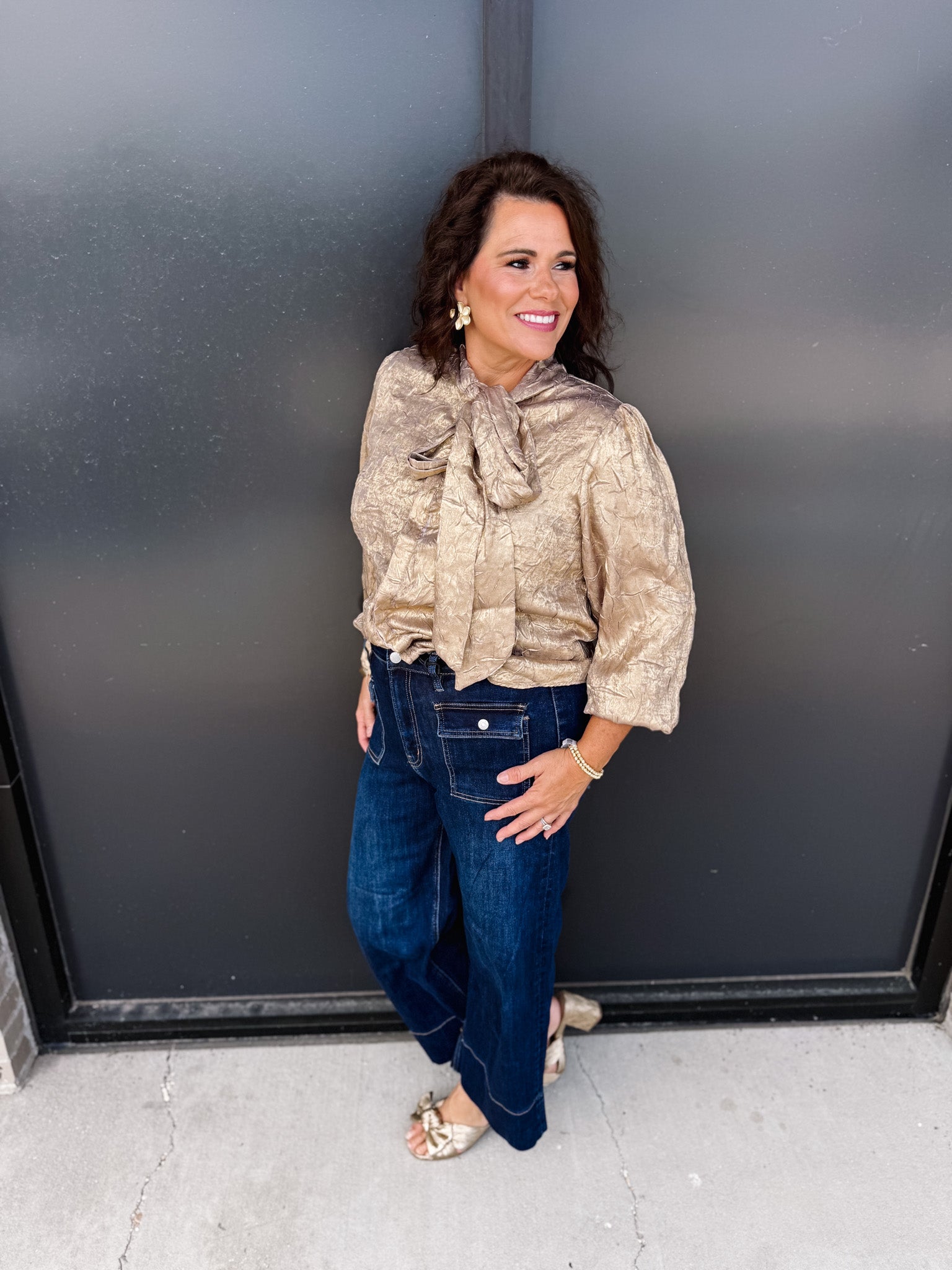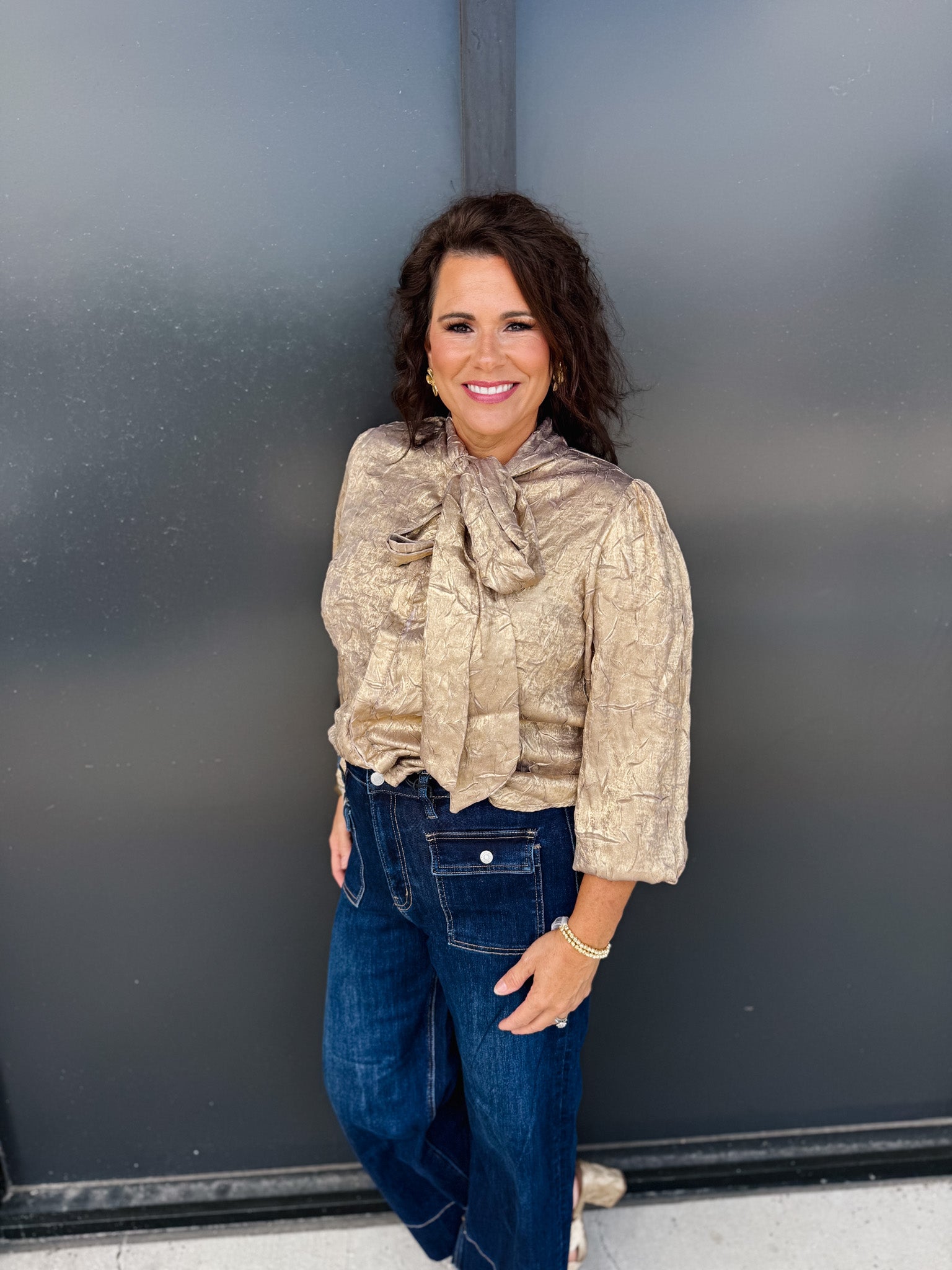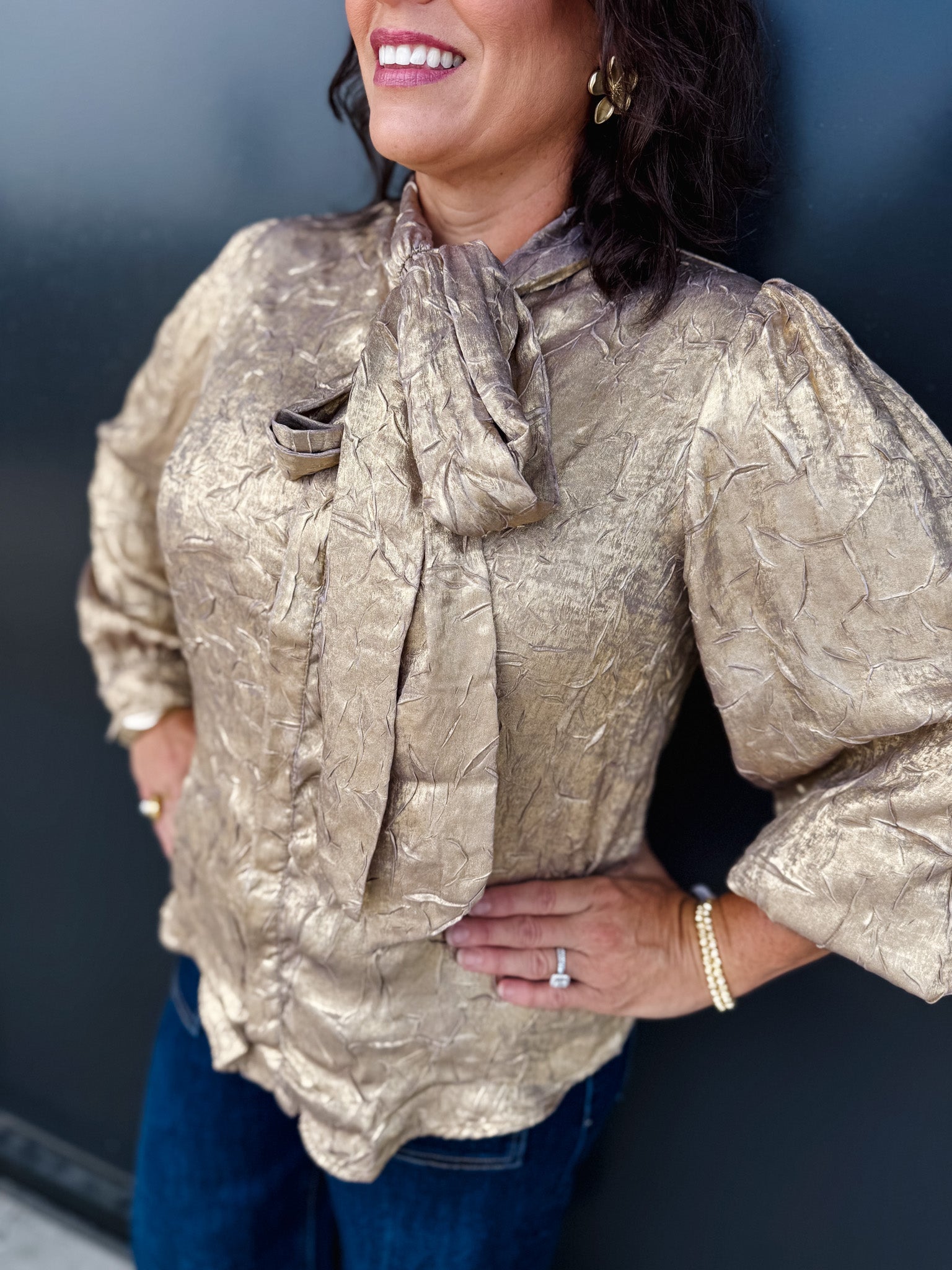 Elevate your wardrobe with the Reece Champagne Pop Top, featuring a sophisticated tie bow front detail that adds a refined touch. This long-sleeve blouse offers effortless elegance for both professional and social occasions, combining classic style with modern flair. Crafted for comfort and versatility, it’s perfect for creating polished looks with ease.