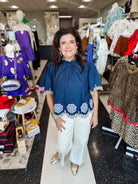 The Together Clara Top offers a refined silhouette with its delicate floral embroidery and scalloped hem, enhancing its lightweight woven fabric. Designed with elegant short flutter sleeves and a ruffled high neck, it combines subtle sophistication with comfortable wear. The button closure at the back ensures a polished finish while the unlined, non-sheer material provides a graceful, effortless look ideal for warm days or layering under tailored pieces.