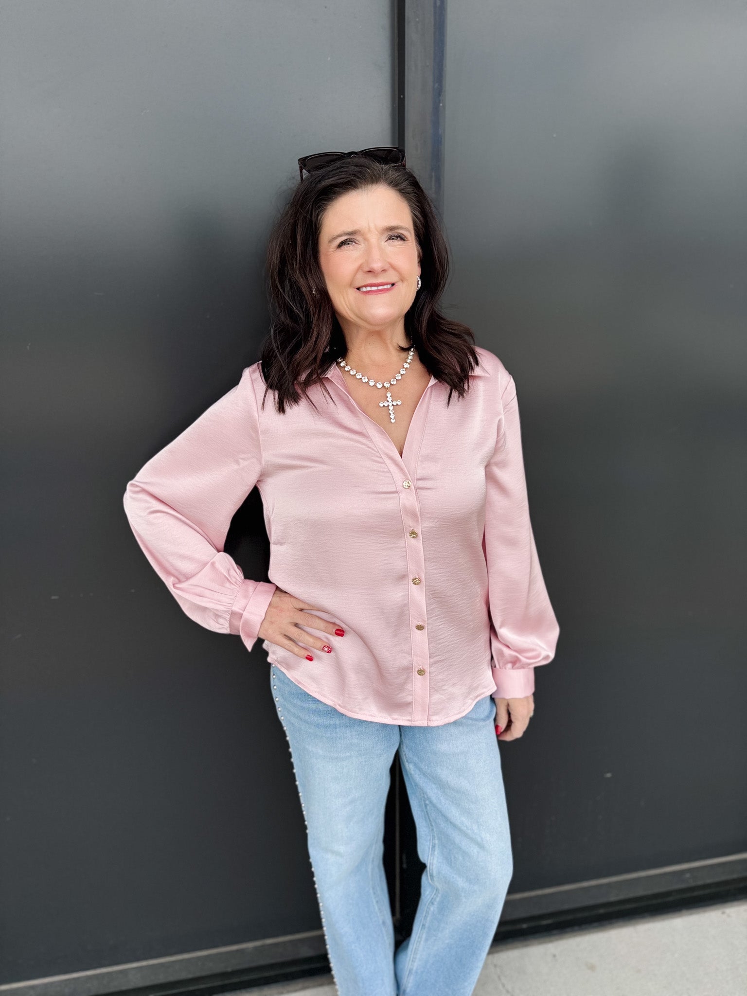 • Classic button down front