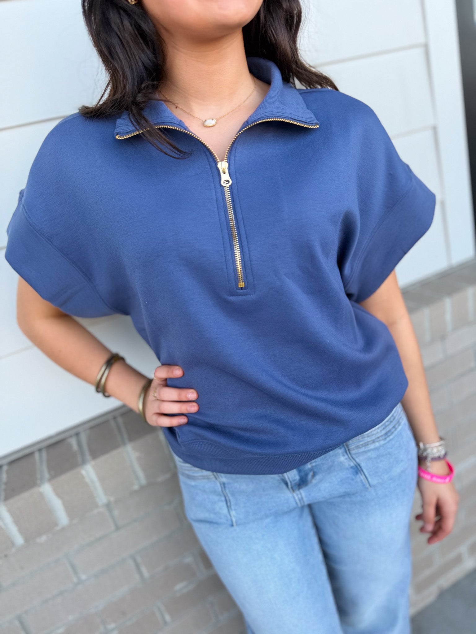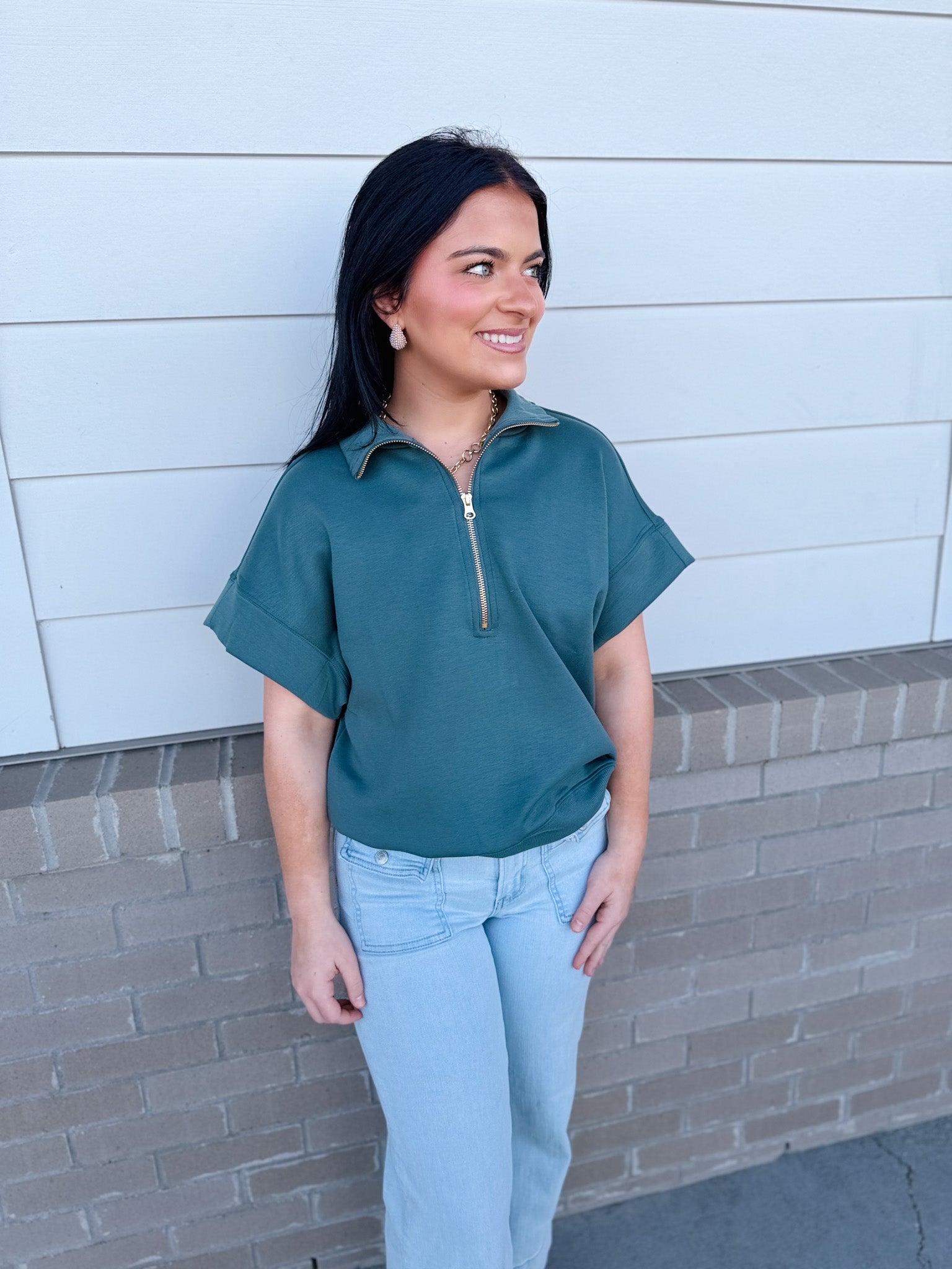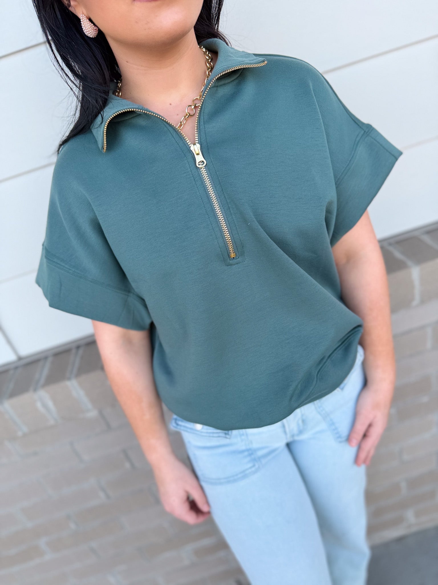Scuba High Neck Half Zip Short Sleeve Pullover
