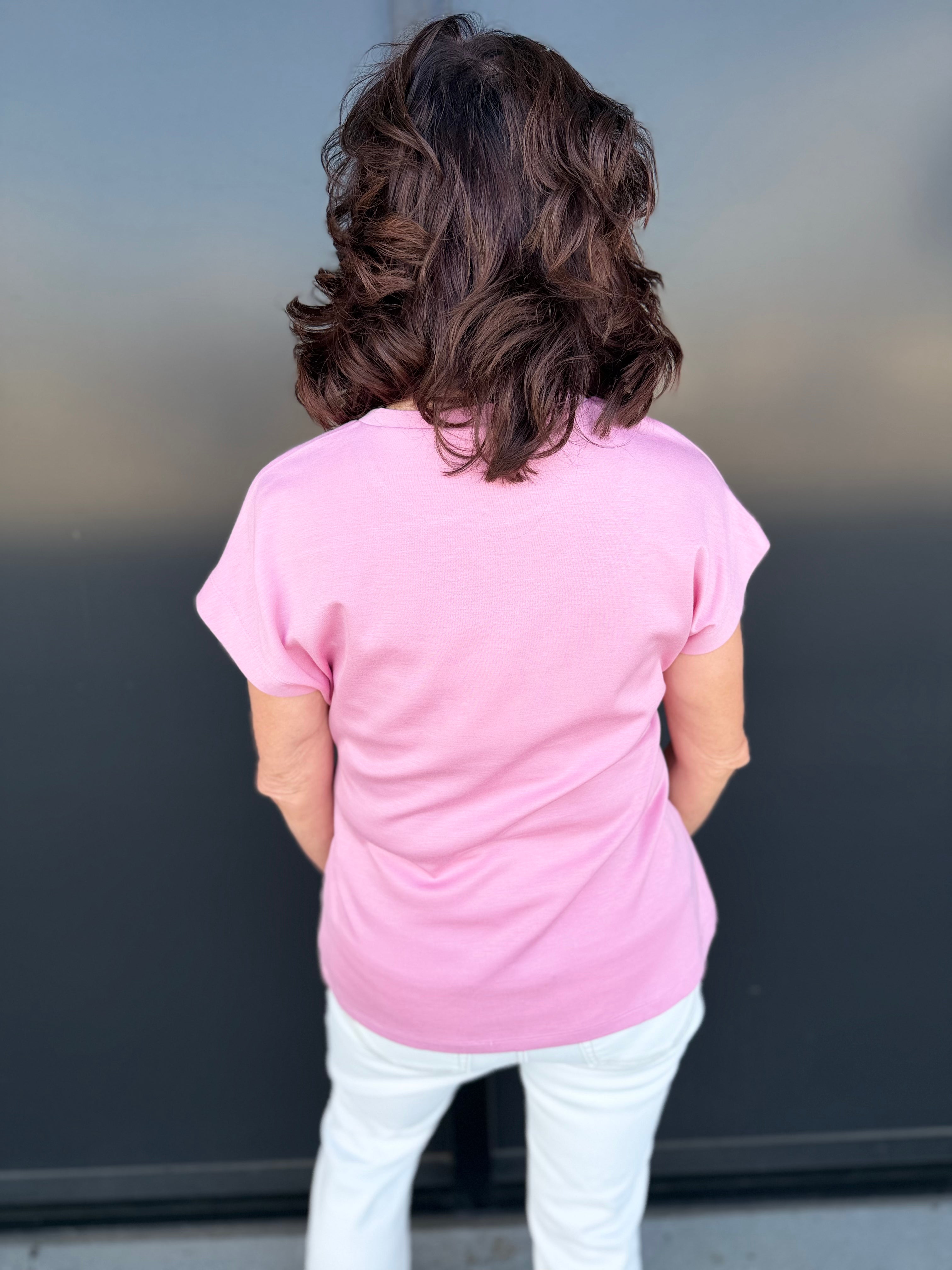 To maintain the beautiful light pink color and soft fabric quality, follow gentle care practices. This top is designed to be a long-lasting wardrobe staple that looks fresh wash after wash.