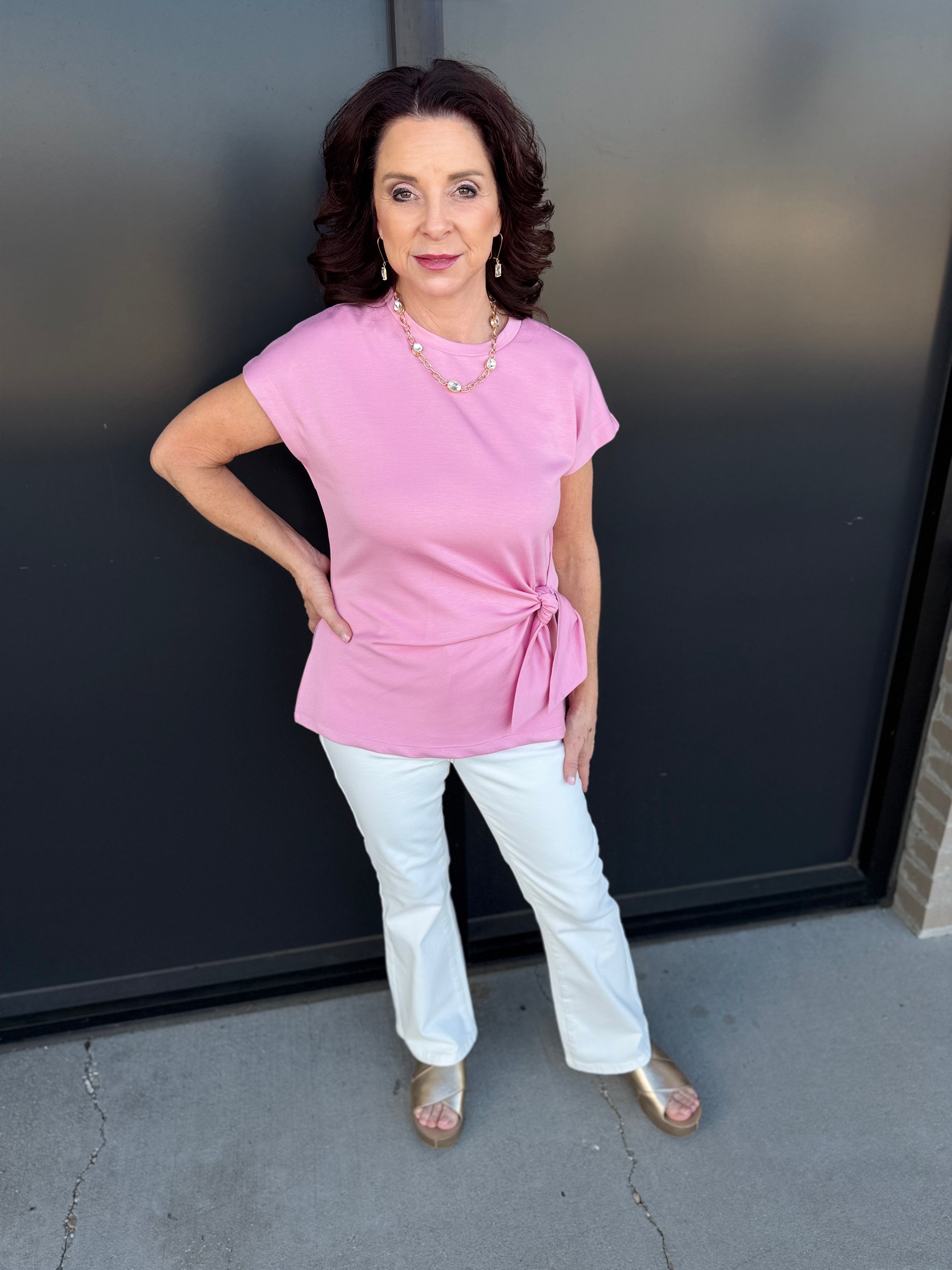 The Entro Light Pink Side Knot Top combines on-trend styling with timeless appeal. The side knot detail adds visual interest and creates a flattering shape, while the soft pink shade brings a feminine touch to your wardrobe. Whether you're dressing for comfort or style—or both—this top delivers. It's that perfect piece you'll reach for again and again, knowing it will make you look and feel amazing.