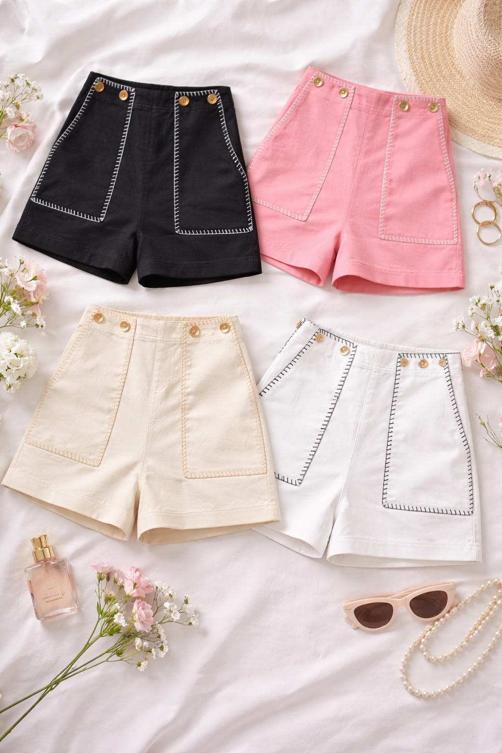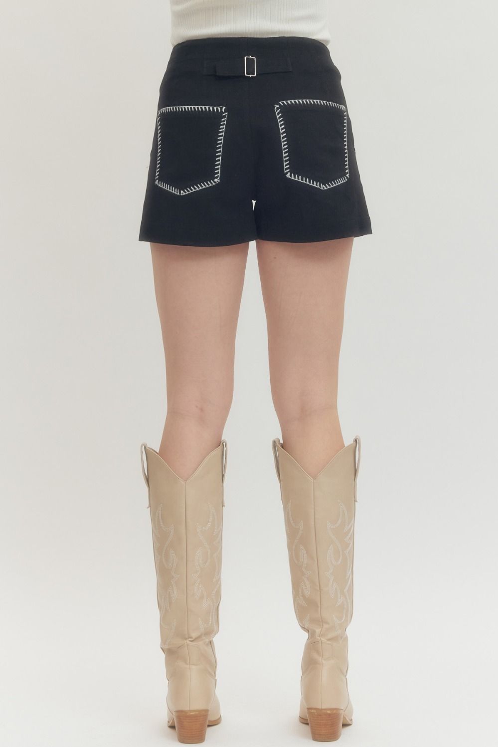 High-Waist Shorts with Contrast Stitch Detail