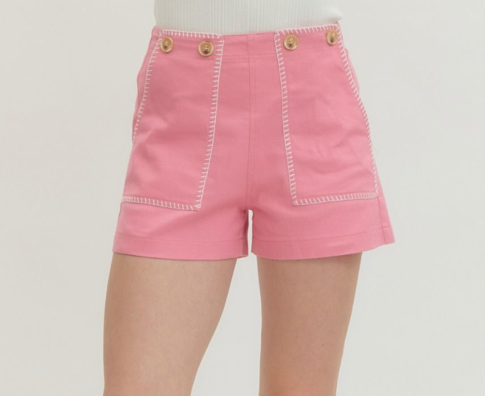 High-Waist Shorts with Contrast Stitch Detail