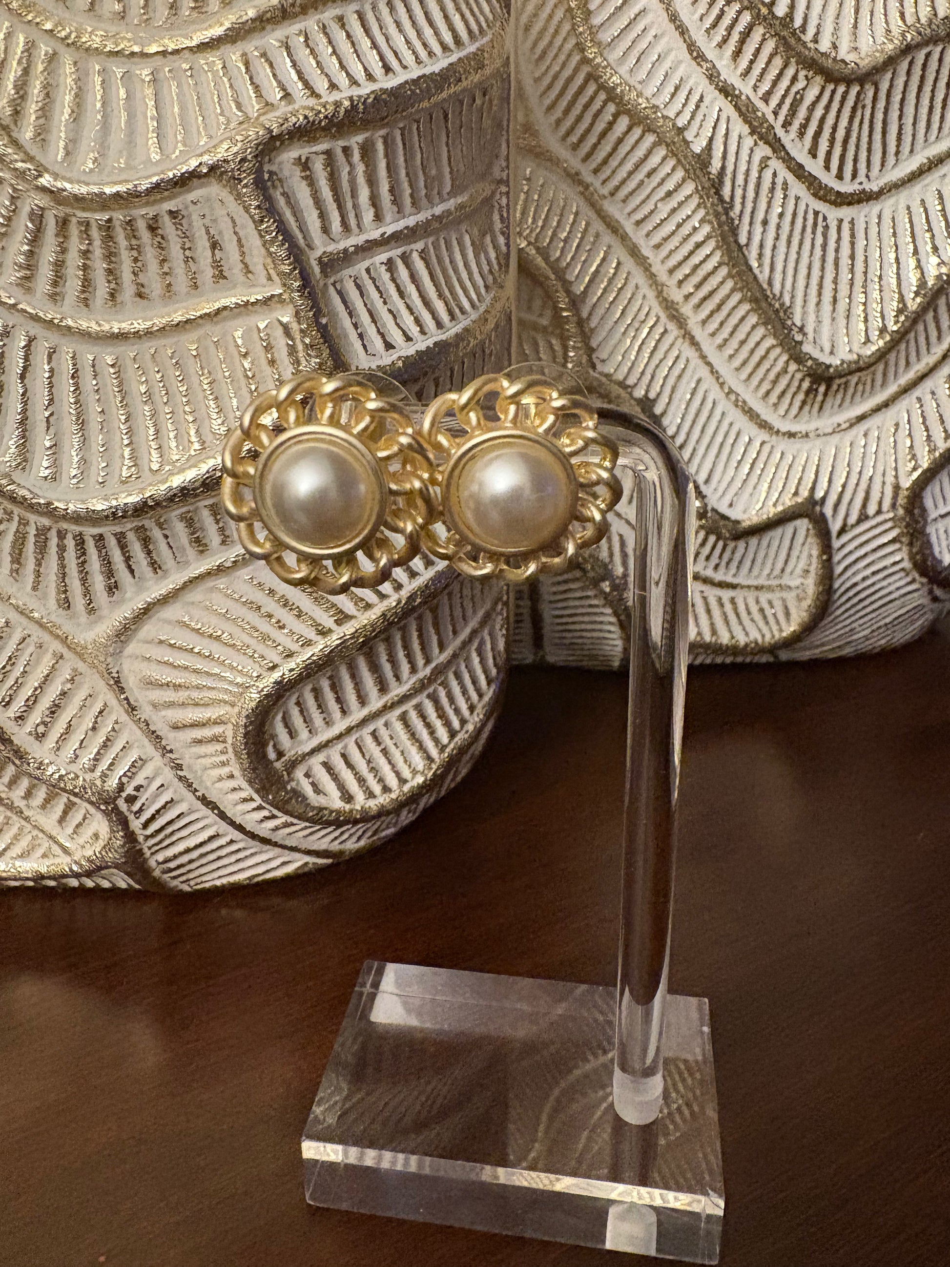 Enhance your style with these elegant 14K gold plated button pearl earrings. The 21MM pearls add a touch of sophistication to any outfit. Complete the look with the matching necklace for a polished and classic look. Matching Necklace.