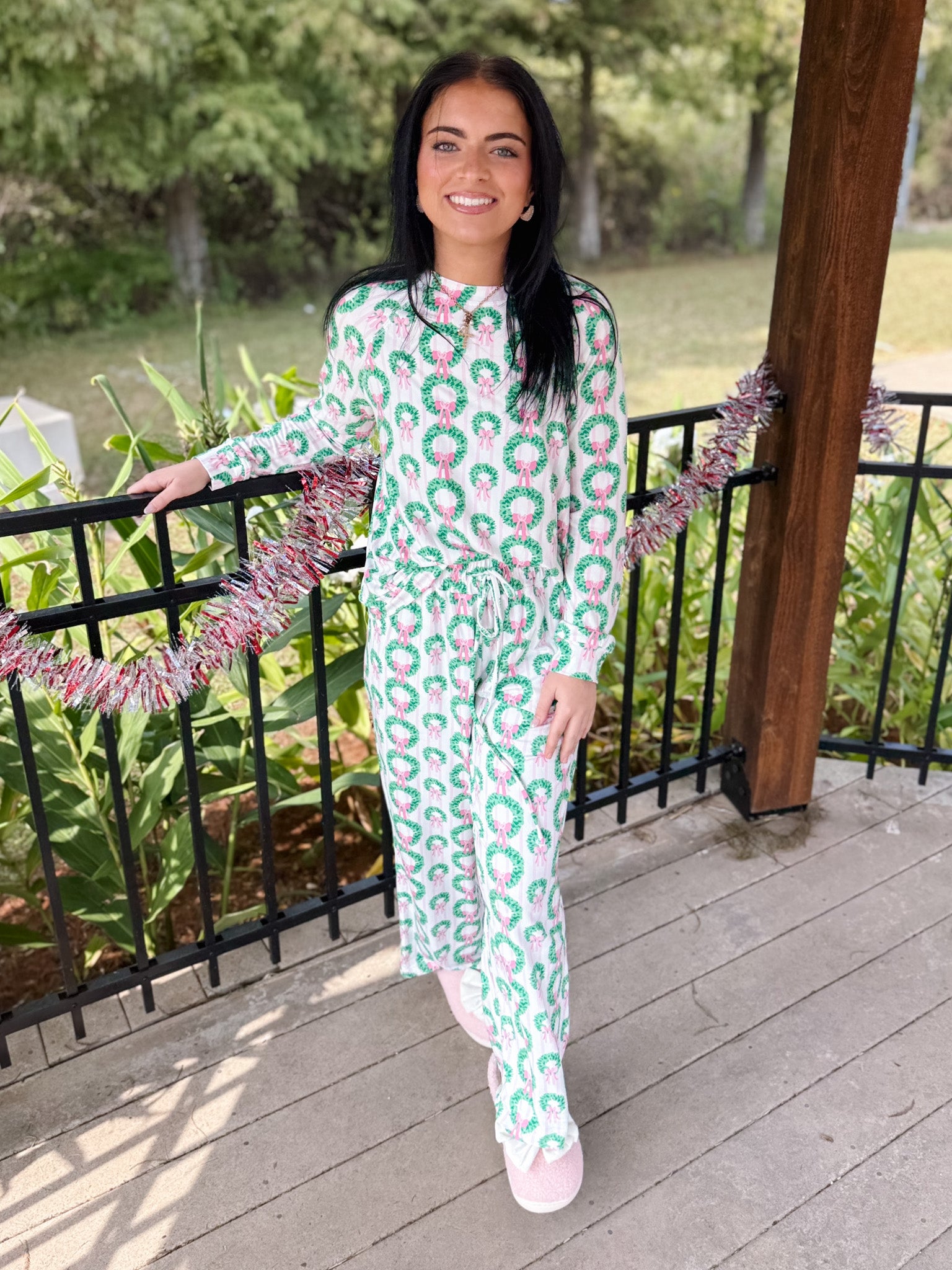 The Annie Pajama Set is designed to bring you ultimate relaxation without sacrificing style. Featuring a long sleeve top with a classic crew neckline and straight-leg pants with an adjustable drawstring waist, this set is made for cozy nights and laid-back mornings.