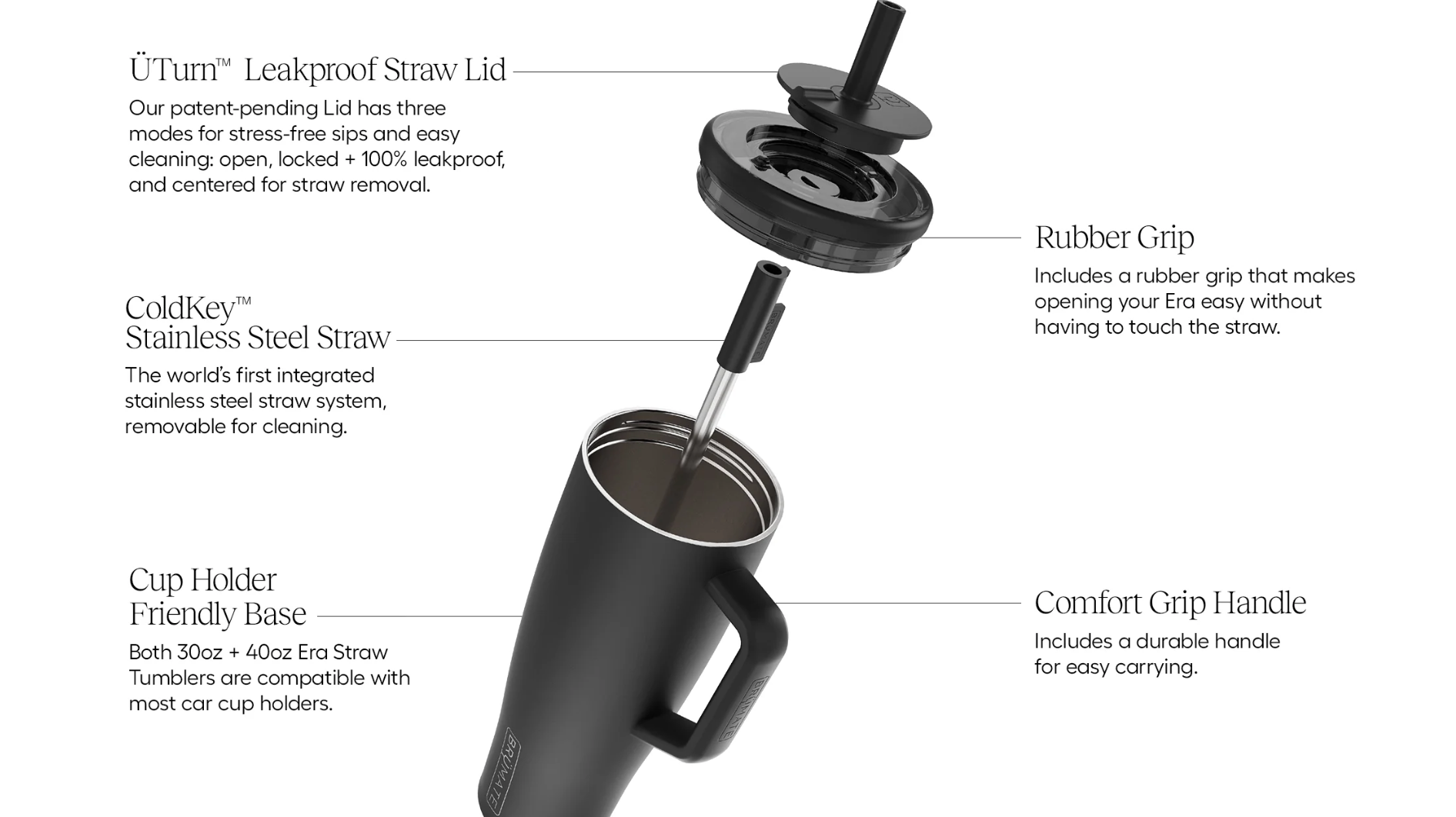 A new Era of straw tumbler is here. Our Era tumbler is totally leakproof, and made for stress free sips on the go. It has our fully leakproof Ü-Turn™ lid that works for both cold and carbonated beverages, ColdKey™ metal straw for minimizing the amount of plastic sitting in your water, BevGuard™ technology to keep ice for 24+ hours, and a cup-holder friendly base so you can enjoy 40oz of your favorite beverage, free of leaks and spills throughout your daily journey.