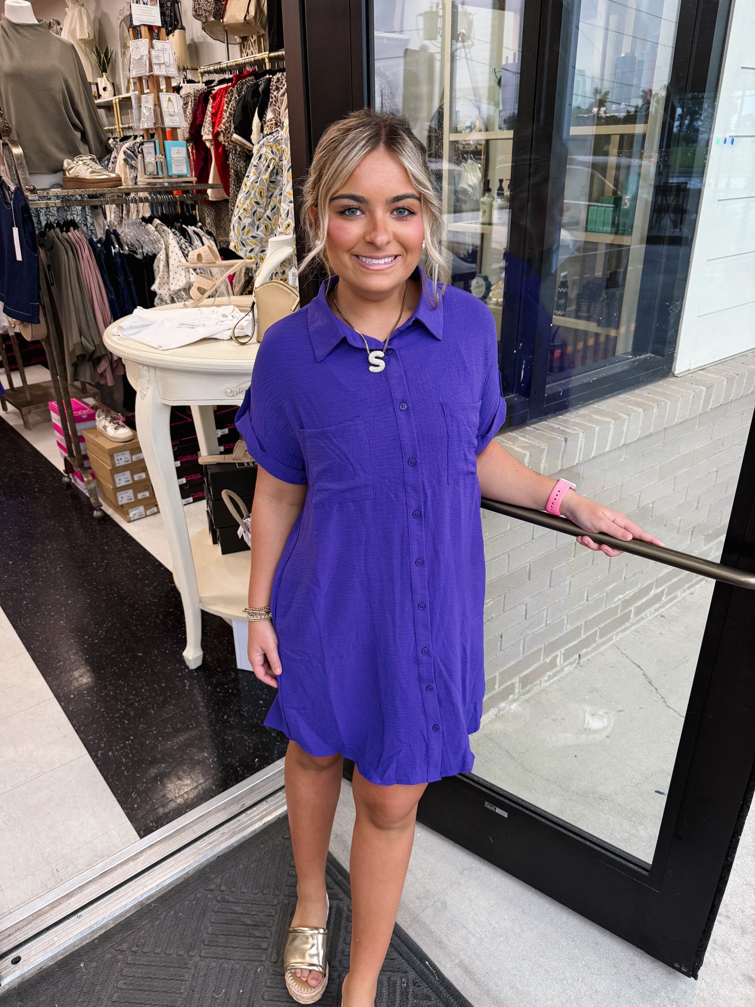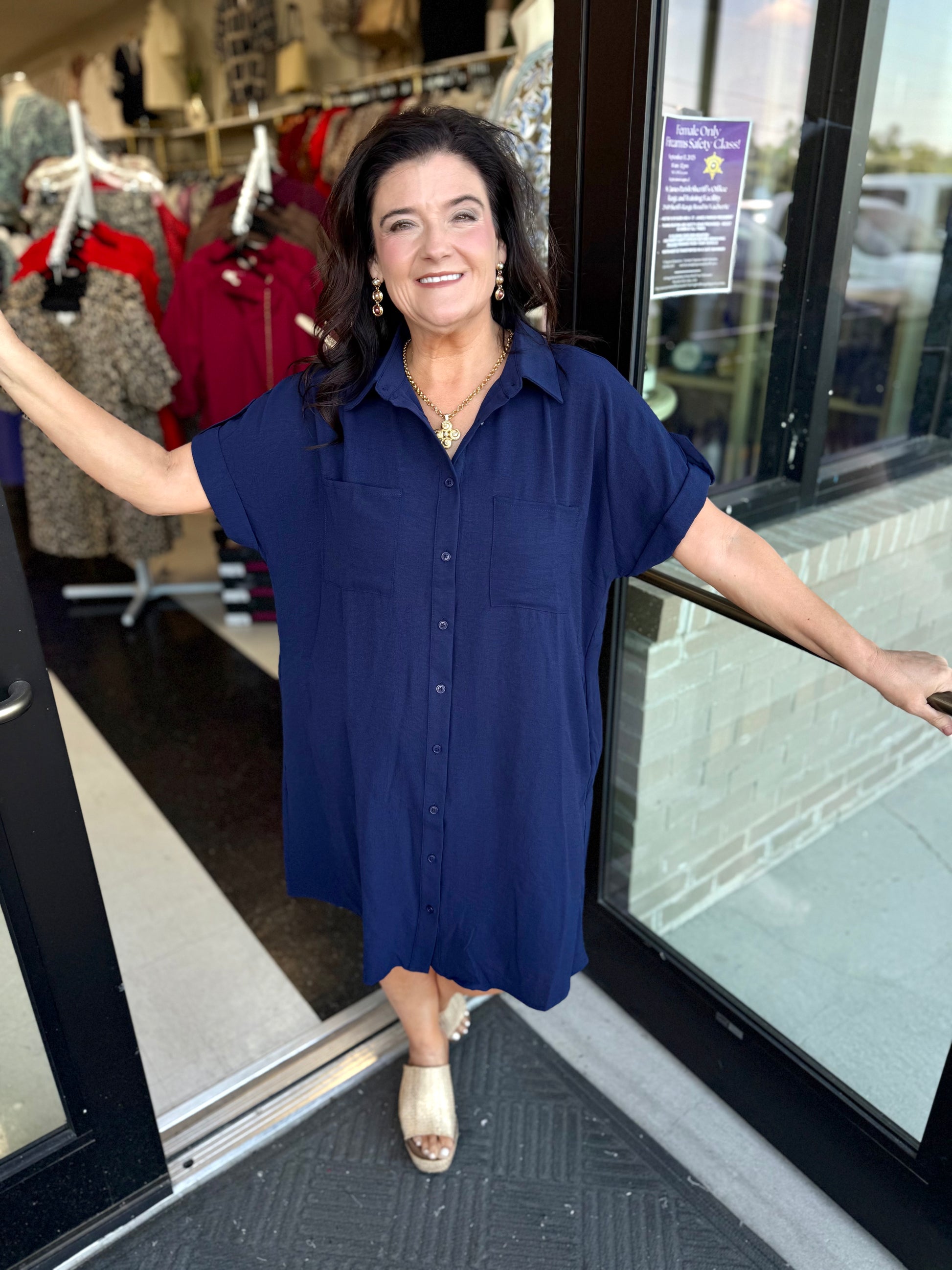 Elevate your wardrobe with the Collared Tailgate Dress, a refined take on the classic button-up shirt dress. Featuring a relaxed drop shoulder design and woven fabric, it offers effortless sophistication and comfort. Perfect for day-to-night wear, this dress combines timeless style with modern ease.