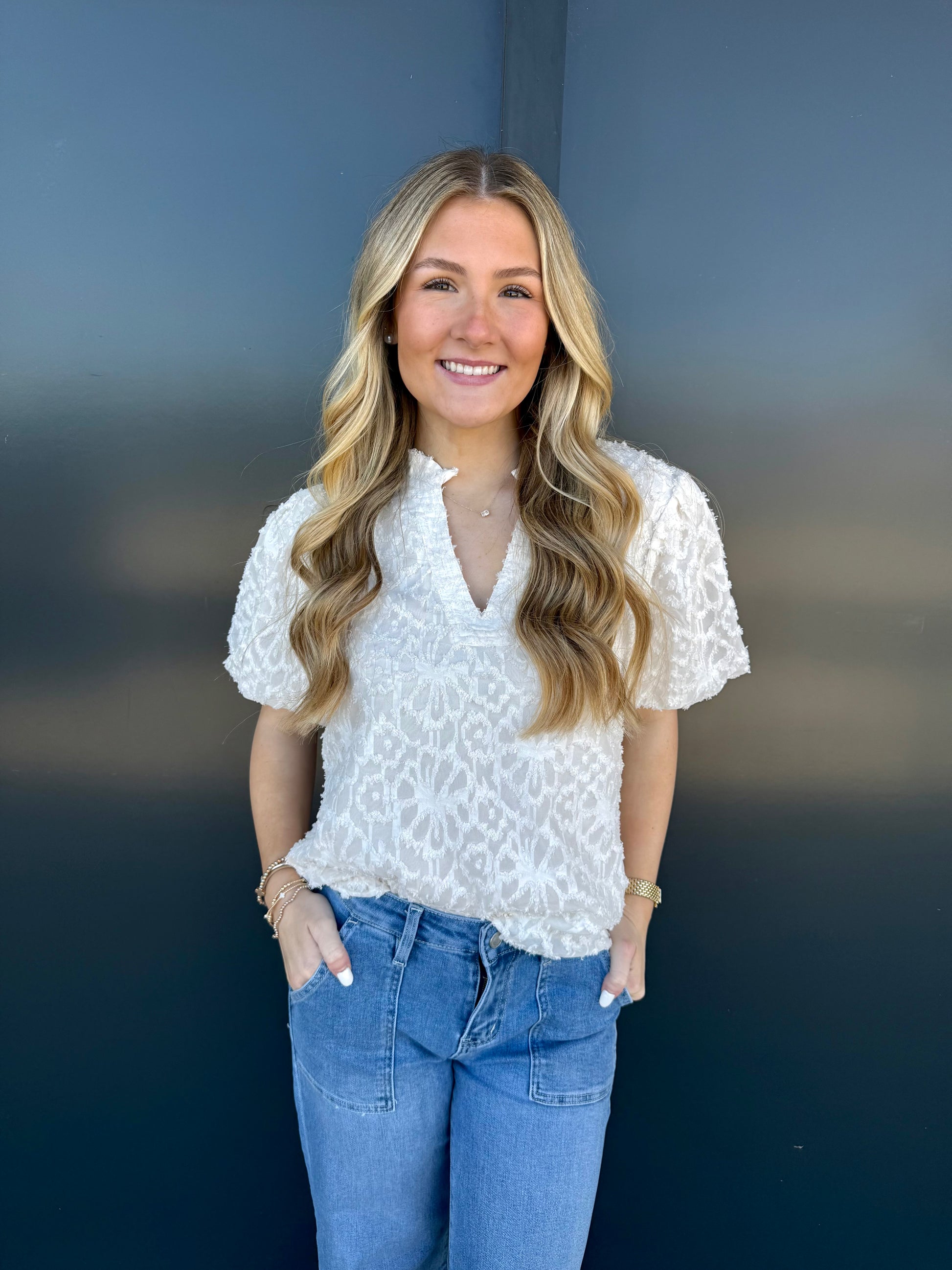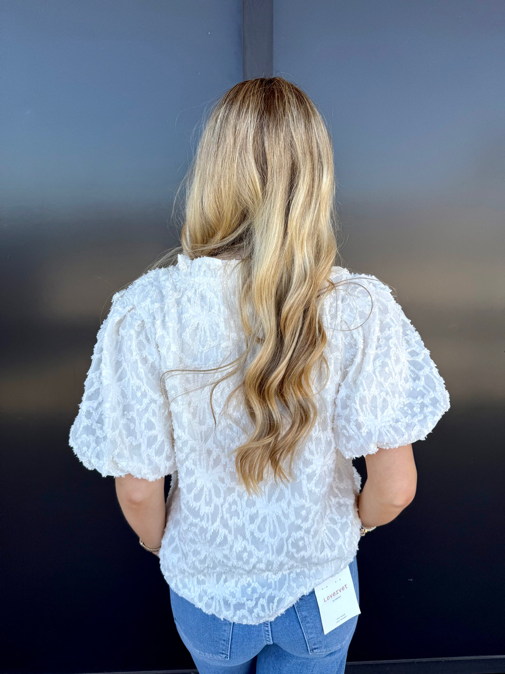 Introducing the Ellison Cali Top, a must-have for any fashion-forward wardrobe. This luxurious top features a captivating v-neckline, elegantly accentuated by stunning puff sleeves and delicate lace detailing. Elevate your style and exude grace and sophistication with this exclusive piece.