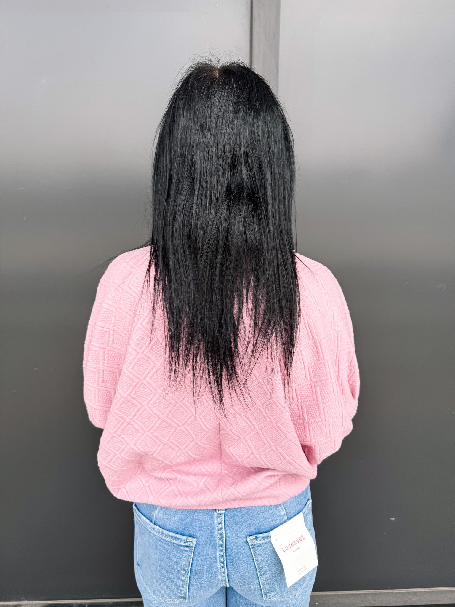 Elevate your spring and summer wardrobe with the Entro Edie Top. The beautiful quilted material and stunning striped neckline (complete with zipper!) add a touch of whimsy to this versatile top. Its slight dolman fit offers a flattering silhouette without being too oversized. Perfect for any season!