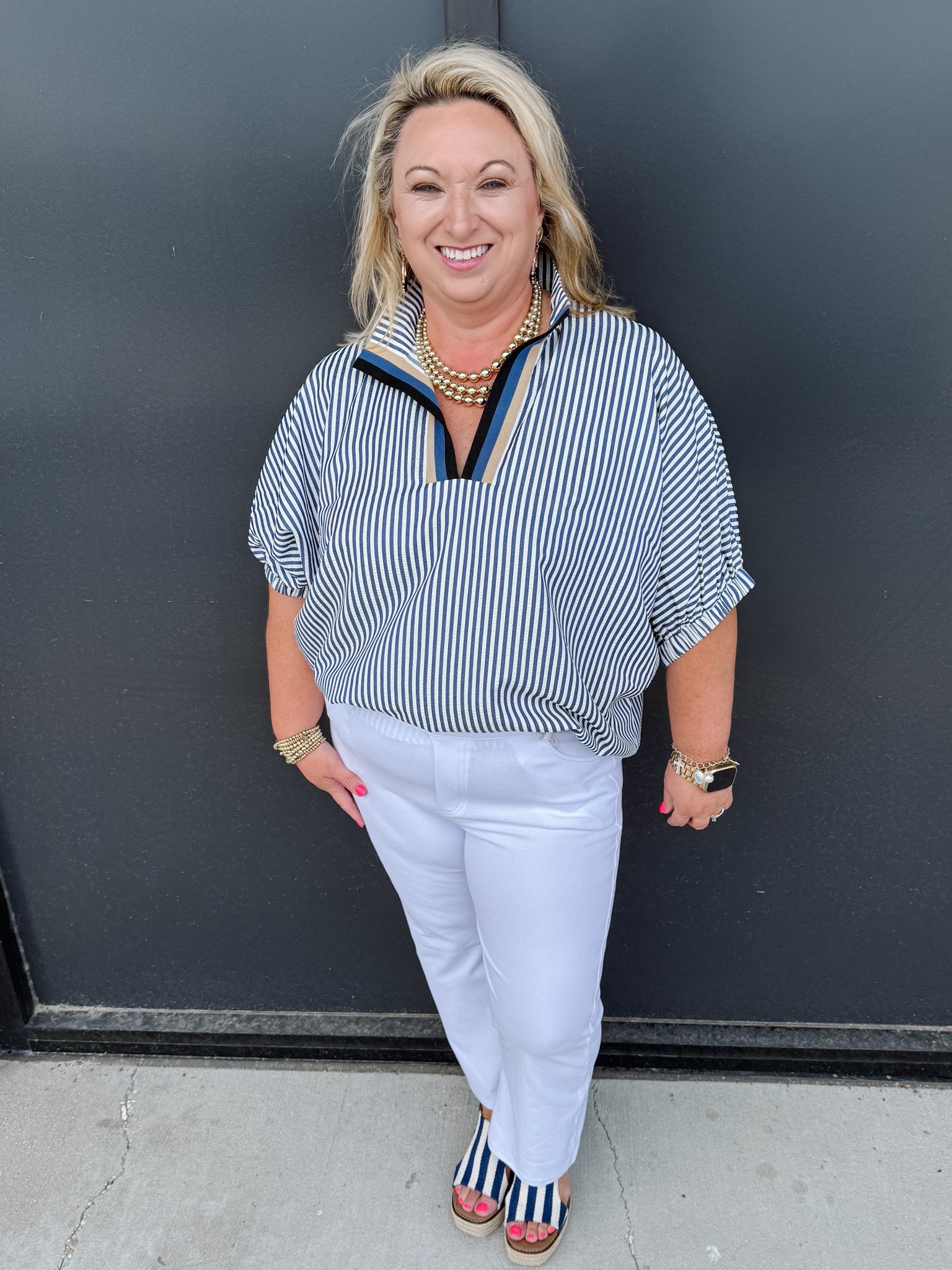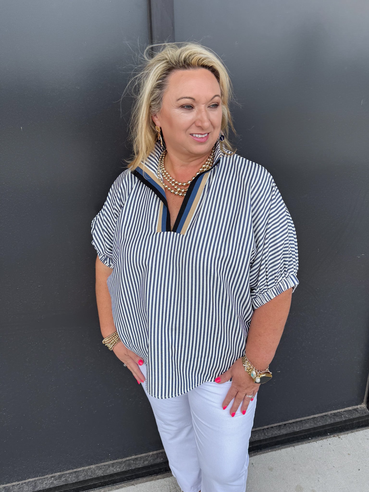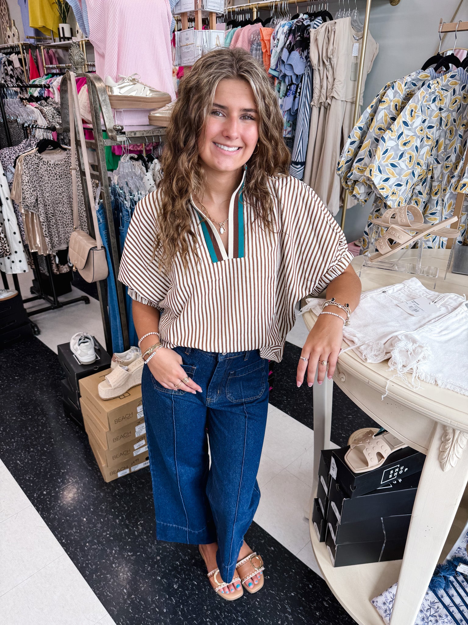 The Entro Saden Top brings a playful twist to your wardrobe with its stripe-patterned high neck and elasticated dolman sleeves. Featuring a vibrant multicolor ribbed band and a stylish split neck, this lightweight woven top offers comfort without the bulk. Unlined and non-sheer, it’s perfect for layering or wearing on its own for a fun, fresh look.