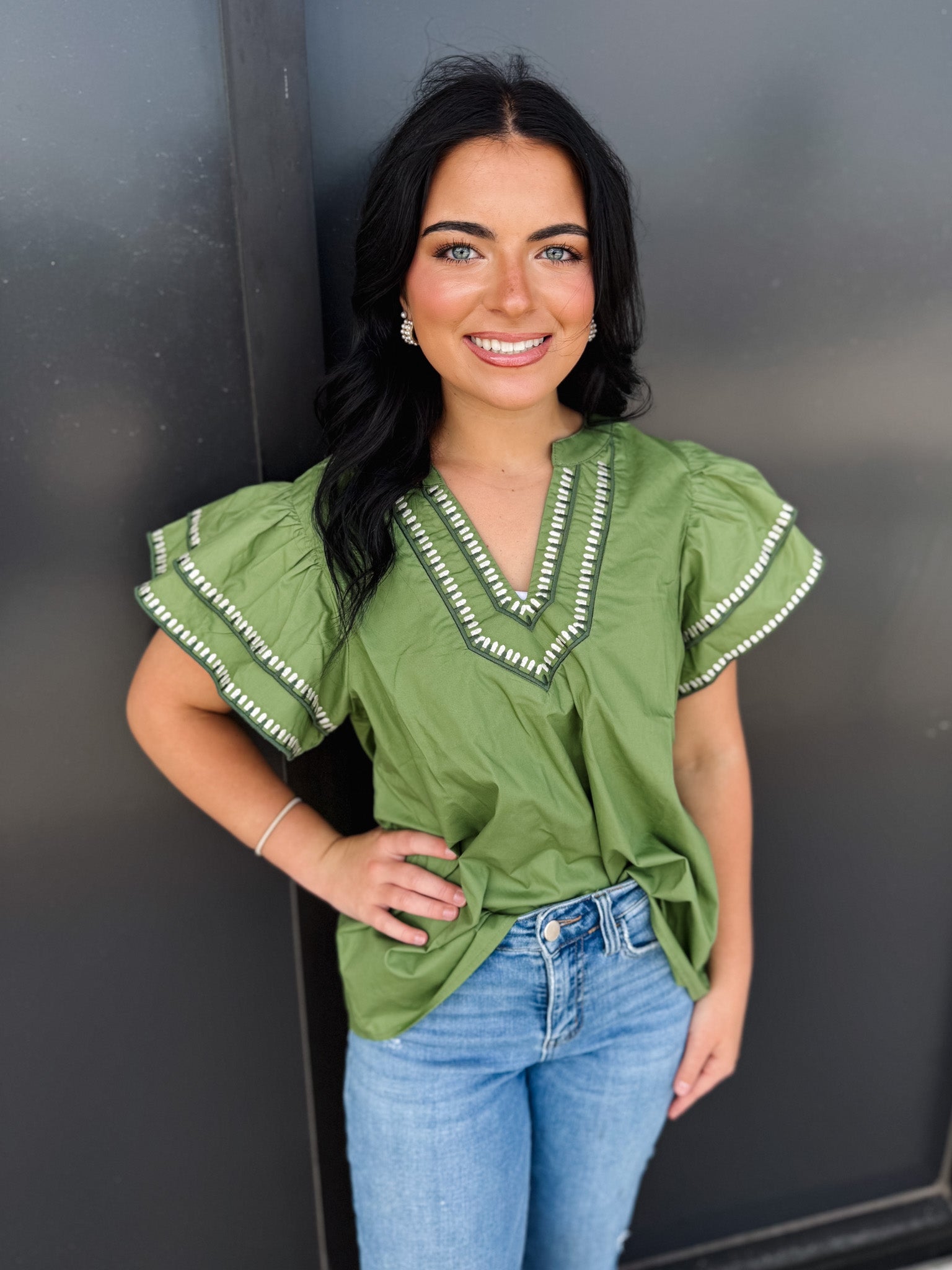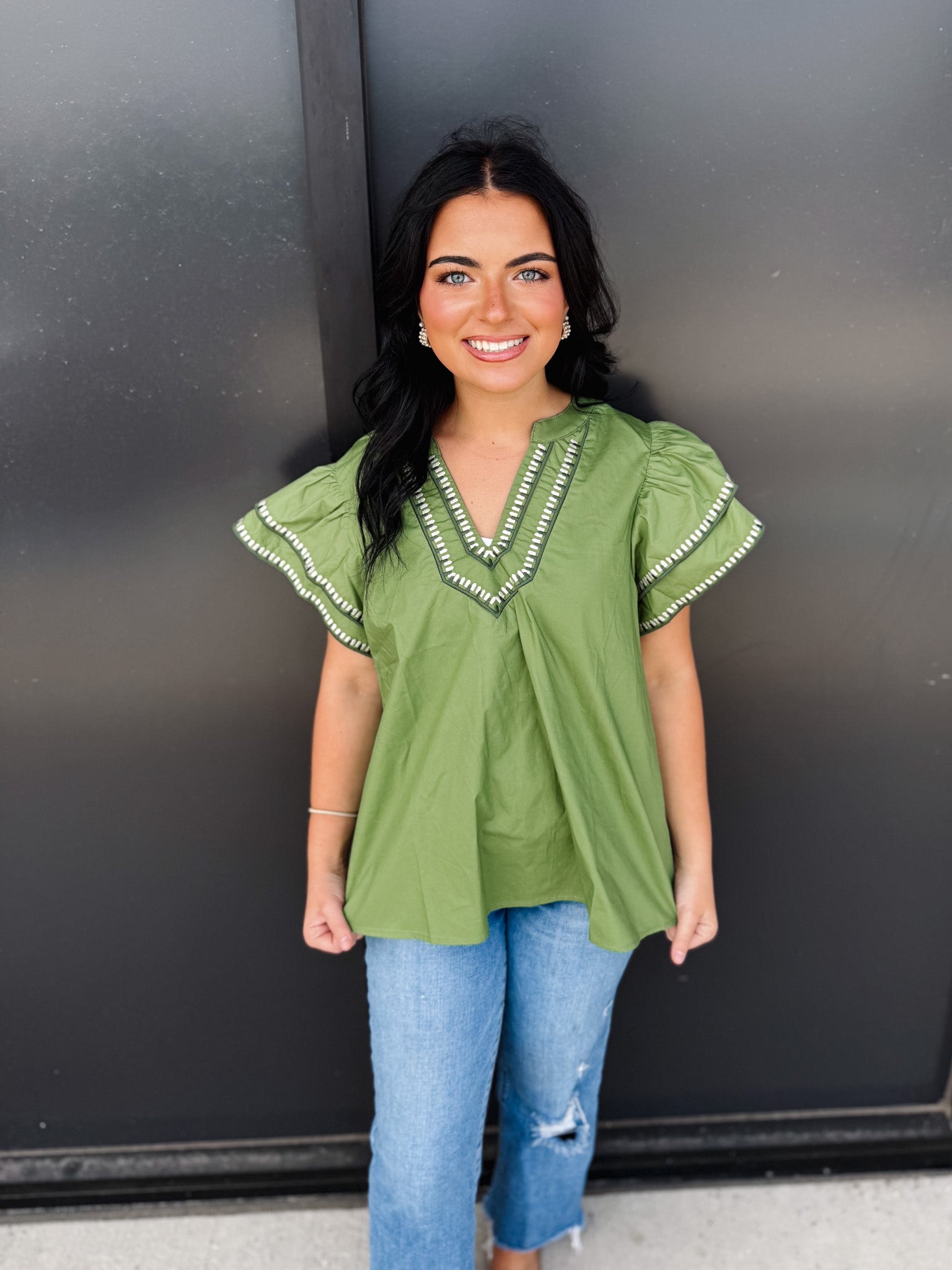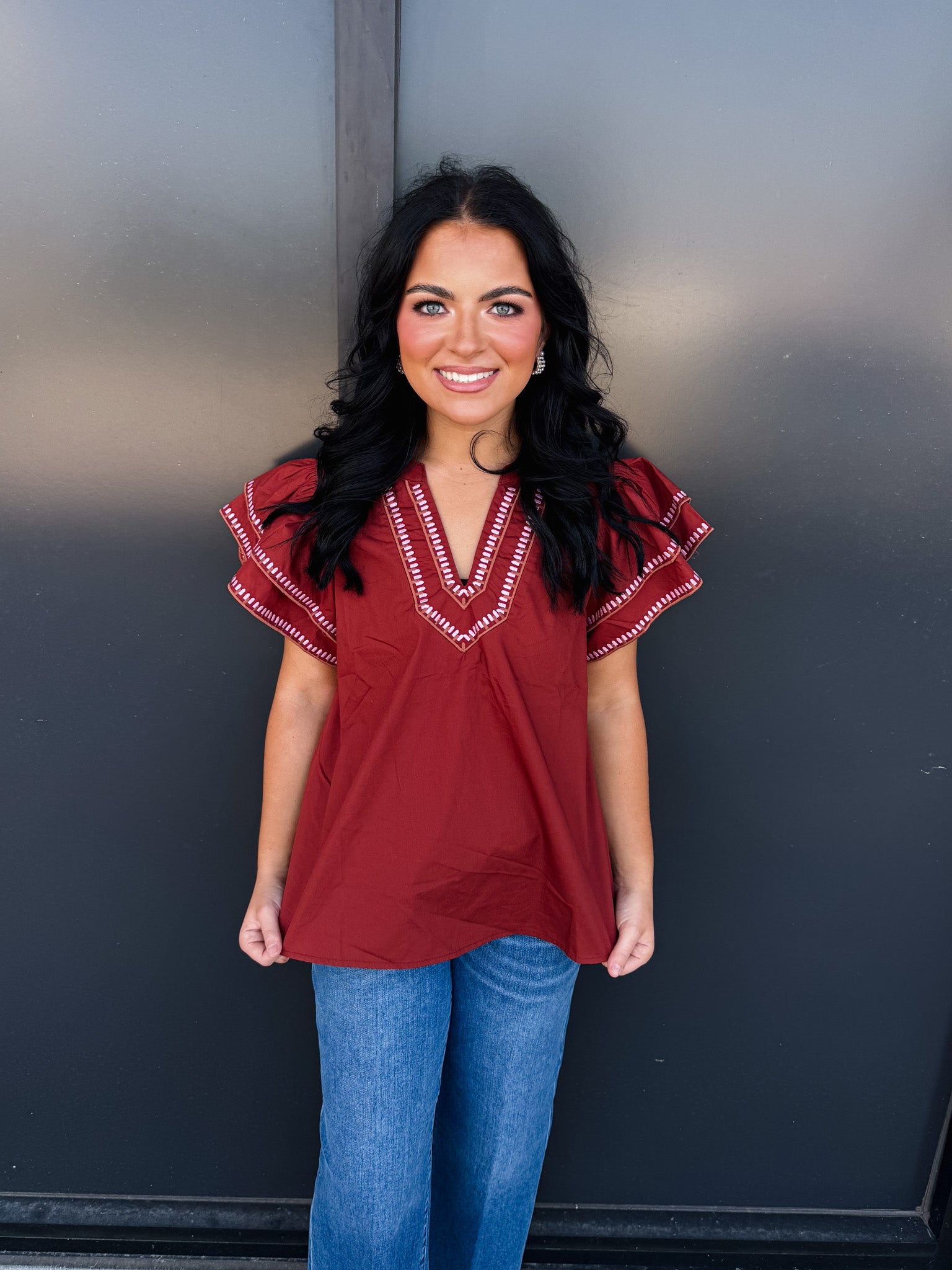 Elevate your wardrobe with the Entro Slow Burn Top, a sophisticated choice featuring delicate layered ruffle flutter sleeves that add graceful movement. Its contrast embroidered trim along the V-neck enhances subtle elegance, while the lightweight woven fabric offers comfort without compromising structure. Unlined and non-sheer, this top provides an effortlessly refined look perfect for both day and evening occasions.