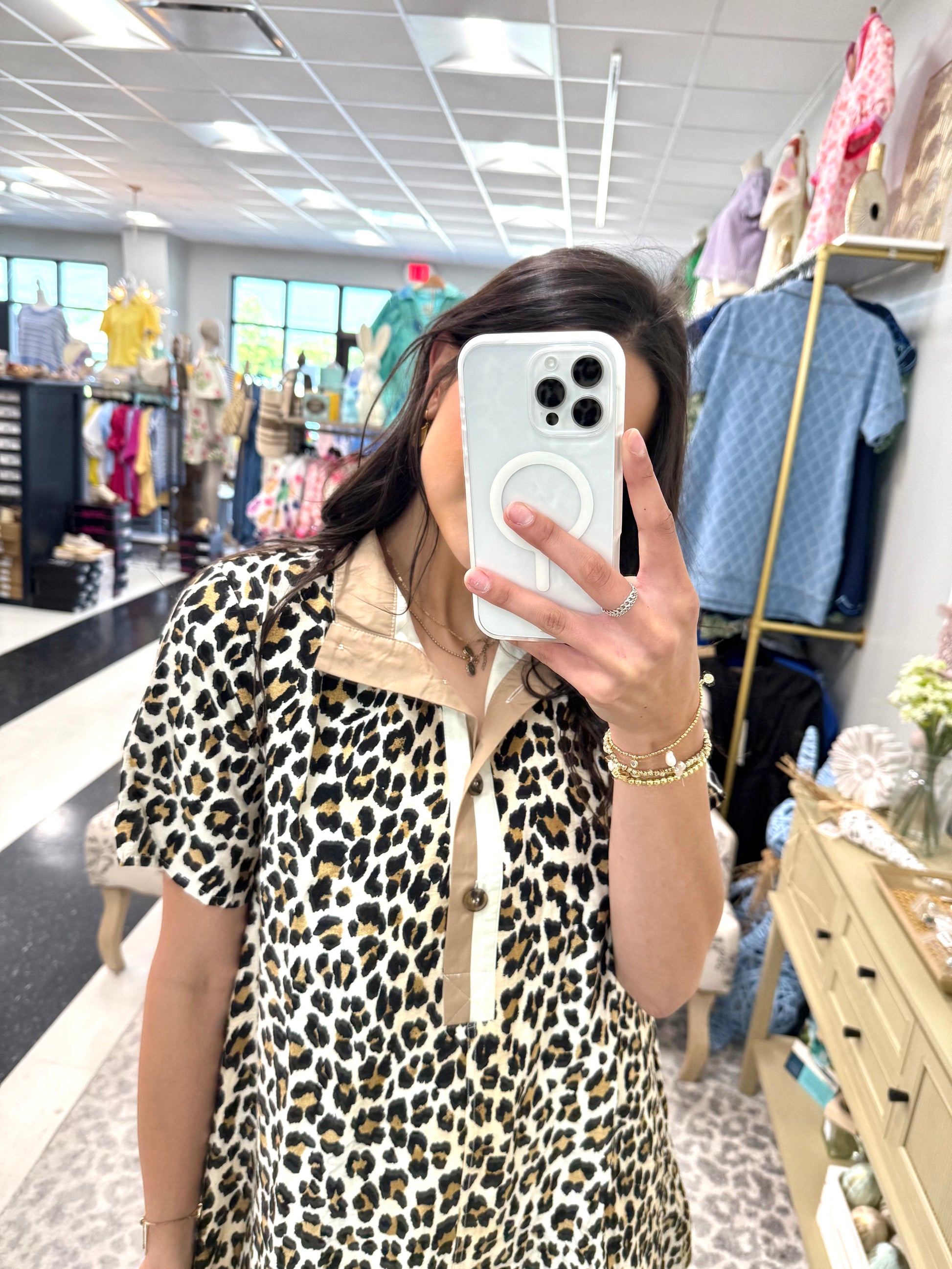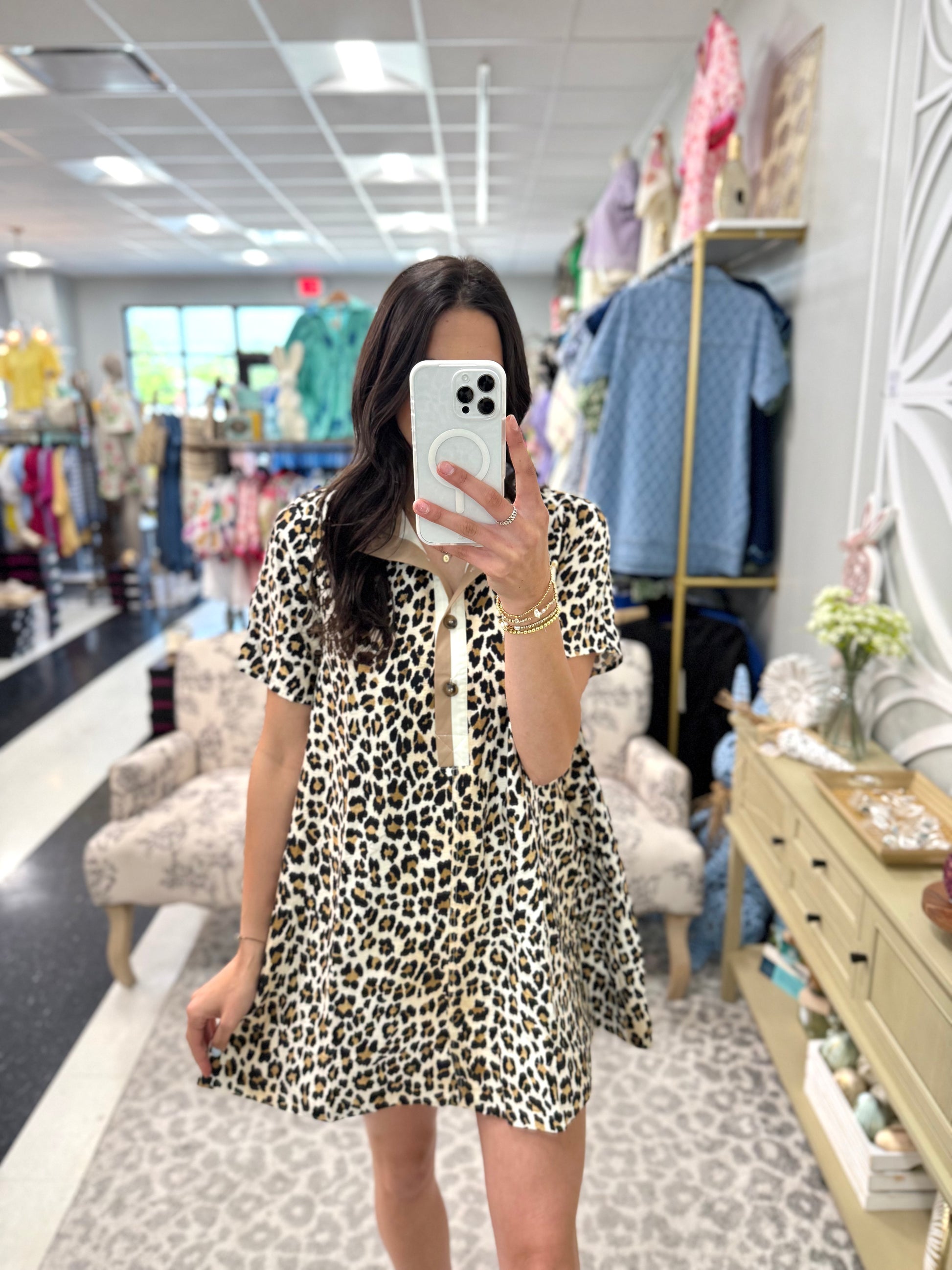 Be the envy of the crowd in a sophisticated Entro Stiles Dress. Crafted from a lightweight, non-sheer fabric, this mini dress boasts a bold leopard print design, a multicolor high band collar, and a front half button closure. With convenient side pockets and a sleek lining, this is a must-have for any fashion-forward individual.