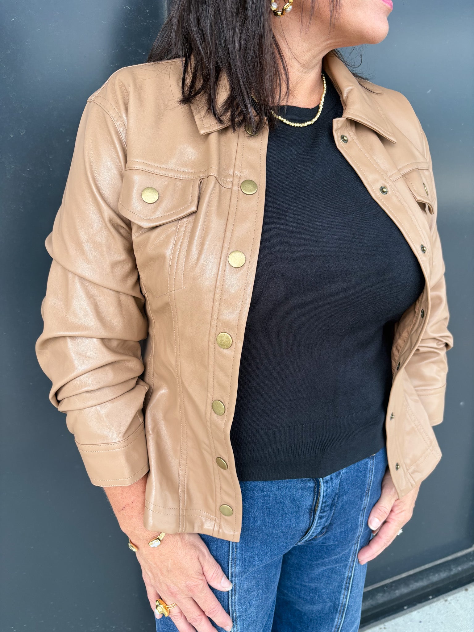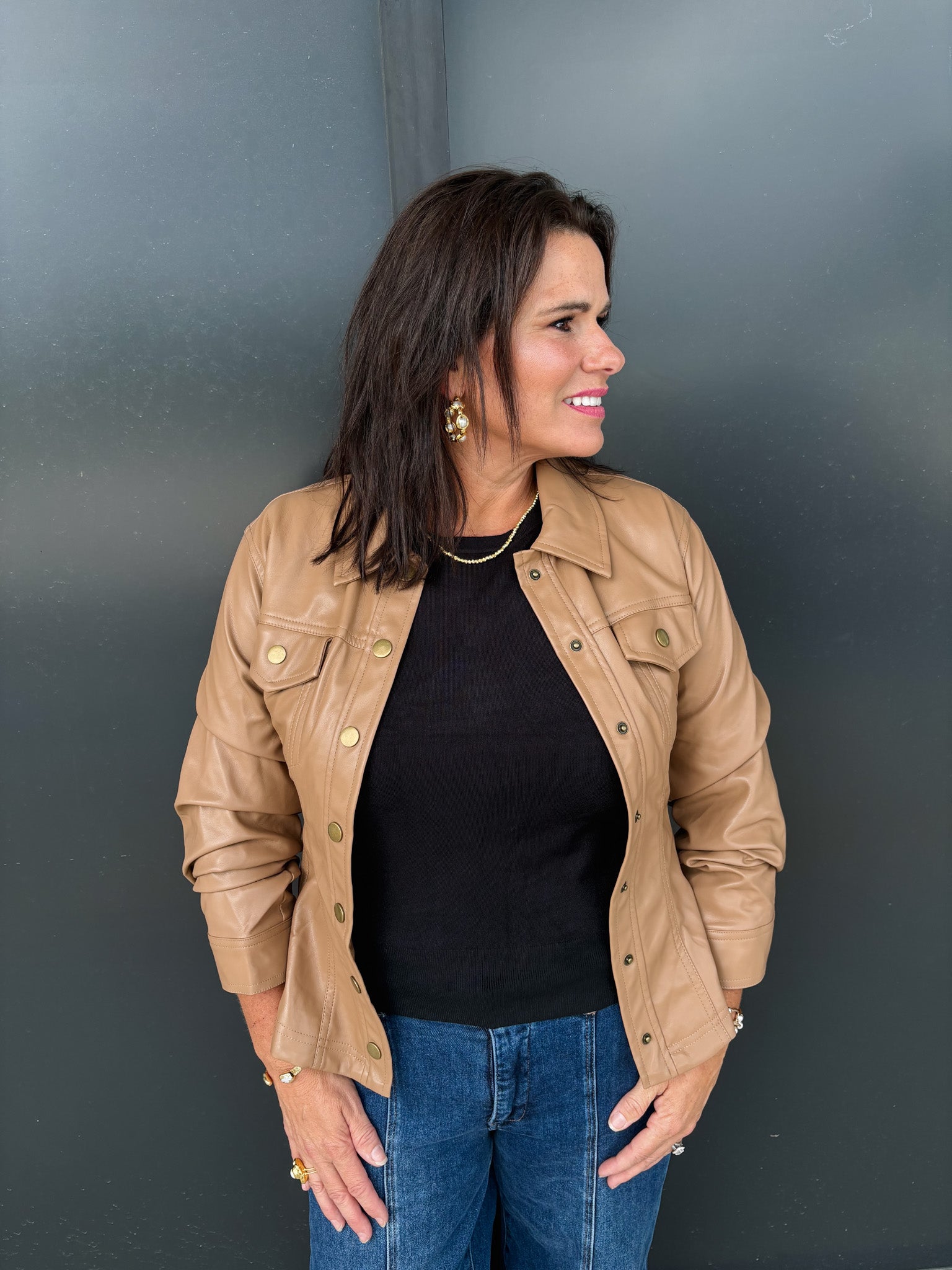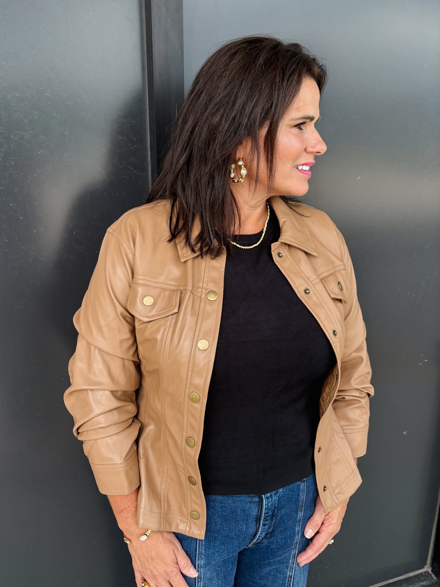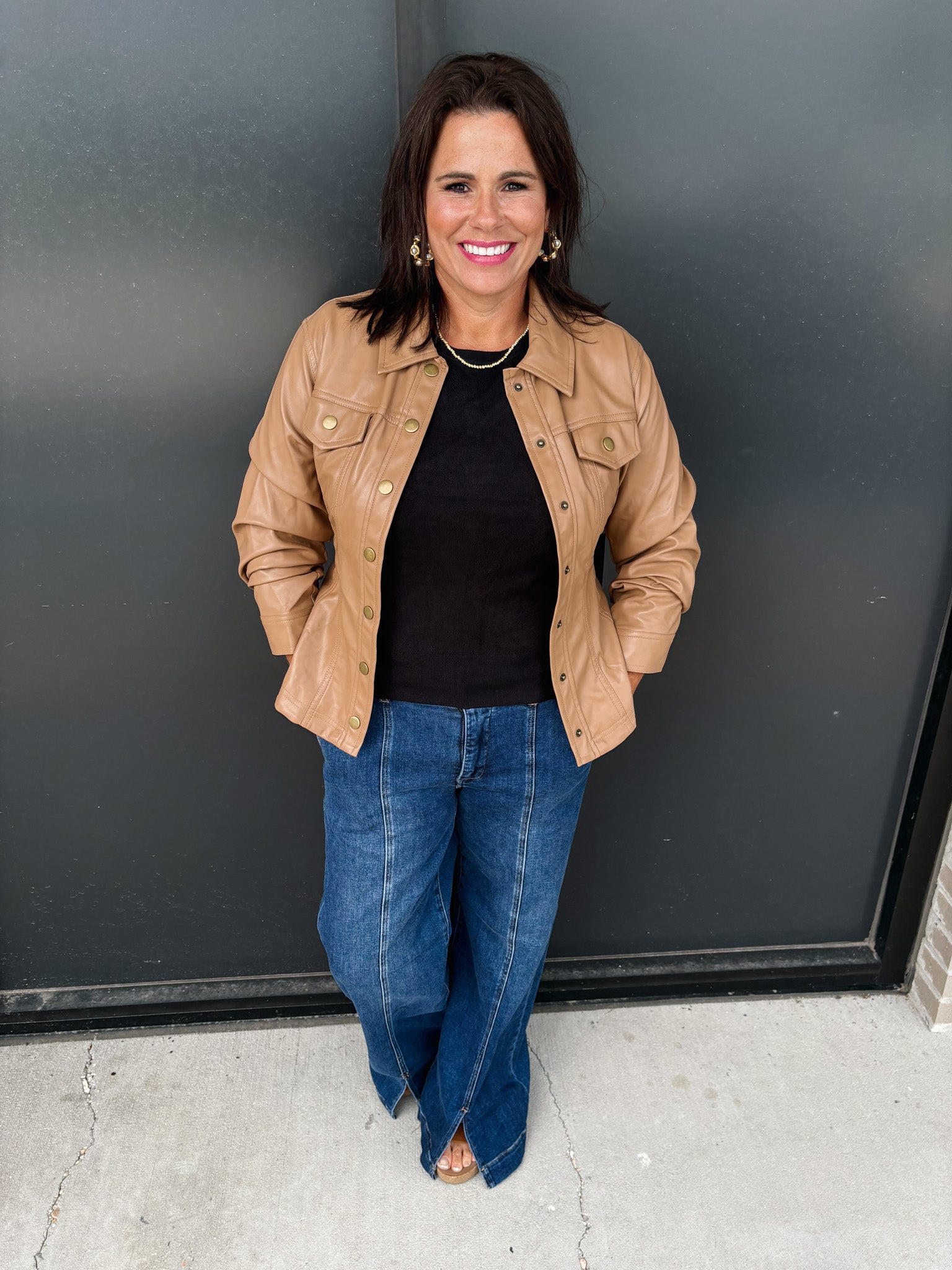 Elevate your wardrobe with the Fate Give It Your All Jacket, featuring a cinched 3/4 sleeve design and a faux leather peplum silhouette. This jacket offers a refined shape that accentuates your waist, blending edgy elegance with timeless sophistication. Perfect for seamless transitions from day to night, it adds a polished finish to any outfit.