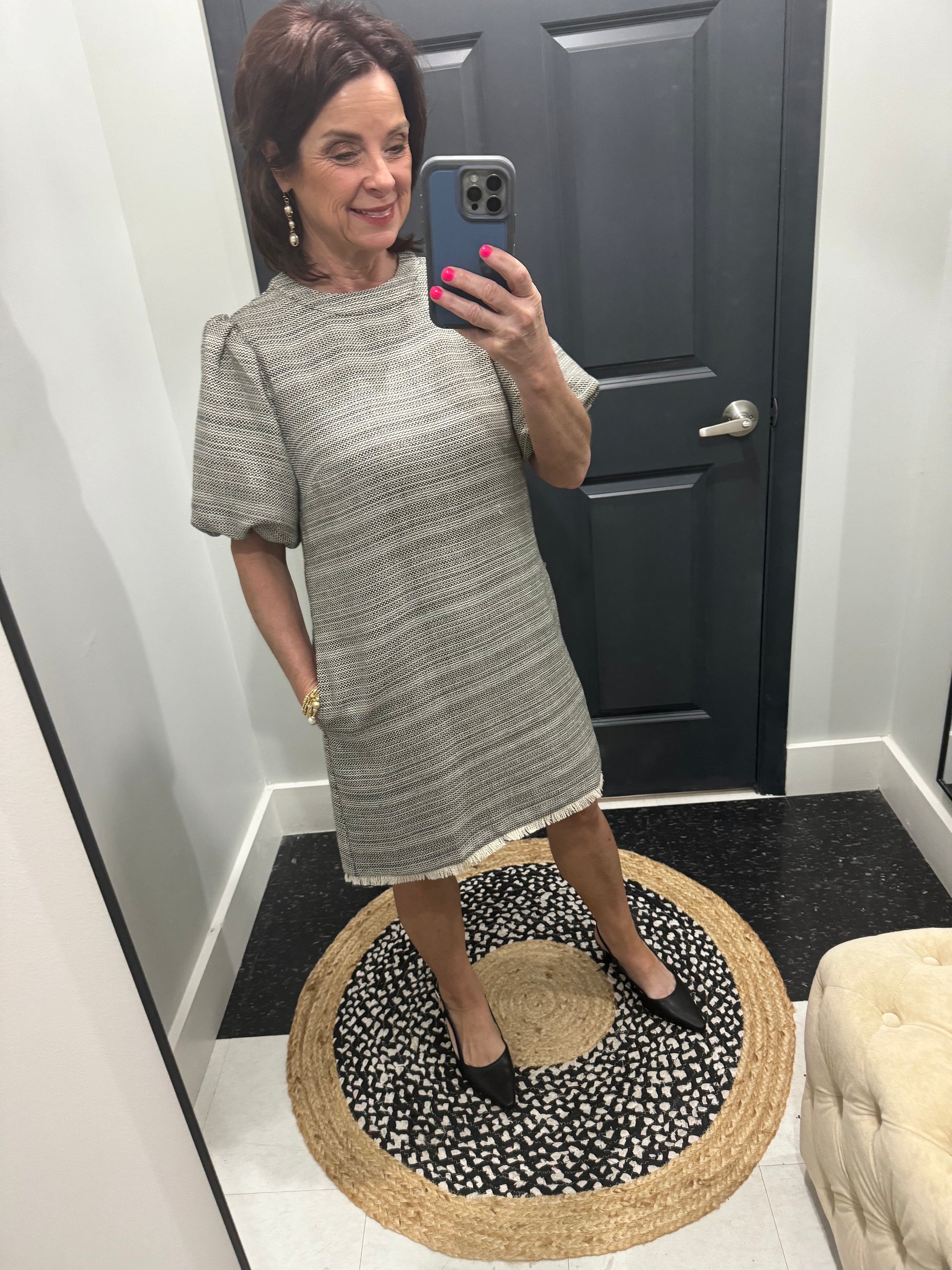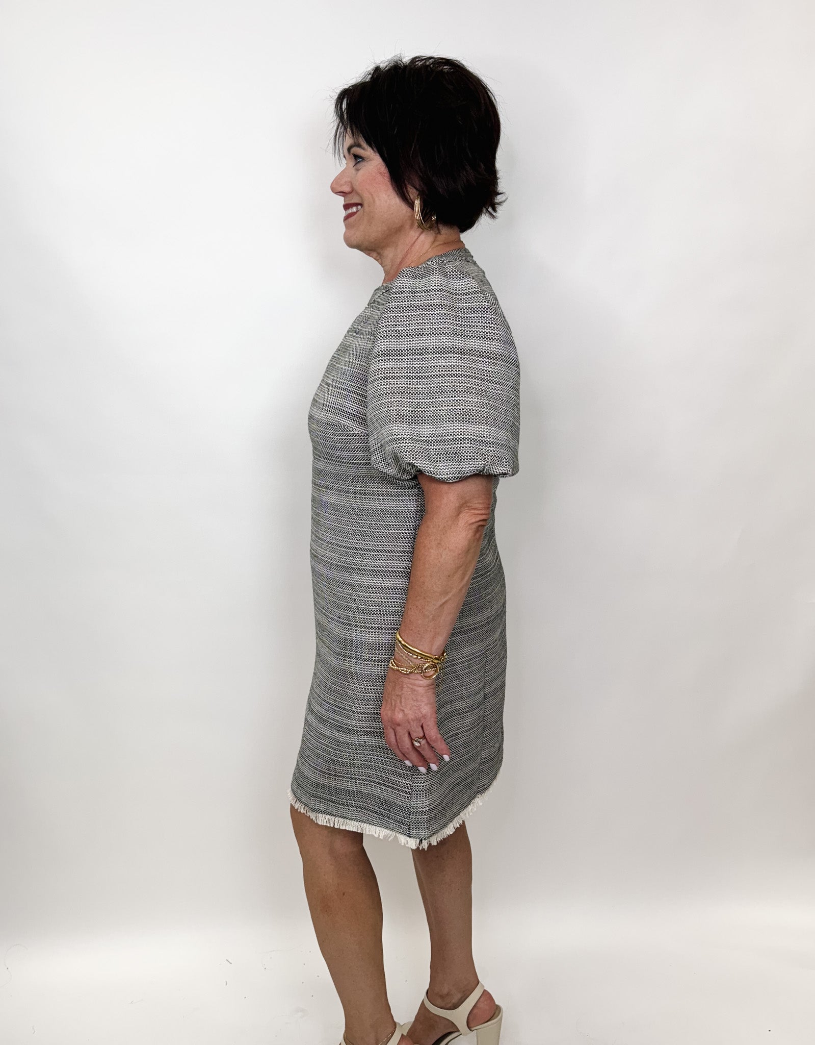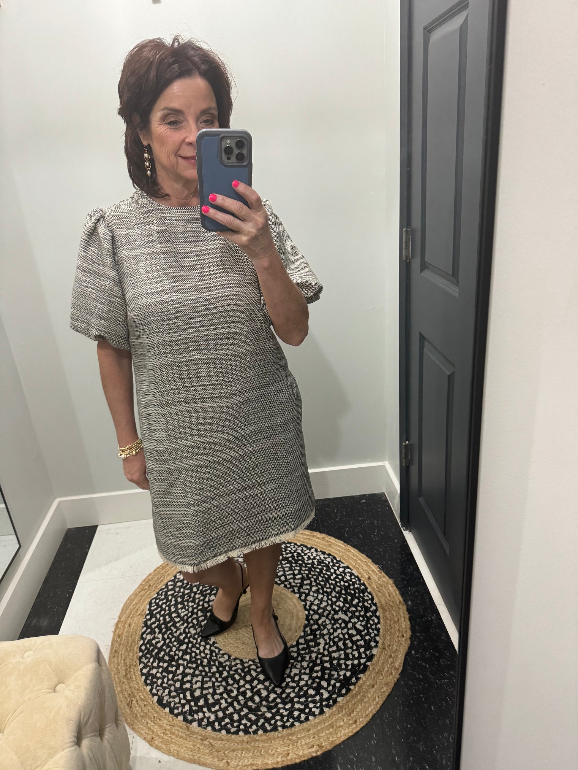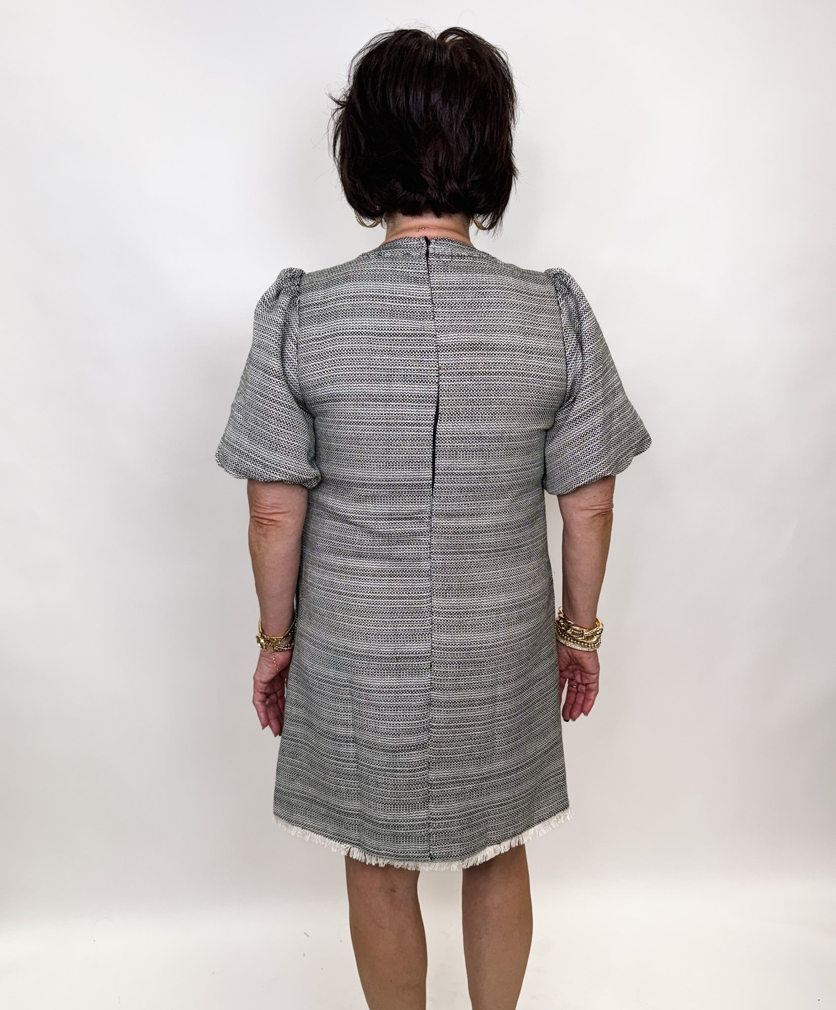 Indulge in luxury with our Fate Tana Top. A perfect blend of glamour and sophistication, this metallic tweed puff sleeve dress will elevate your style to new heights. The shimmering fabric and statement sleeves make for a unique and elegant piece that is sure to turn heads. Elevate your wardrobe with this must-have top.