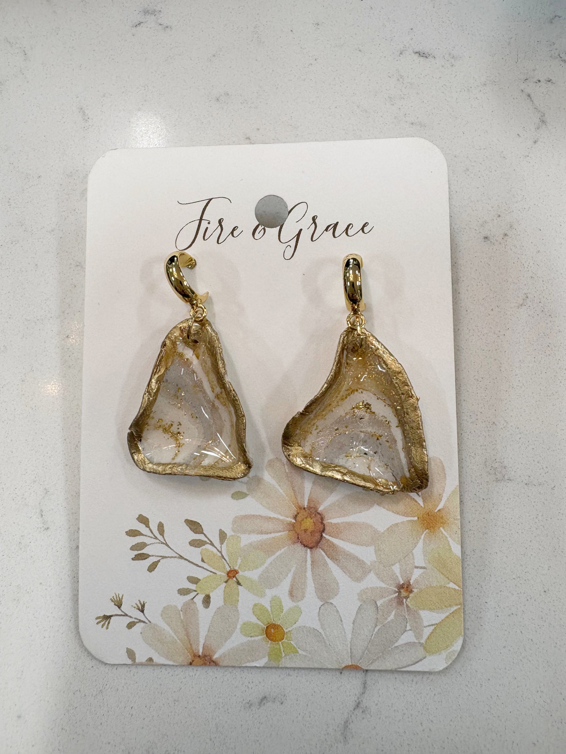 Expertly crafted by Fire & Grace, these elegant Oyster earrings are the perfect blend of fire and grace. Their intricate design showcases the skill and precision of the artisan, making them a stunning addition to any jewelry collection. Elevate your style with these unique and beautifully hand-crafted earrings.