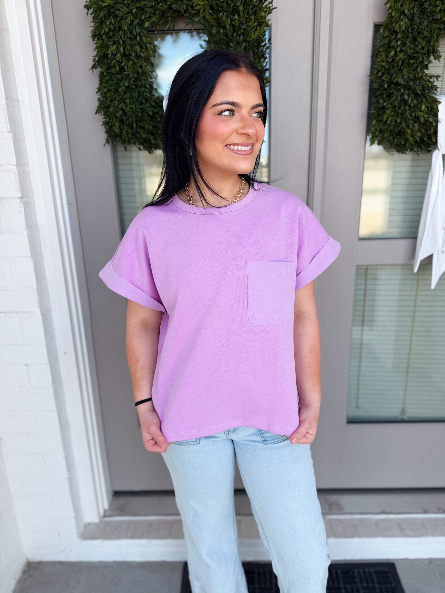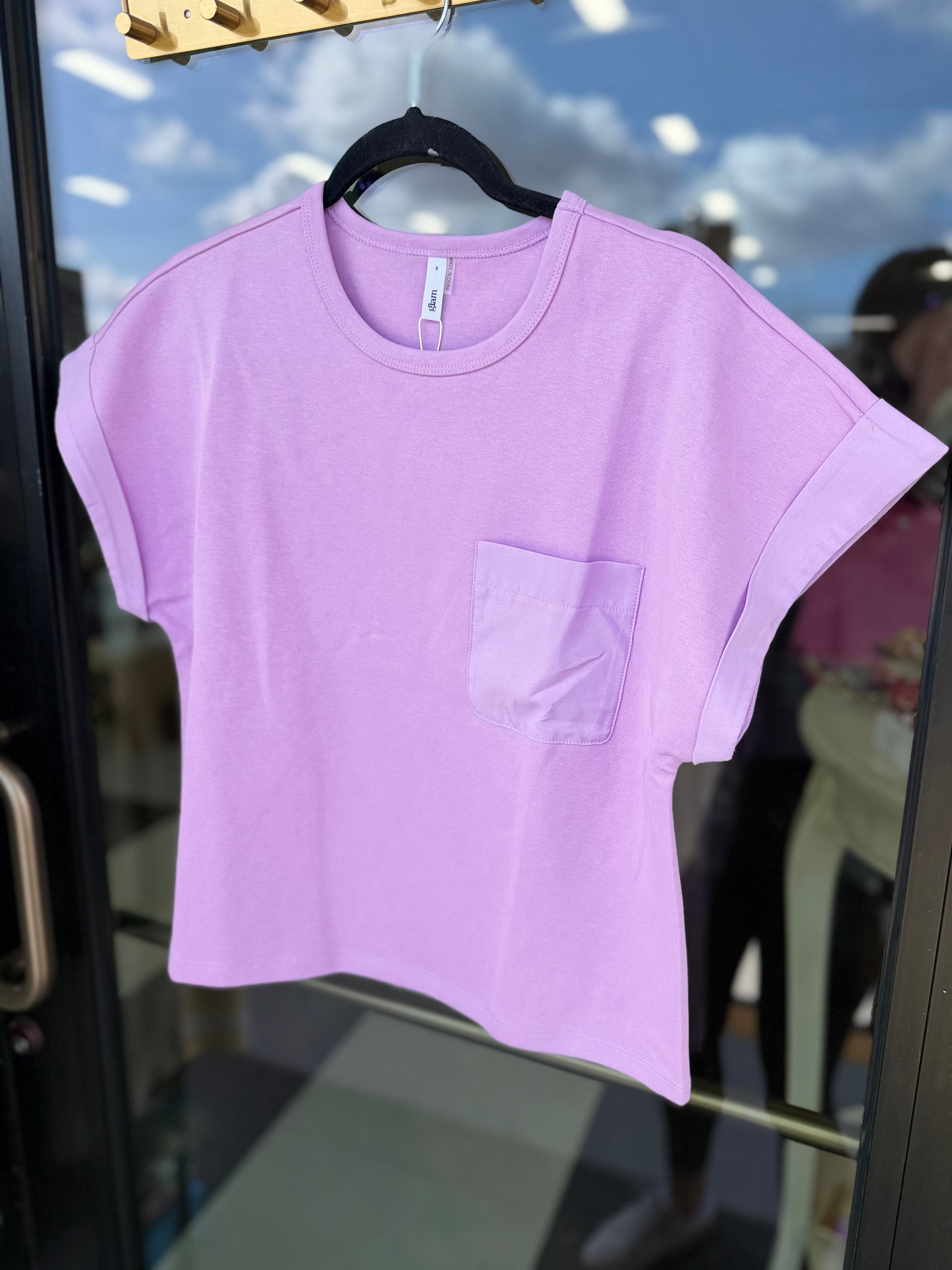 Round Neck Short Sleeve Top with Pocket