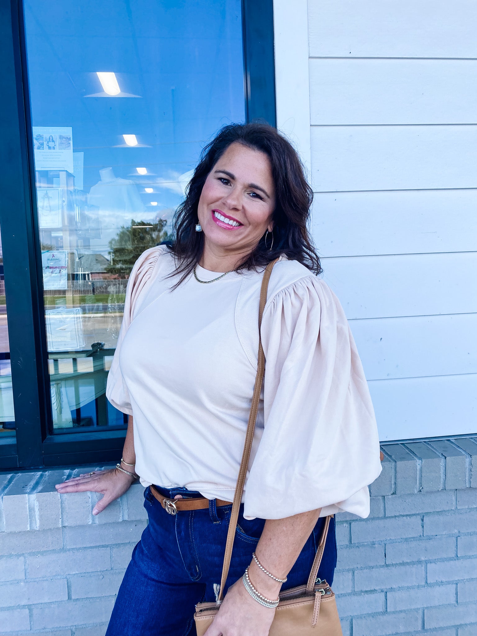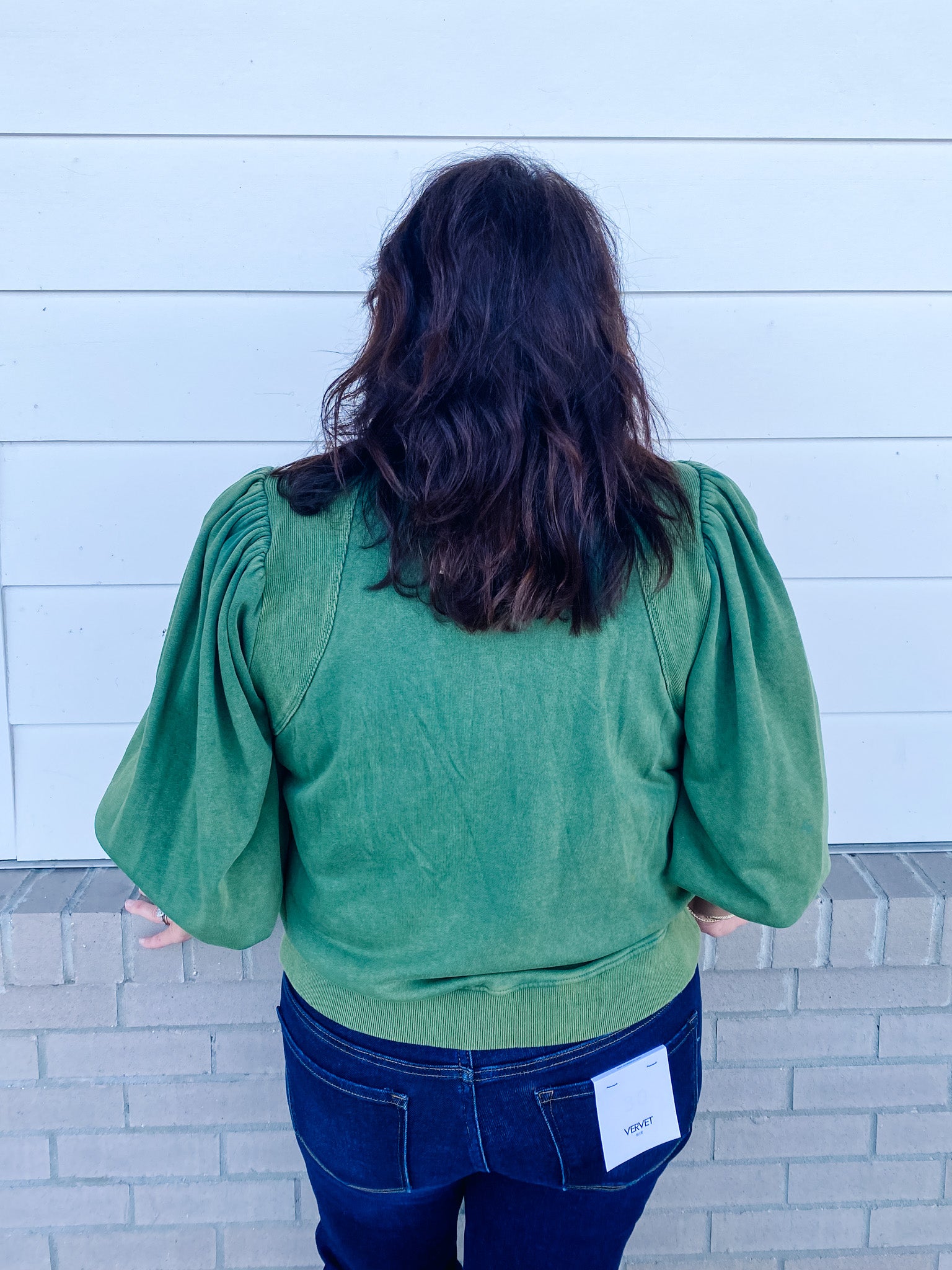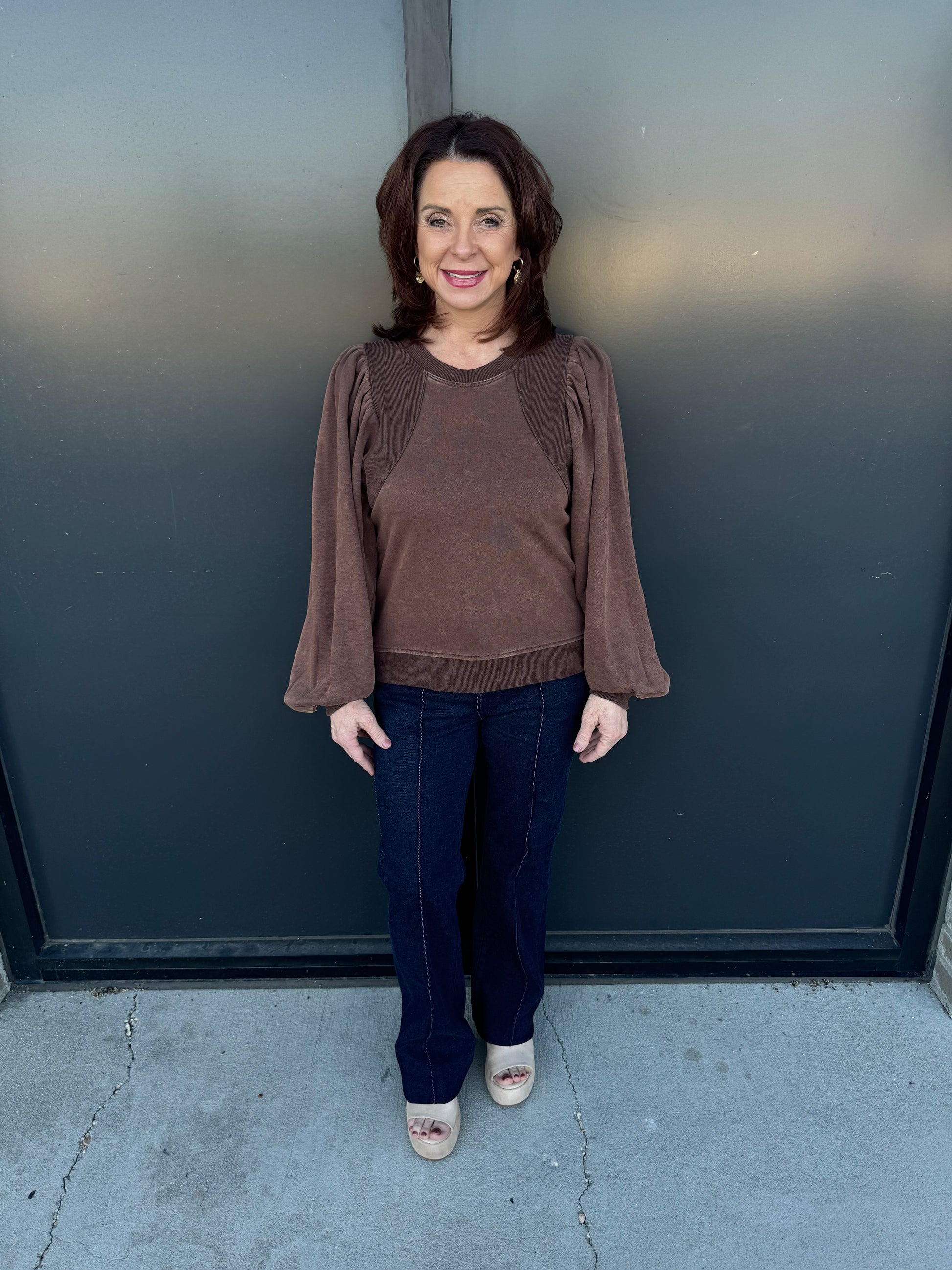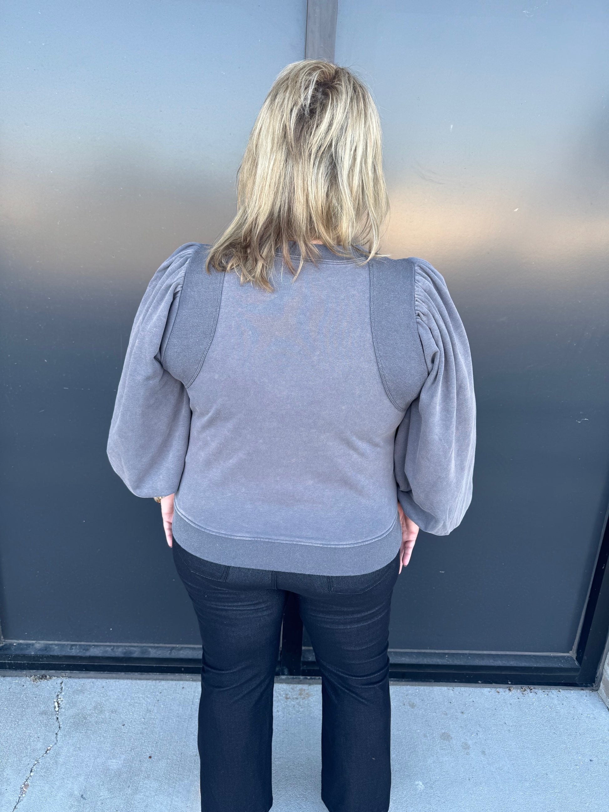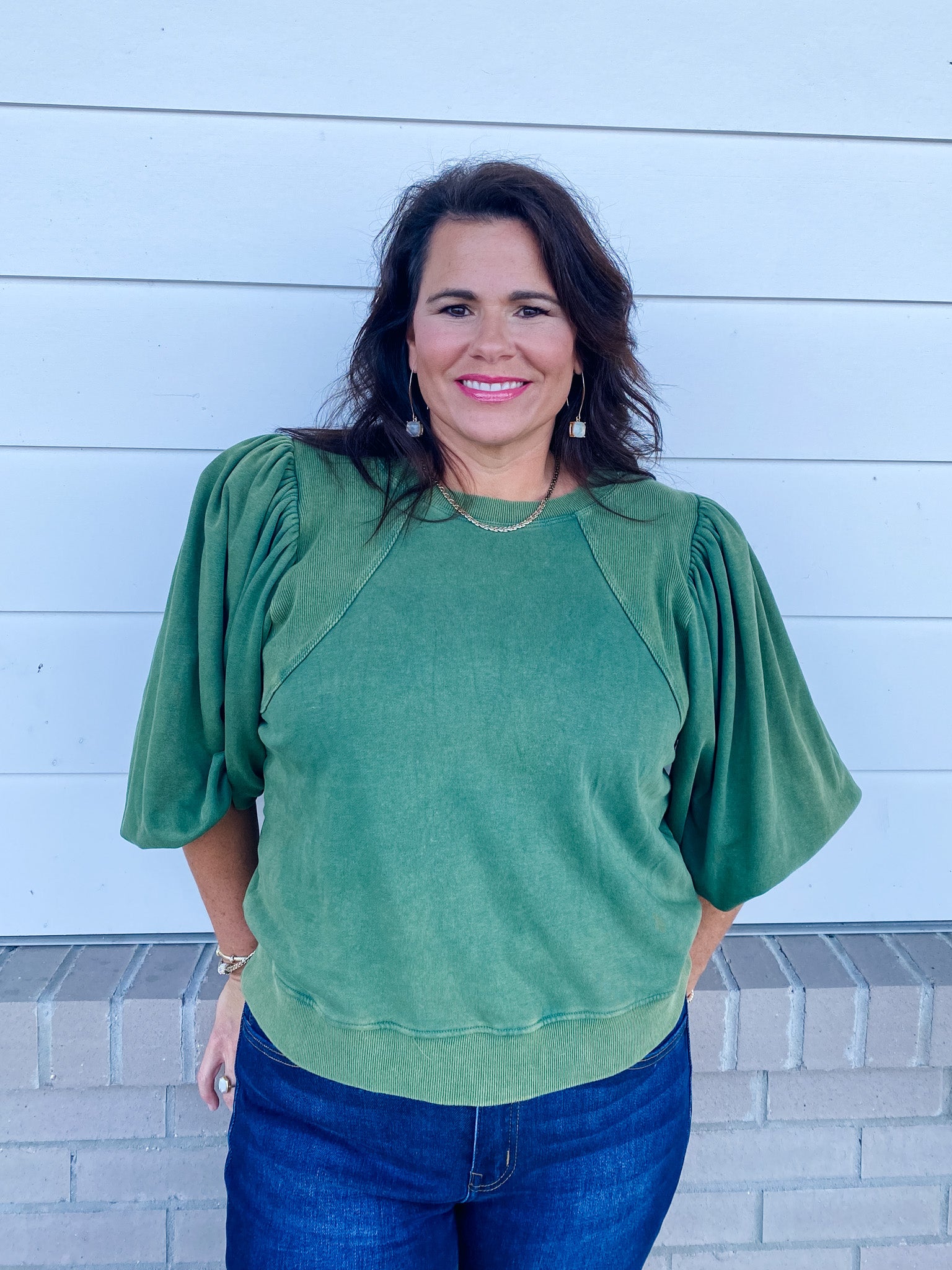 Indulge in luxury with the Jodifl Elise Top. Crafted from soft sweatshirt material, this top features elegant puff sleeves that add a touch of sophistication. The long sleeves provide both coverage and style, making it the perfect choice for a chic and comfortable look.