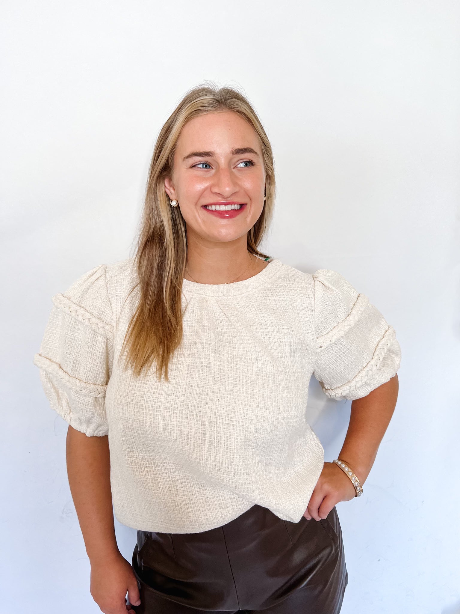 Introducing the Jodifl Sophia Top, a luxurious statement piece for any wardrobe. This textured top boasts short sleeves for a chic and sophisticated touch. Elevate your look with the understated elegance of this must-have top.