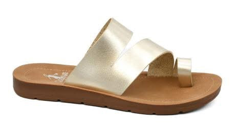 * Meet your new go-to: the Corkys Just A Fling Sandals - where effortless style meets all-day comfort! With a sleek toe-wrapped strap and cushioned footbed, these slip-ons are perfect for everything from casual brunches to summer nights out. i