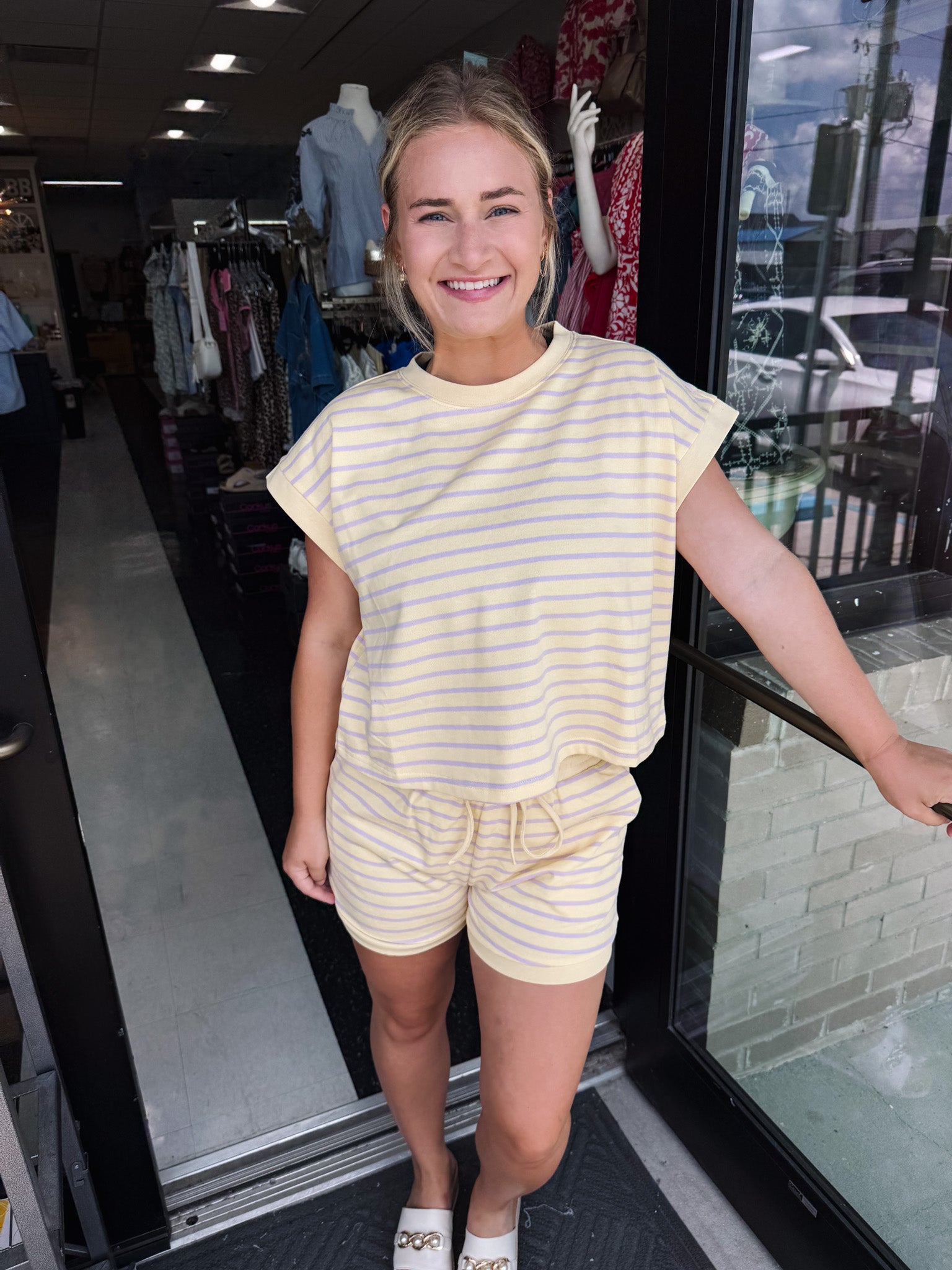 Slip into summer-ready style with our L&C Carmen Set! This adorable round neck striped top pairs perfectly with matching shorts for an effortlessly coordinated look. Mix or match for twice the fun – this playful set keeps you looking cute and feeling comfy whether you're lounging at home or out enjoying the sunshine!