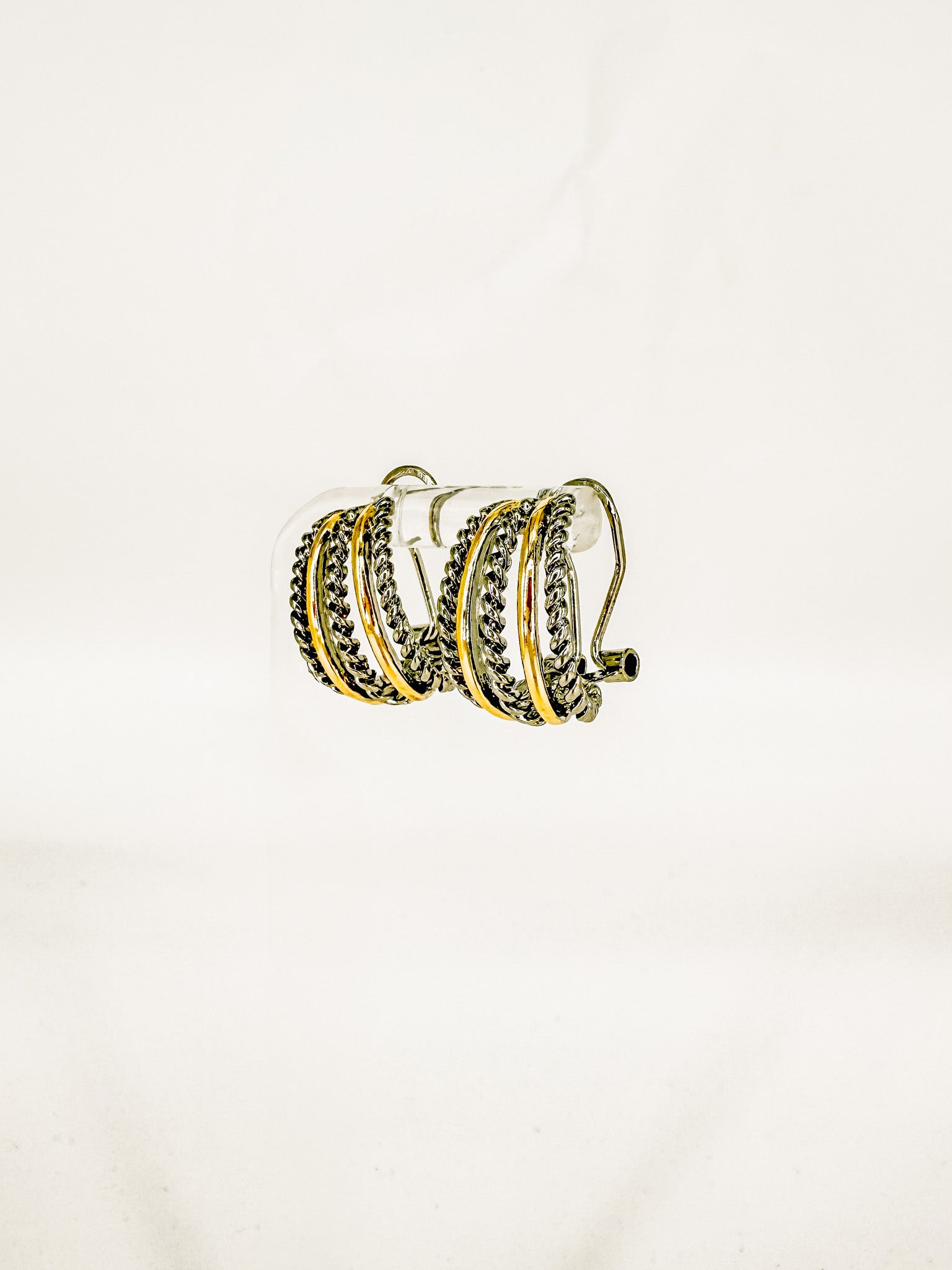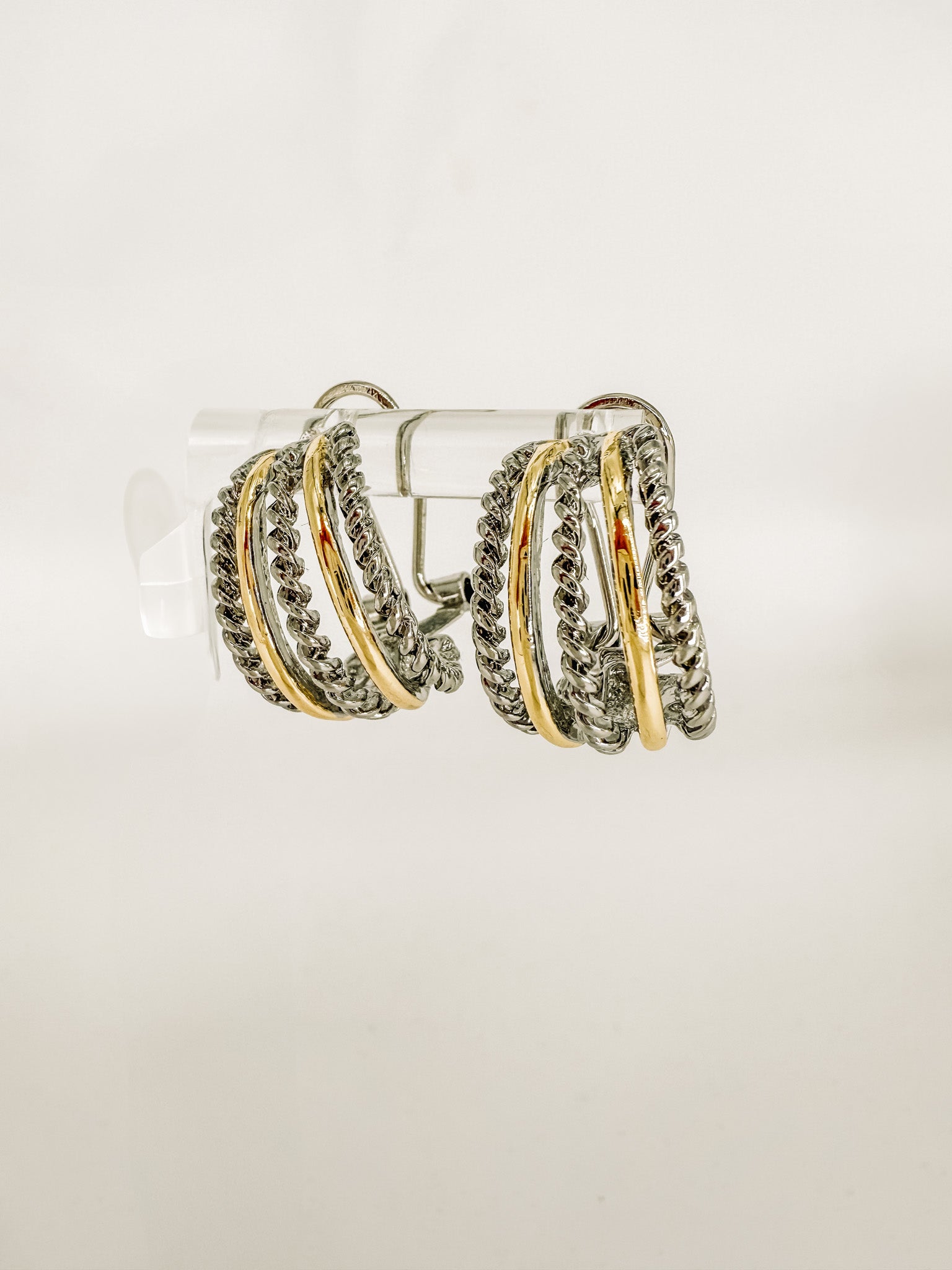 Indulge in effortless elegance with our Mixed Metal 5 Strand Hoops. Crafted with stunning one inch hoops, these intricate strands of mixed metals add a touch of luxury to any outfit. Elevate your style and exude sophistication with these gorgeous hoops.
