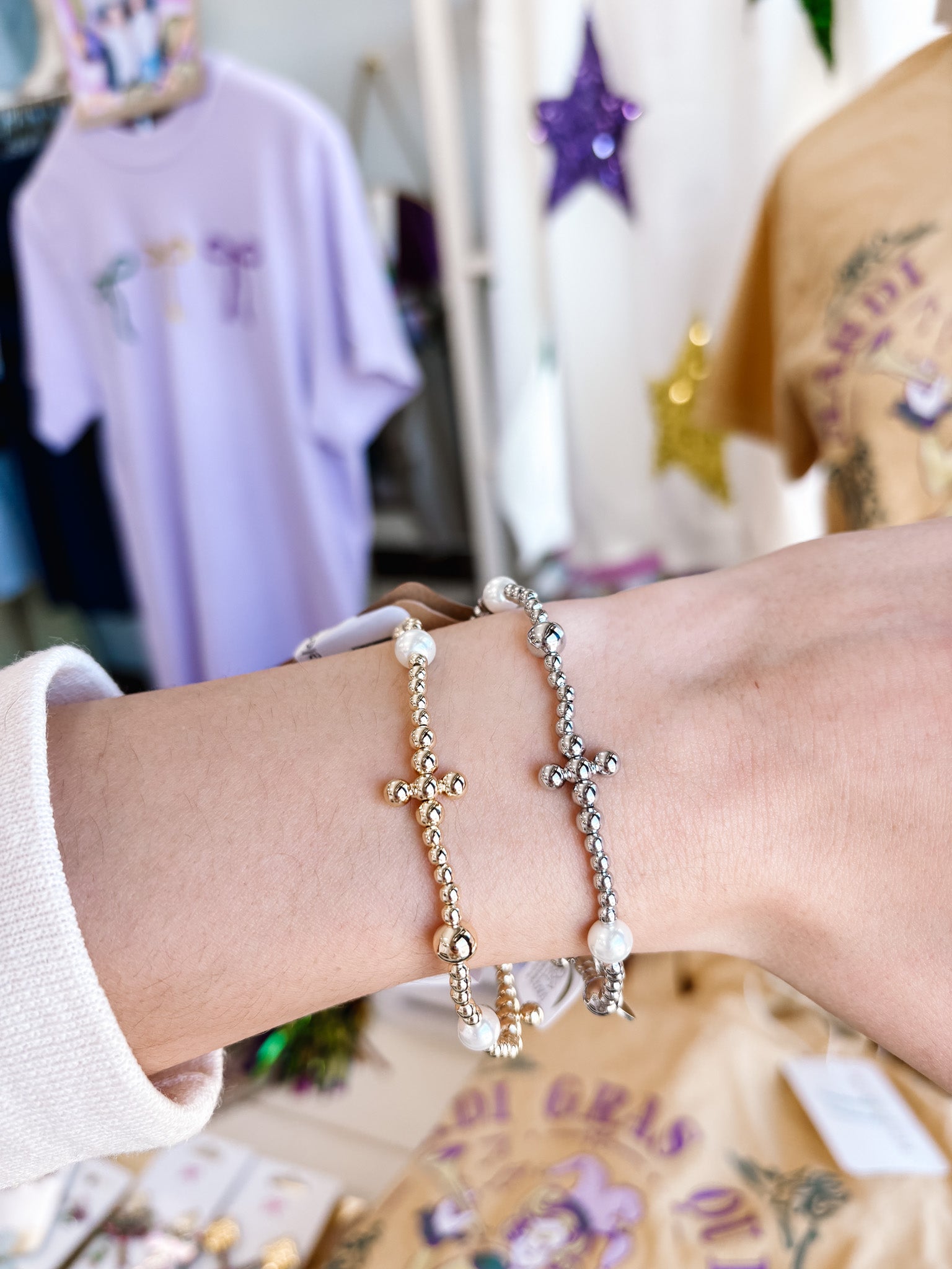 Pearl Cross Bracelet