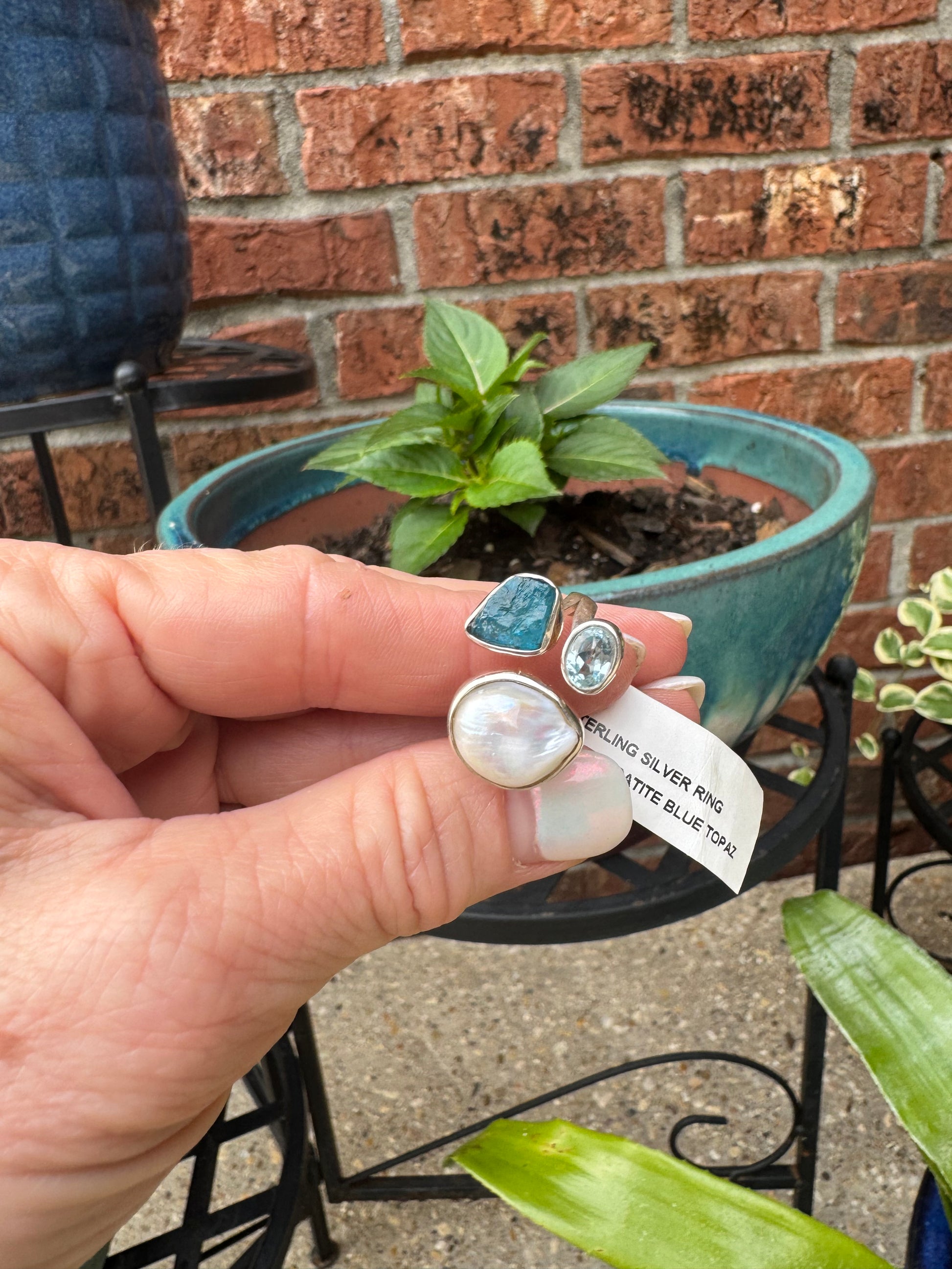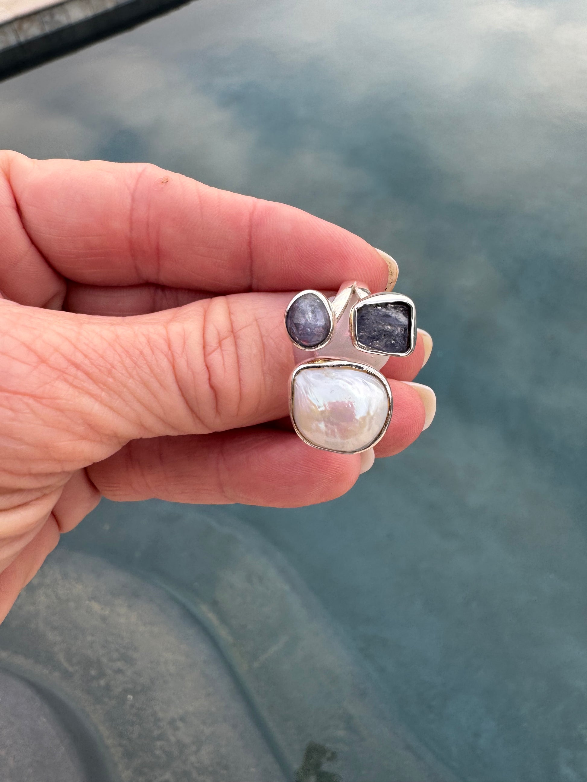 Enhance your style with our stunning adjustable rings made from genuine sterling silver. Each ring is adorned with a beautiful fresh water pearl and semi precious stone, adding a touch of elegance to any outfit. Experience the luxury and versatility of our pearl/stone/silver rings.