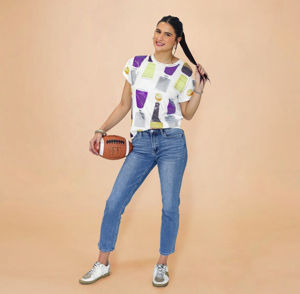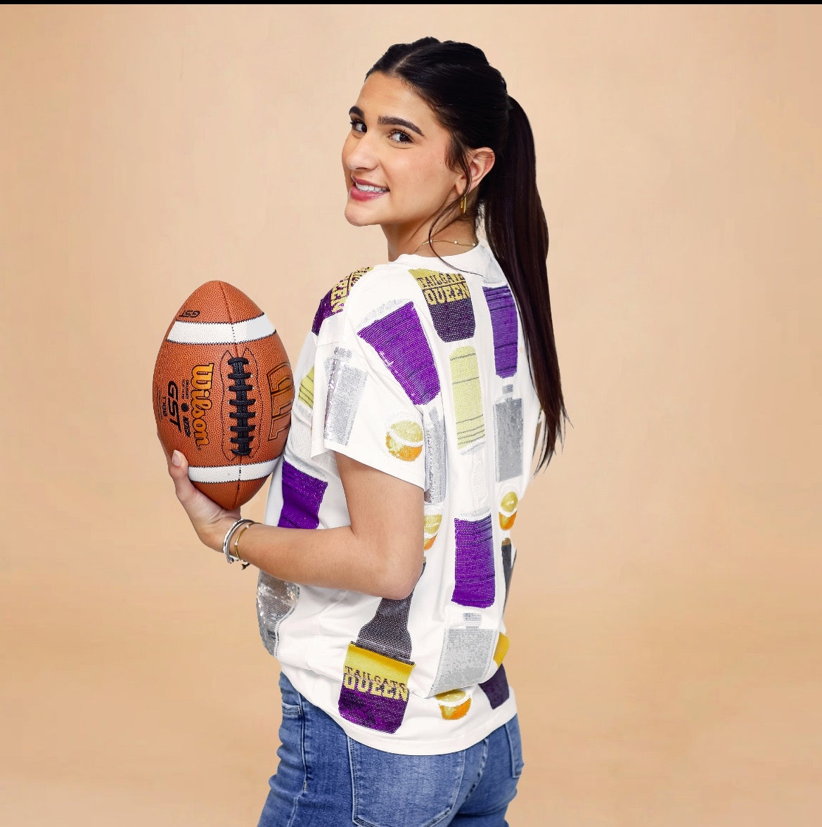This QOS All over Icon drink tee is your ticket to the party, no matter if it’s game day, Mardi Gras, or just any ol' day! With bold purple and yellow making the statement, you’re sure to be the queen of sparkles wherever you go! So, cheers to that!
